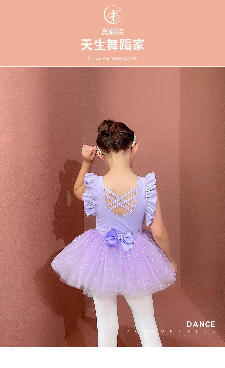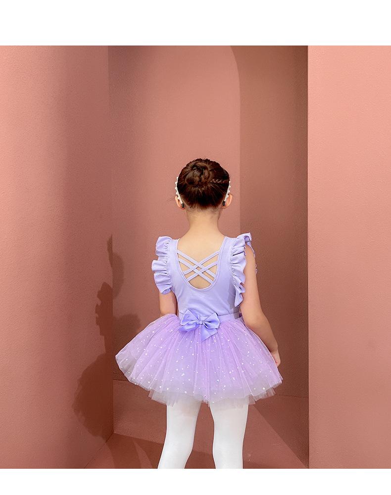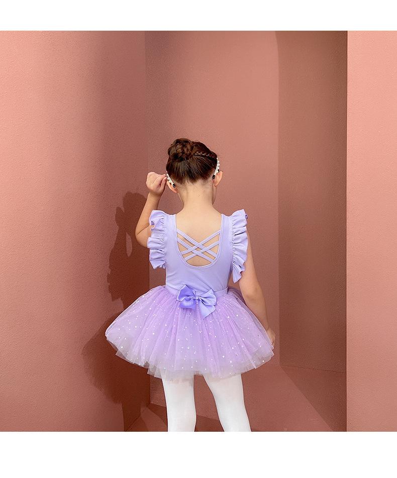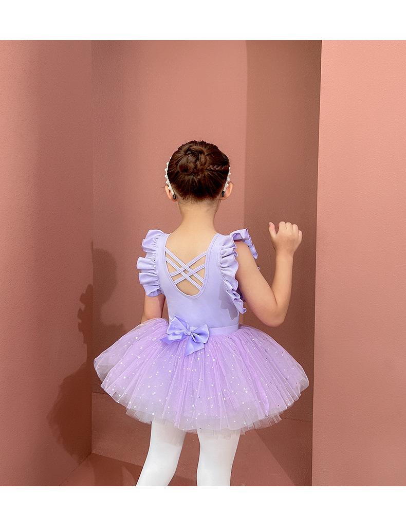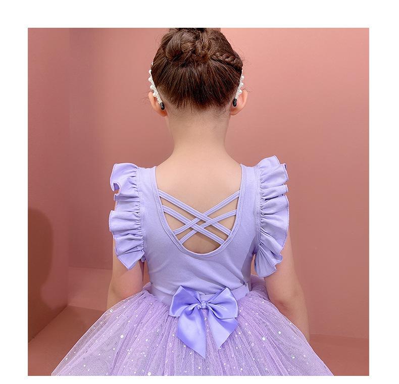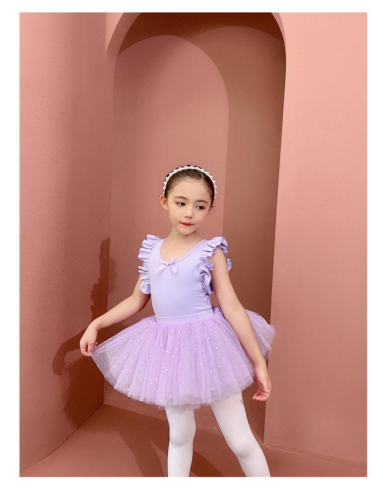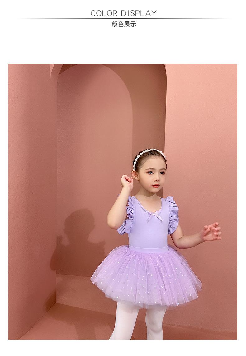 Ropa de Danza para Niñas Verano Algodón Puro Estilo Fino Ropa de Práctica para Niñas Falda de Gasa con Lentejuelas Moradas Set de Vestido de Ballet para Niñas Pequeñas