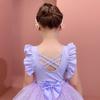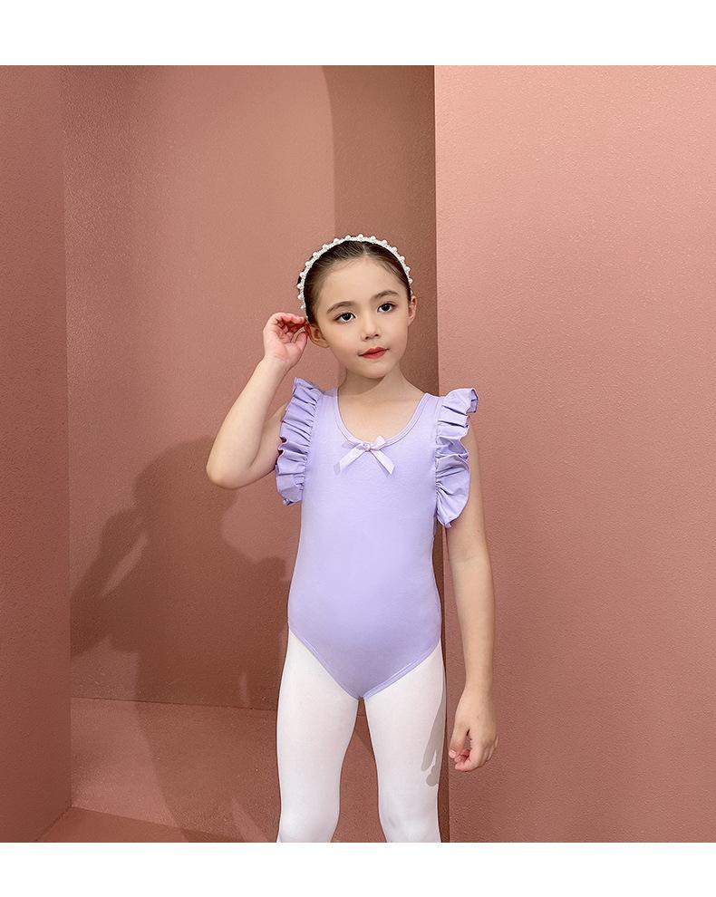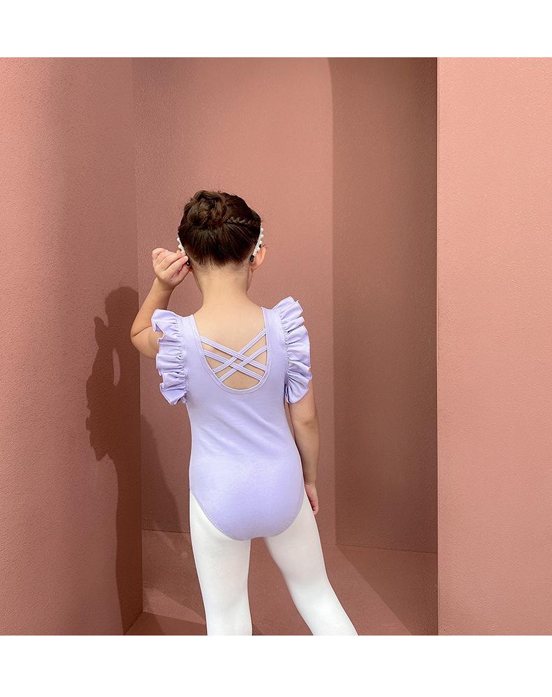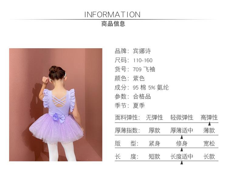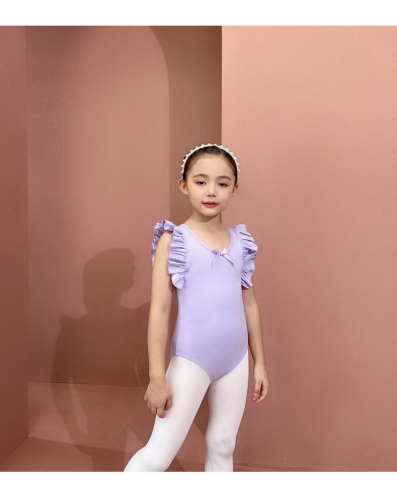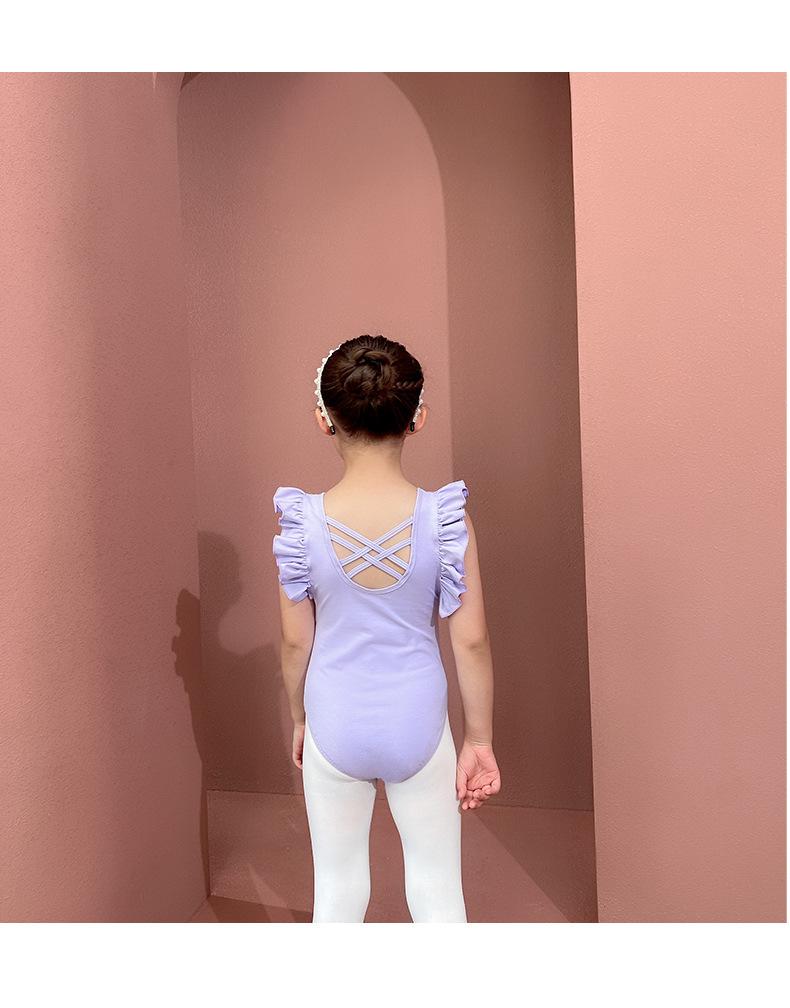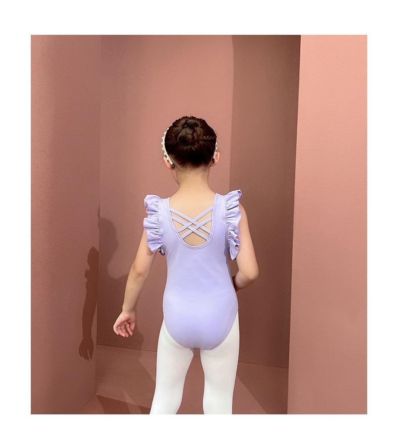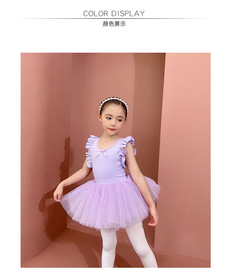 Ropa de Danza para Niñas Verano Algodón Puro Estilo Fino Ropa de Práctica para Niñas Falda de Gasa con Lentejuelas Moradas Set de Vestido de Ballet para Niñas Pequeñas