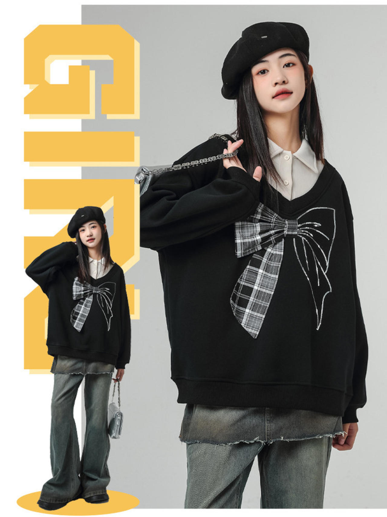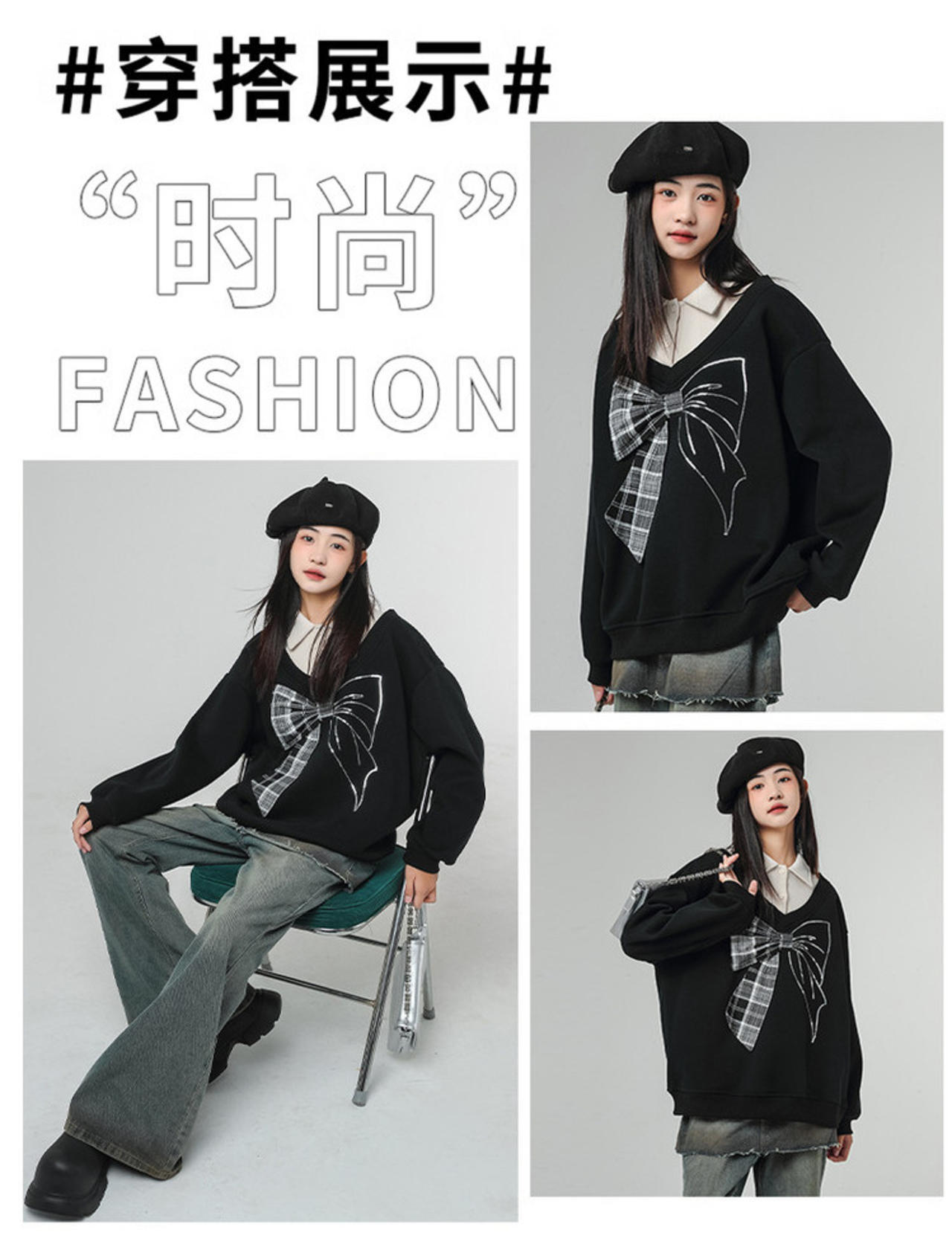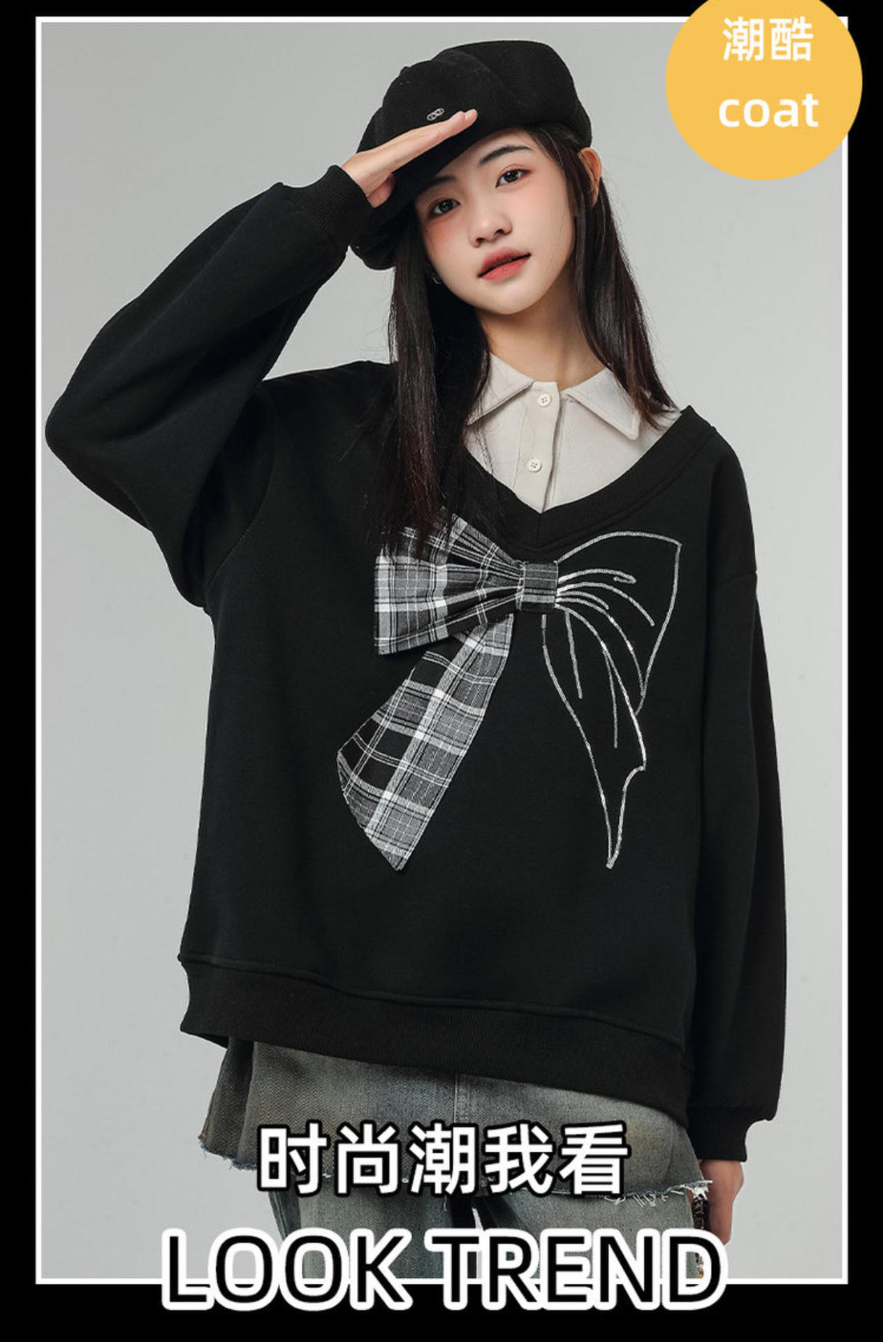 Sudadera Polo de Dos Piezas Falsas para Niñas, Nueva y Caliente, con Capucha, Manga Larga para Invierno, para Salir, Gruesa, Forrada de Polar para Finales de Otoño
