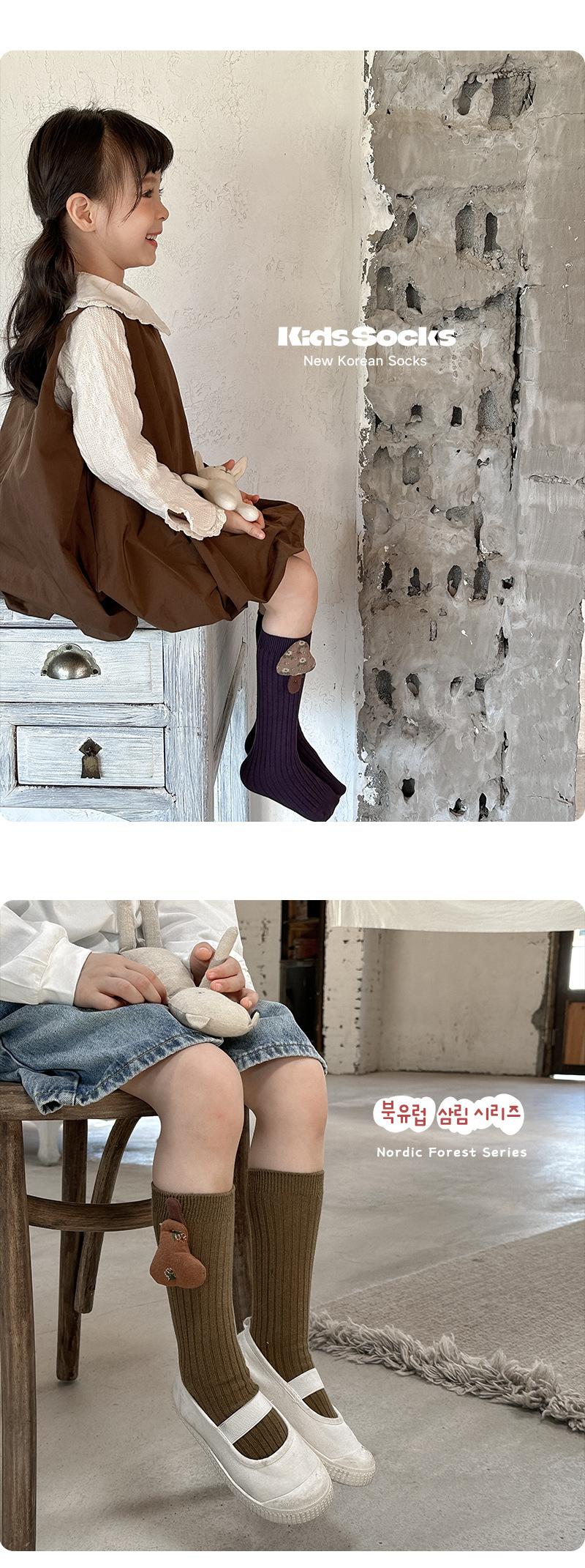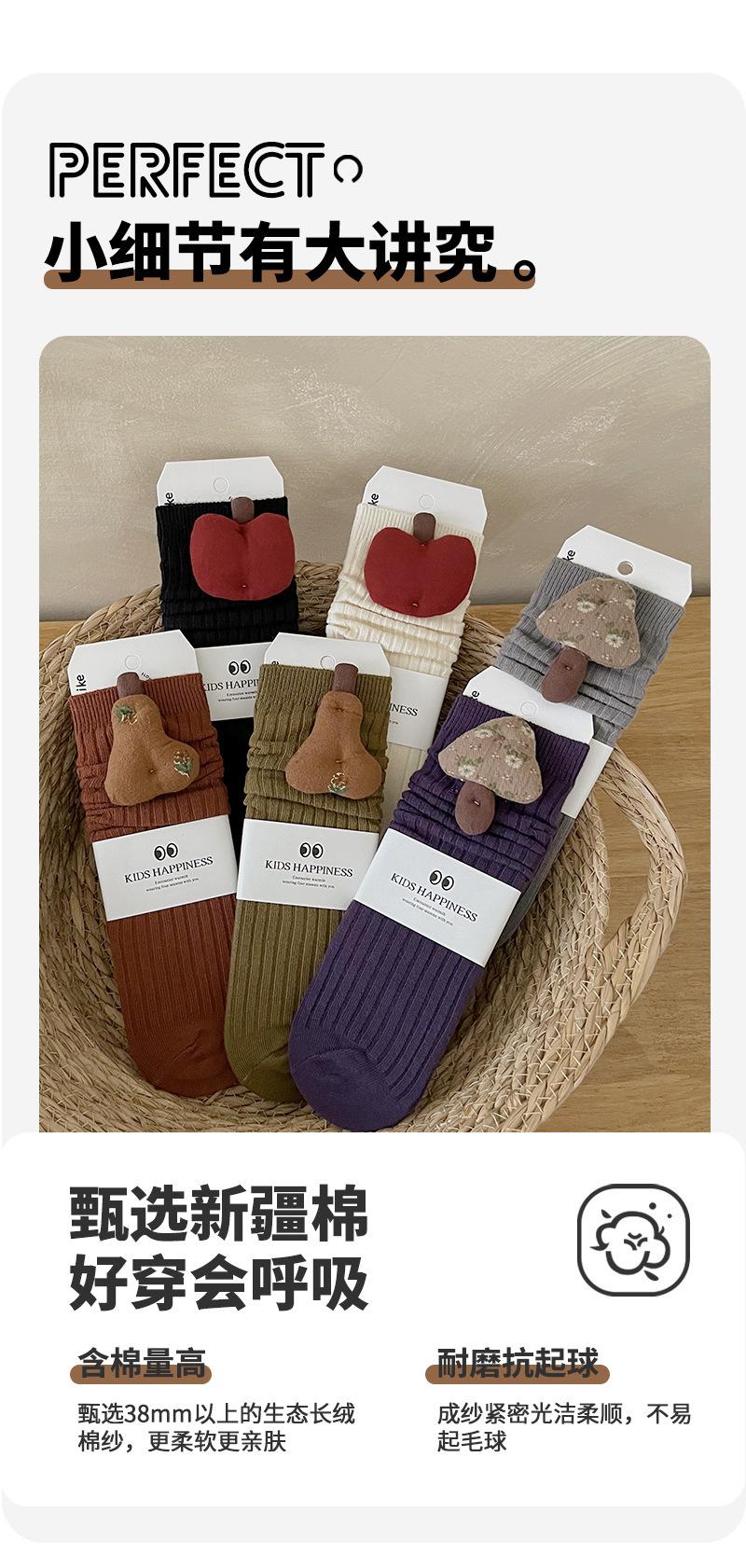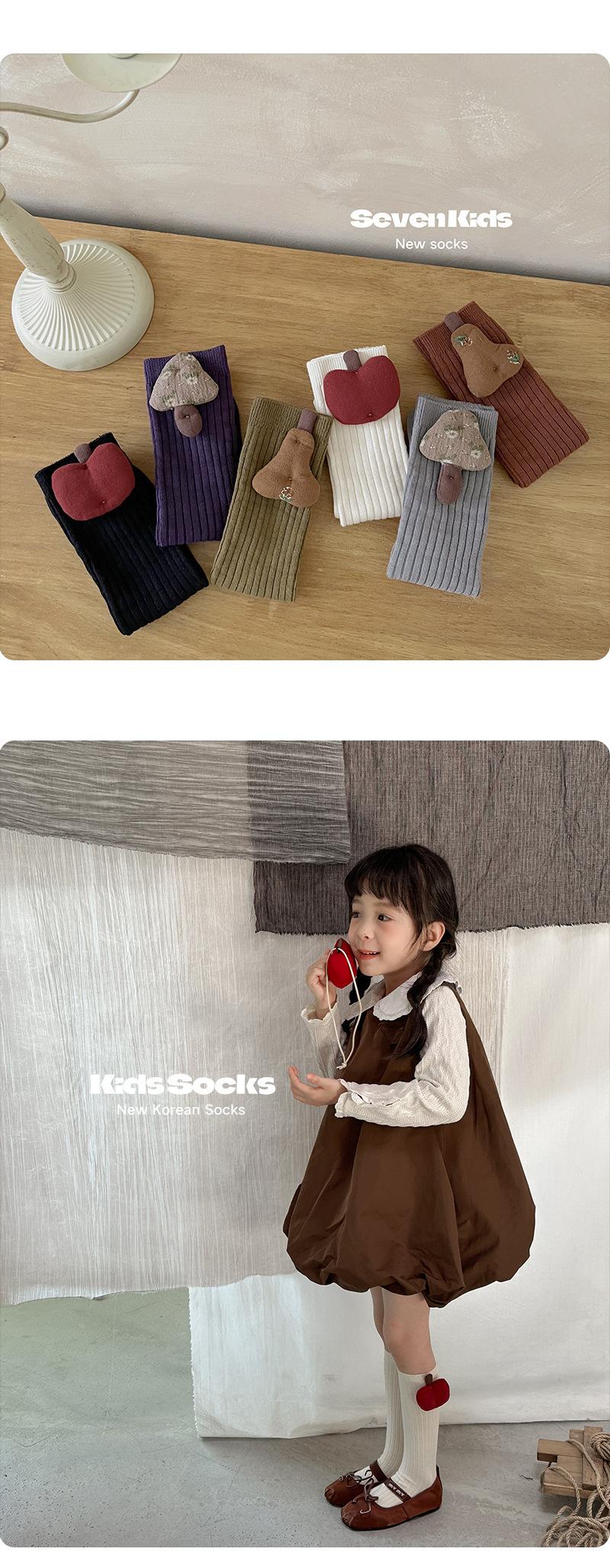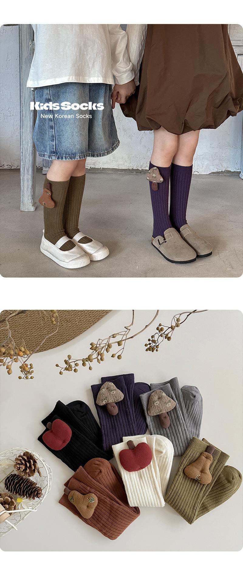 Calcetines para Niños 2025 Otoño/Invierno Nuevo Accesorios de Frutas Color Sólido Doble Aguja Niños Niñas Calcetines de Rizo Calcetines Media Pantorrilla Venta al por Mayor