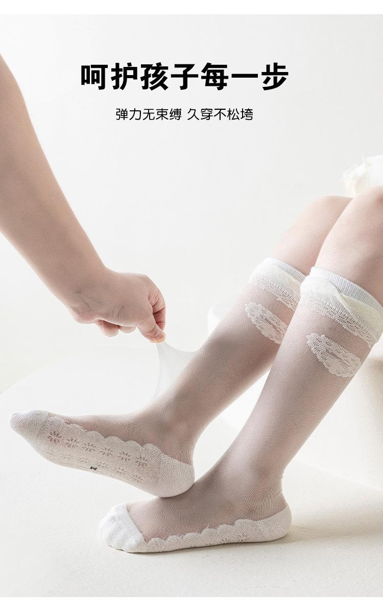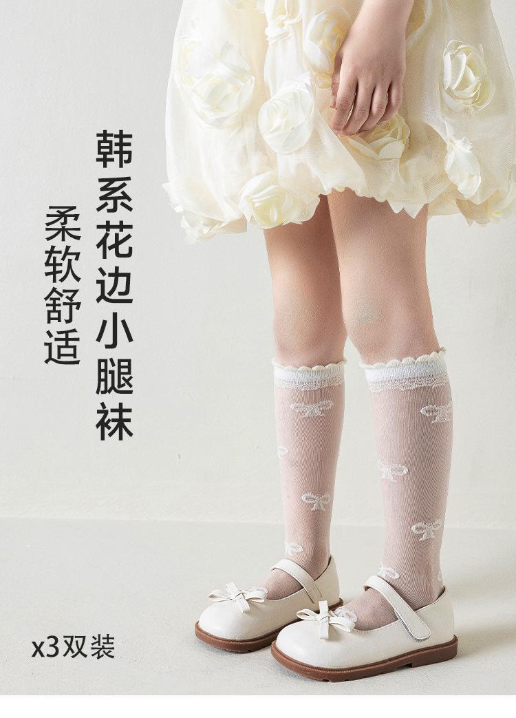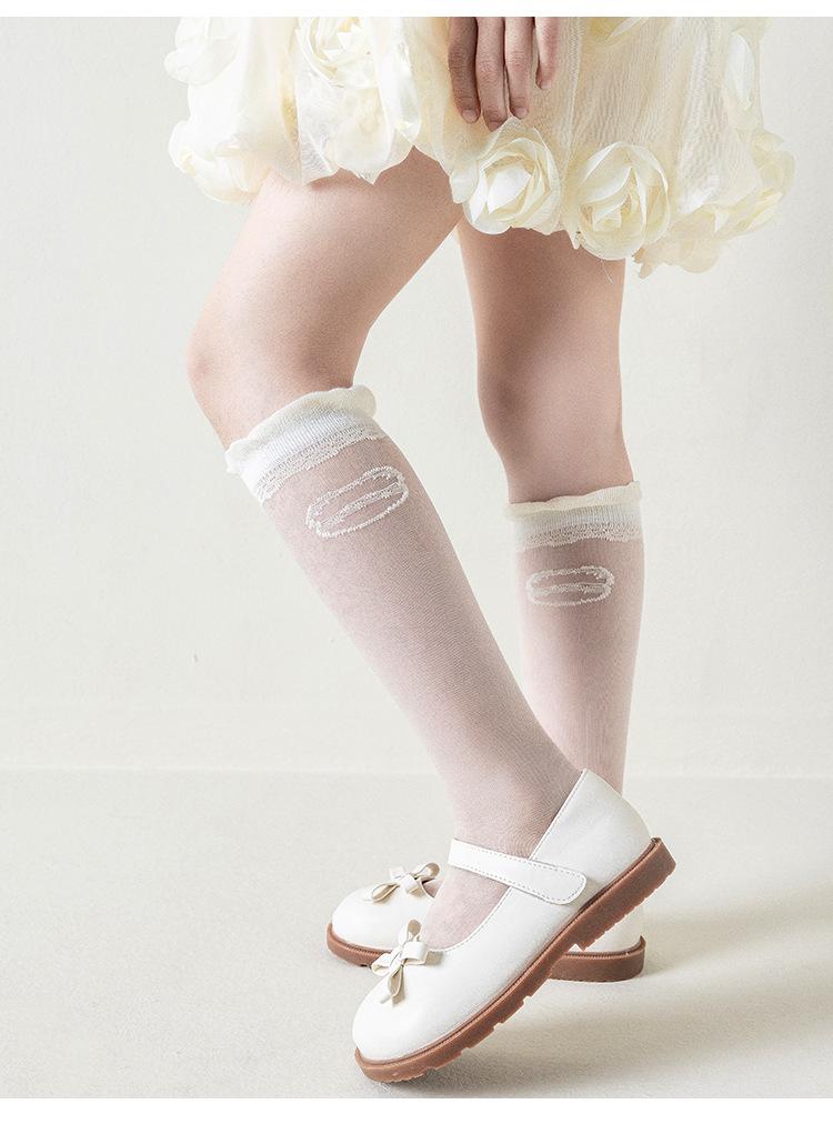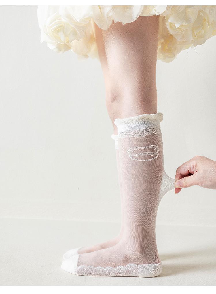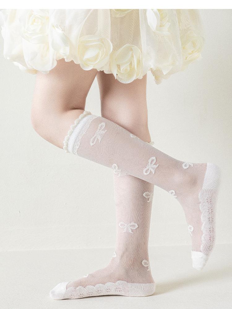 Medias Finas de Verano para Niñas Calcetines para Niños Malla Transpirable Lazo Calcetines Blancos Estilo Princesa hasta la Pantorrilla para Niñas