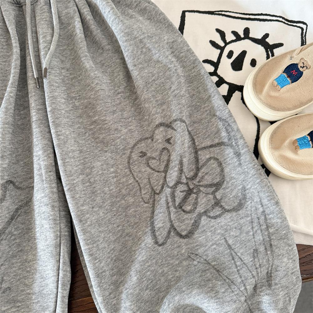 Otoño 2025 Nuevo Estilo Coreano Pantalones Casuales con Estampado de Cachorro Lindo para Niños y Niñas Pantalones Deportivos Casuales Holgados Tendencia