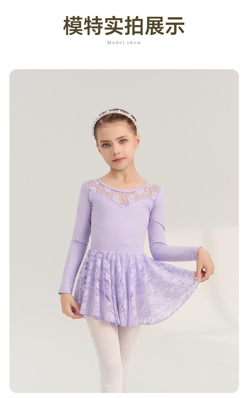 Disfraz de Danza Infantil Otoño Ropa de Práctica para Niñas Morado Examen Danza China 2025 Nuevo Vestido de Ballet de Encaje