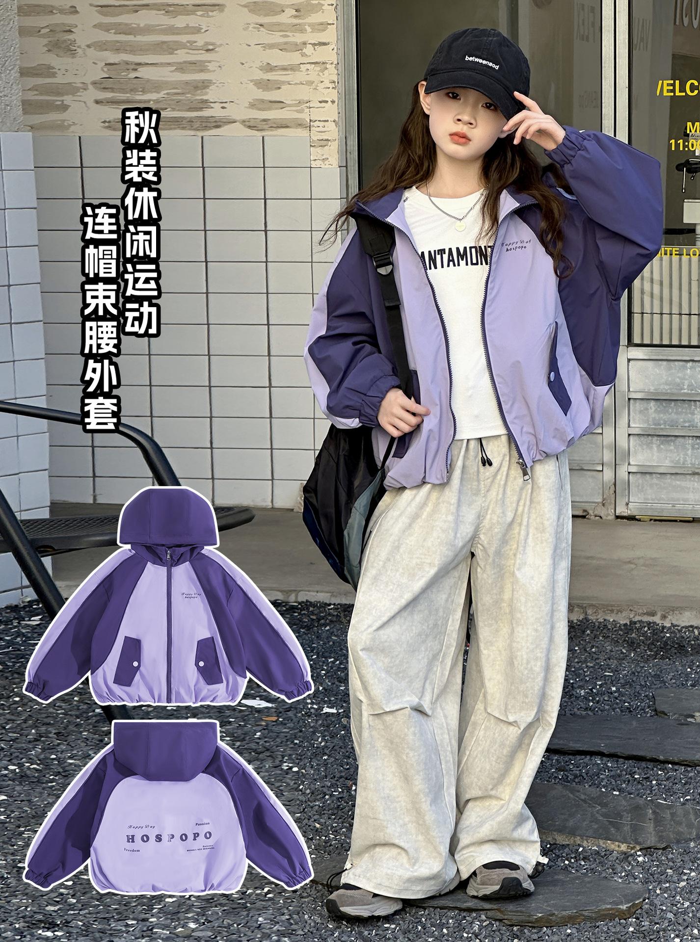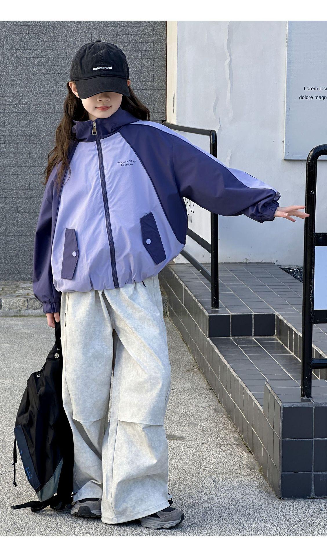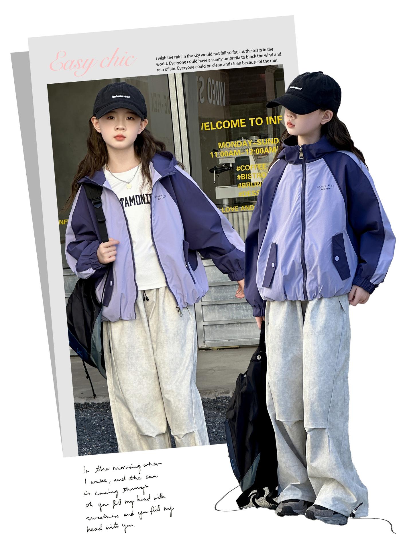 Ropa Exterior de Primavera y Otoño para Niñas 2025 Nuevo Ropa de Otoño para Niños Medianos y Grandes Cortavientos de Estilo Urbano Moderno Top con Capucha para Otoño