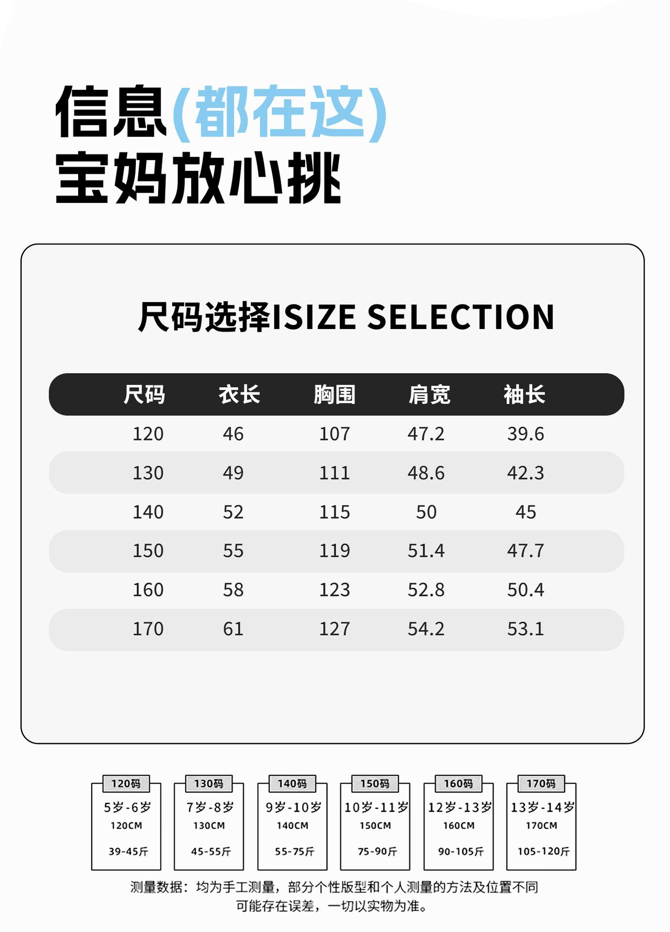 120cm, 130cm, 140cm, 150cm, 160cm, 170cm