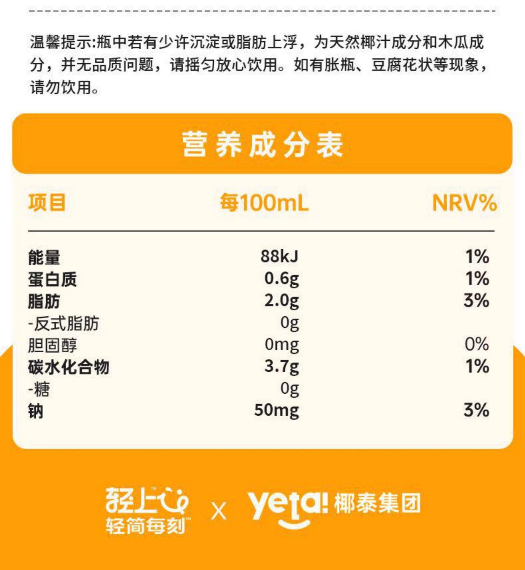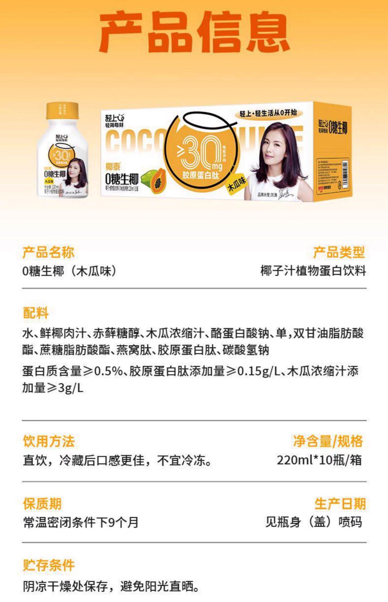 Ligero en Papaya Bebida de Coco Crudo 0 Azúcar Coco Crudo Jugo de Coco Recién Exprimido Agua de Coco Bebida de Proteína Vegetal Caja Entera Venta al por Mayor