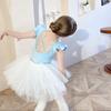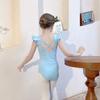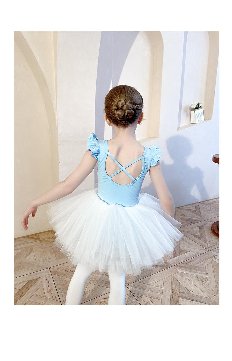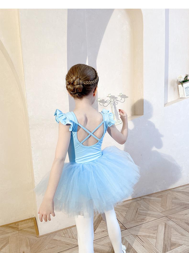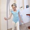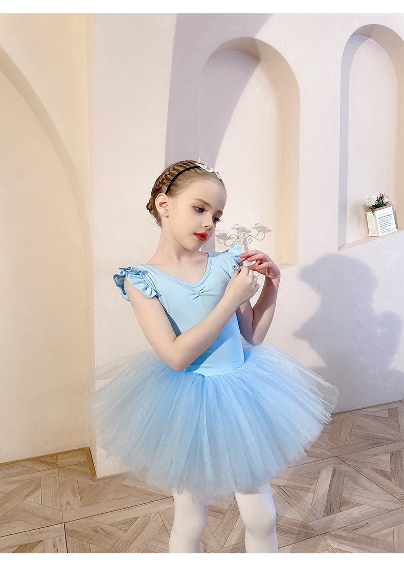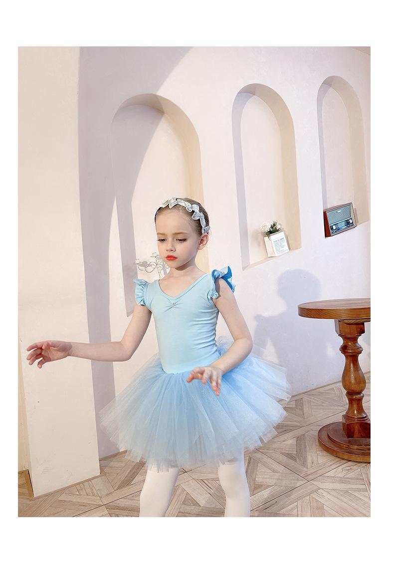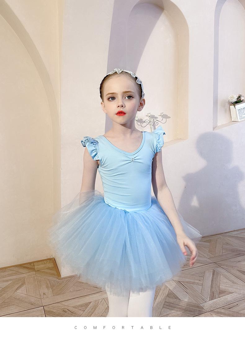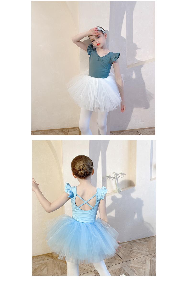 Traje de Baile para Niñas Ropa de Práctica Vestido de Ballet Azul para Niñas Pequeñas Ropa de Práctica de Danza China Conjunto de Dos Piezas Manga Corta
