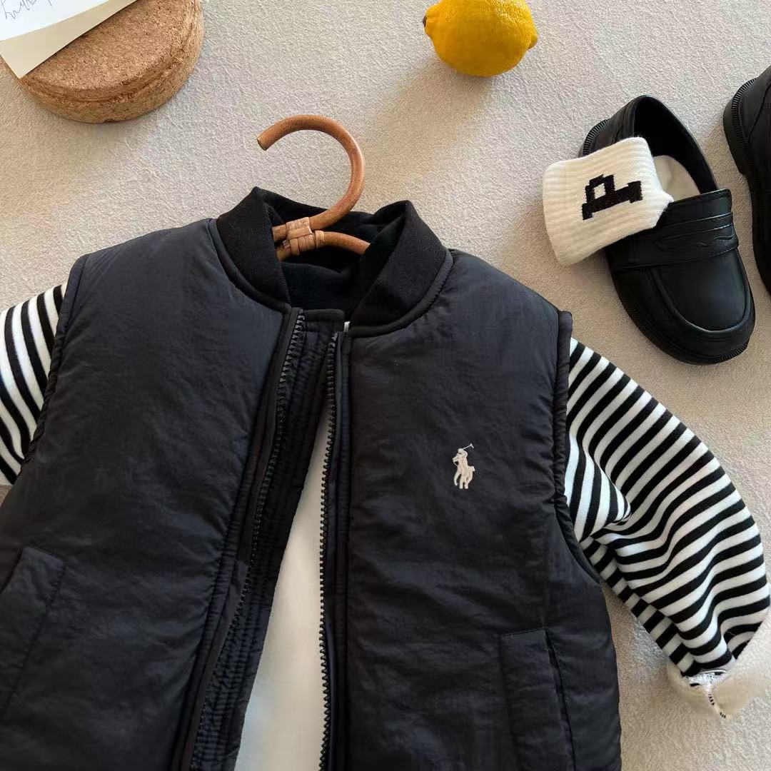 Chaleco para Niños 2025 Mimeye Invierno Nuevo Producto Niños y Niñas Simple Bordado Algodón Chaleco Bebé Estilo Coreano Top sin Mangas