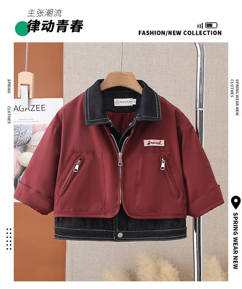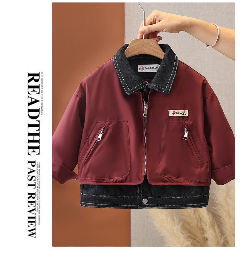 Ropa de abrigo para niños 2025 Nuevo estilo de otoño Ropa para niños Elegante parcheado de dos piezas falsas Niño pequeño Otoño