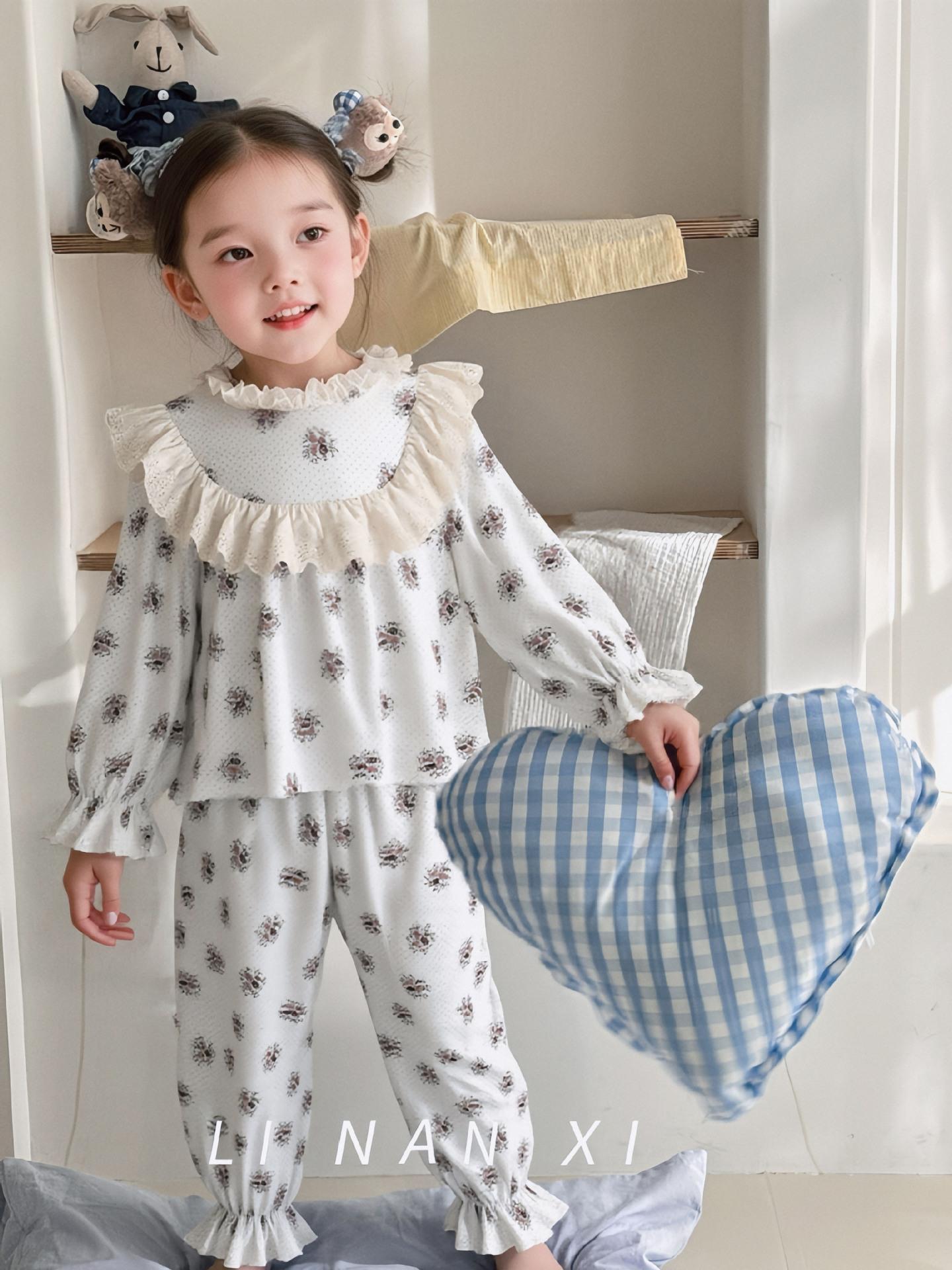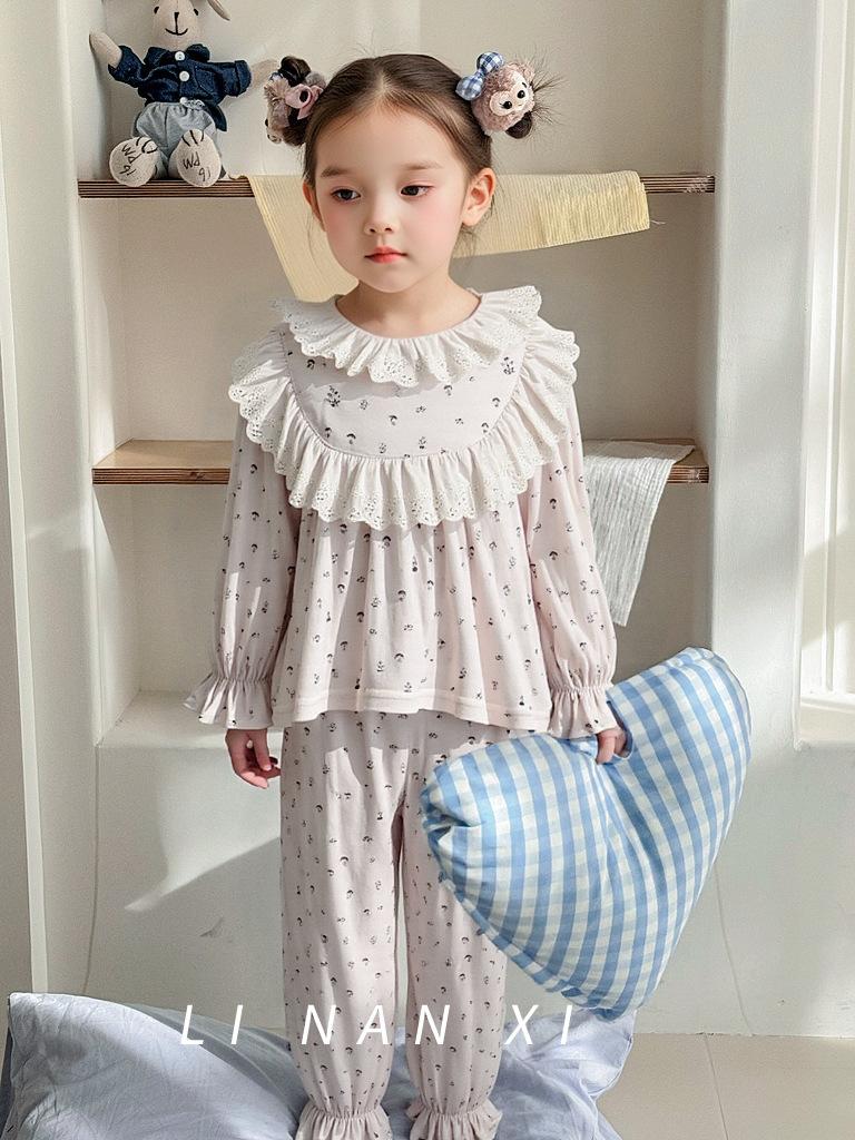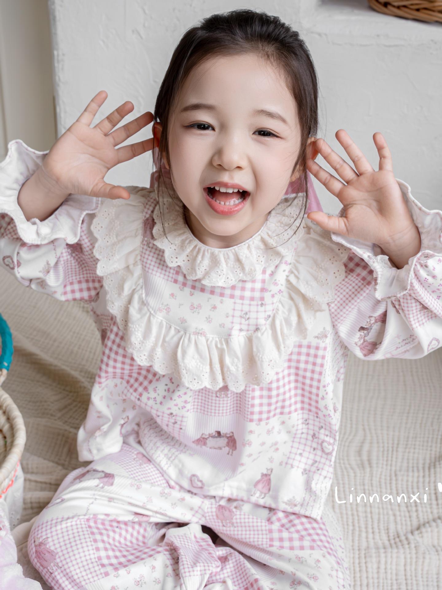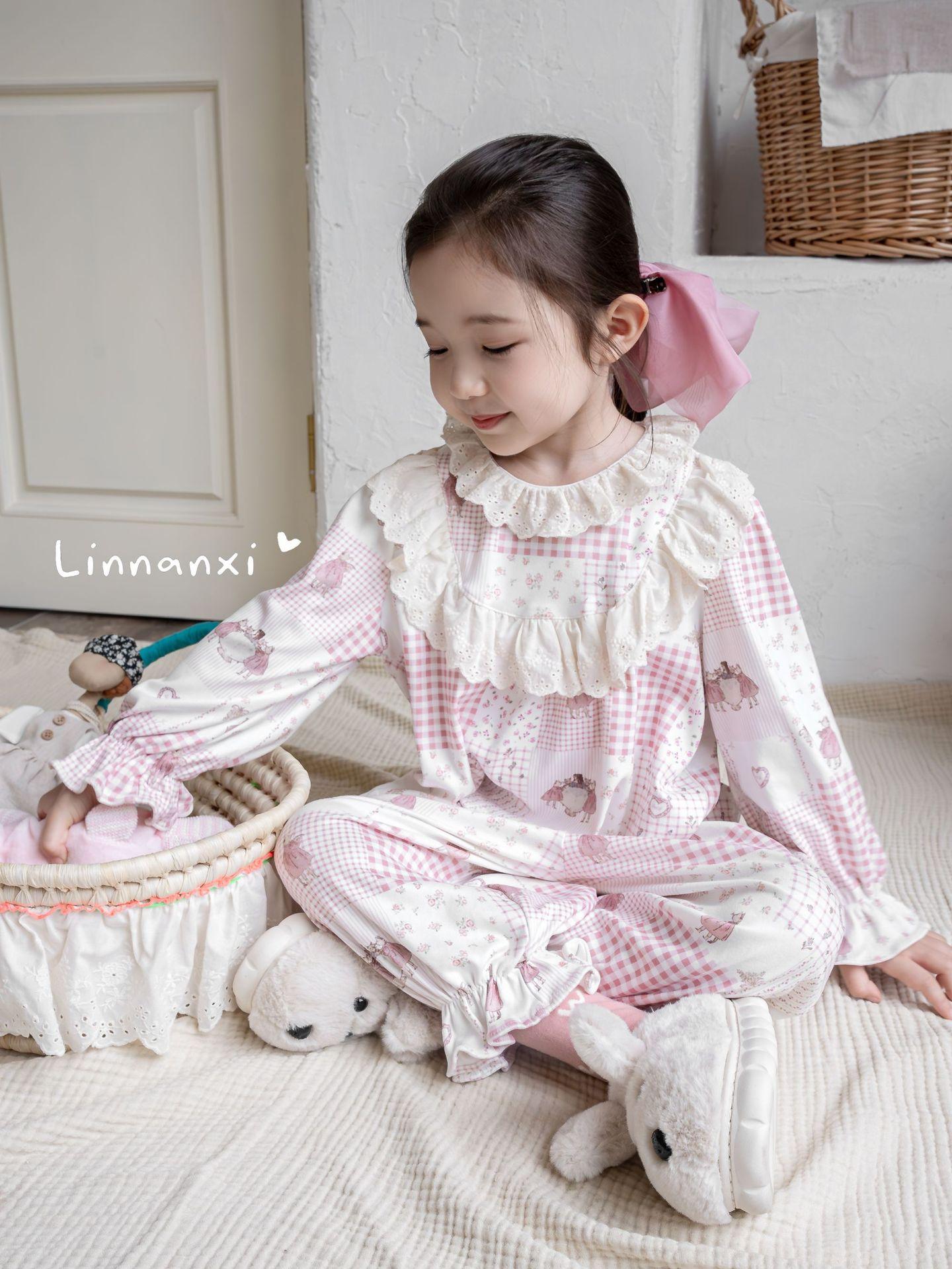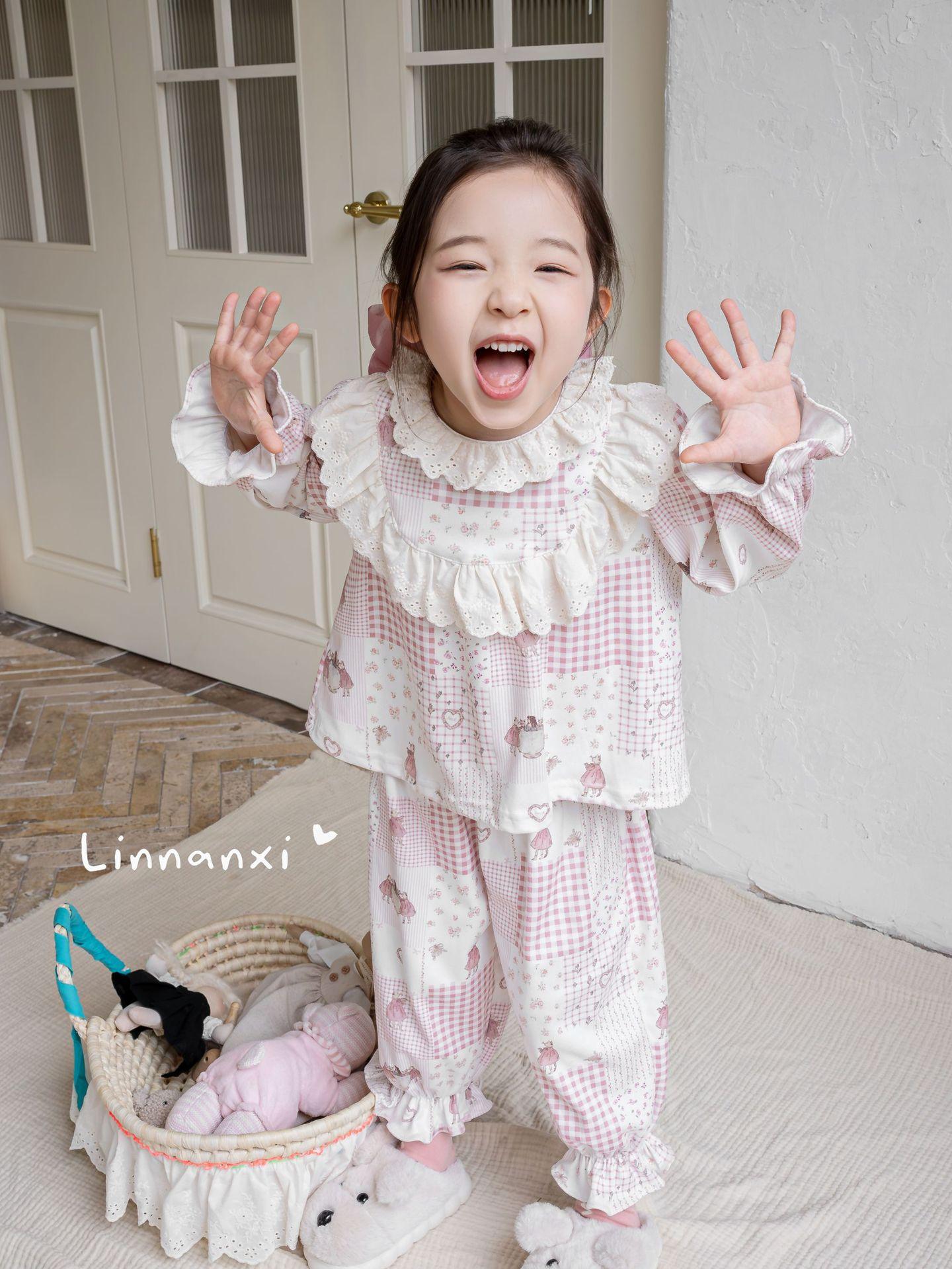88076 Conjunto de Pijama de Otoño para Niñas 2025 Nuevo Conjunto de Ropa de Otoño para Bebé Niña Cómodo Pijama para Niños Pequeños y Medianos Ropa para el Hogar