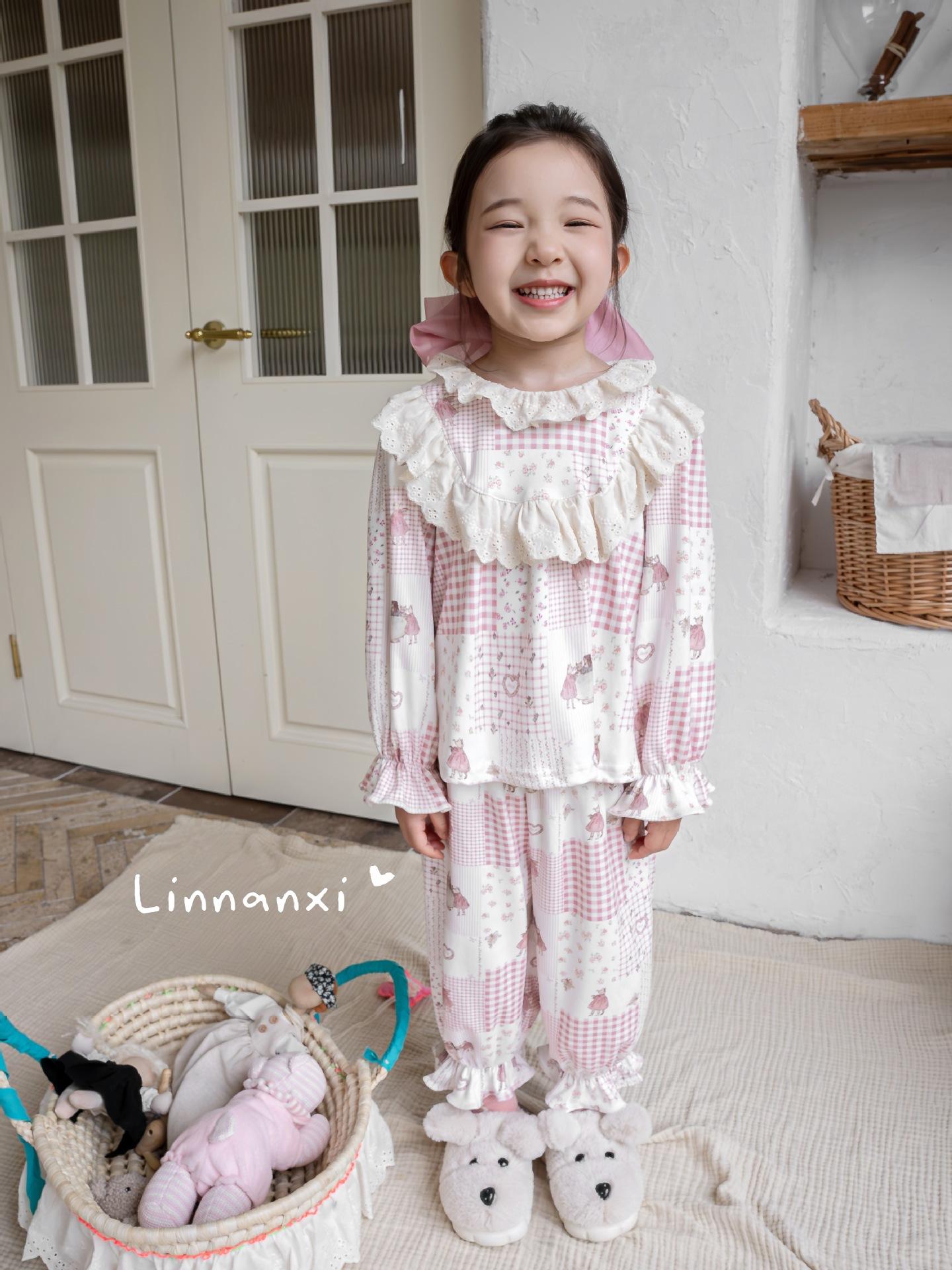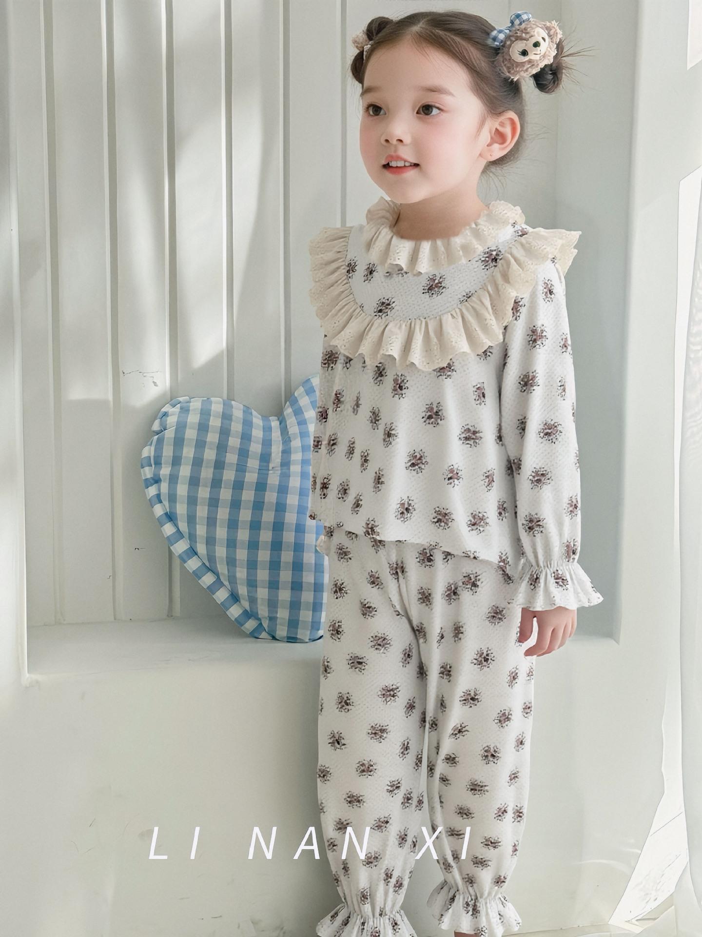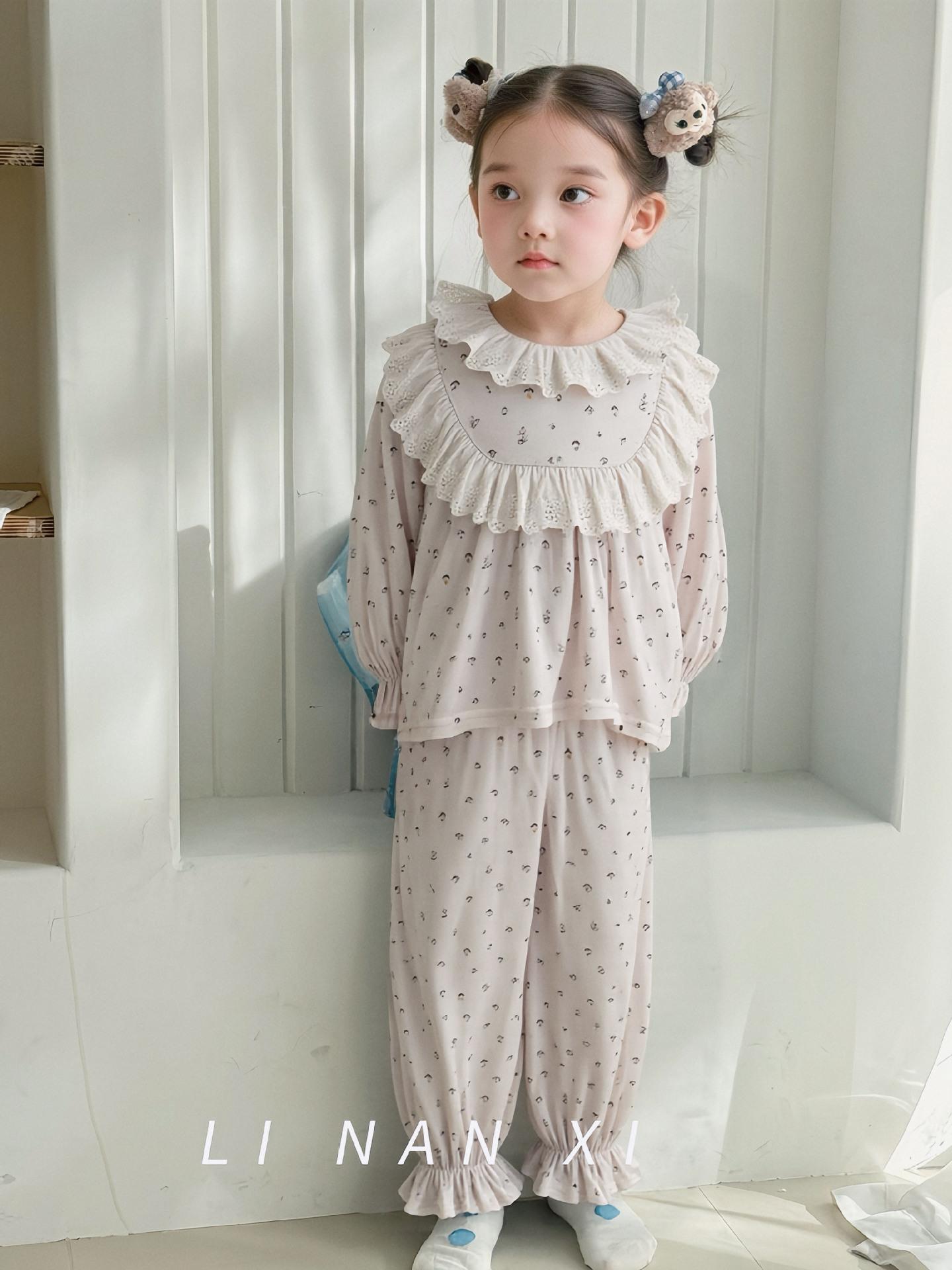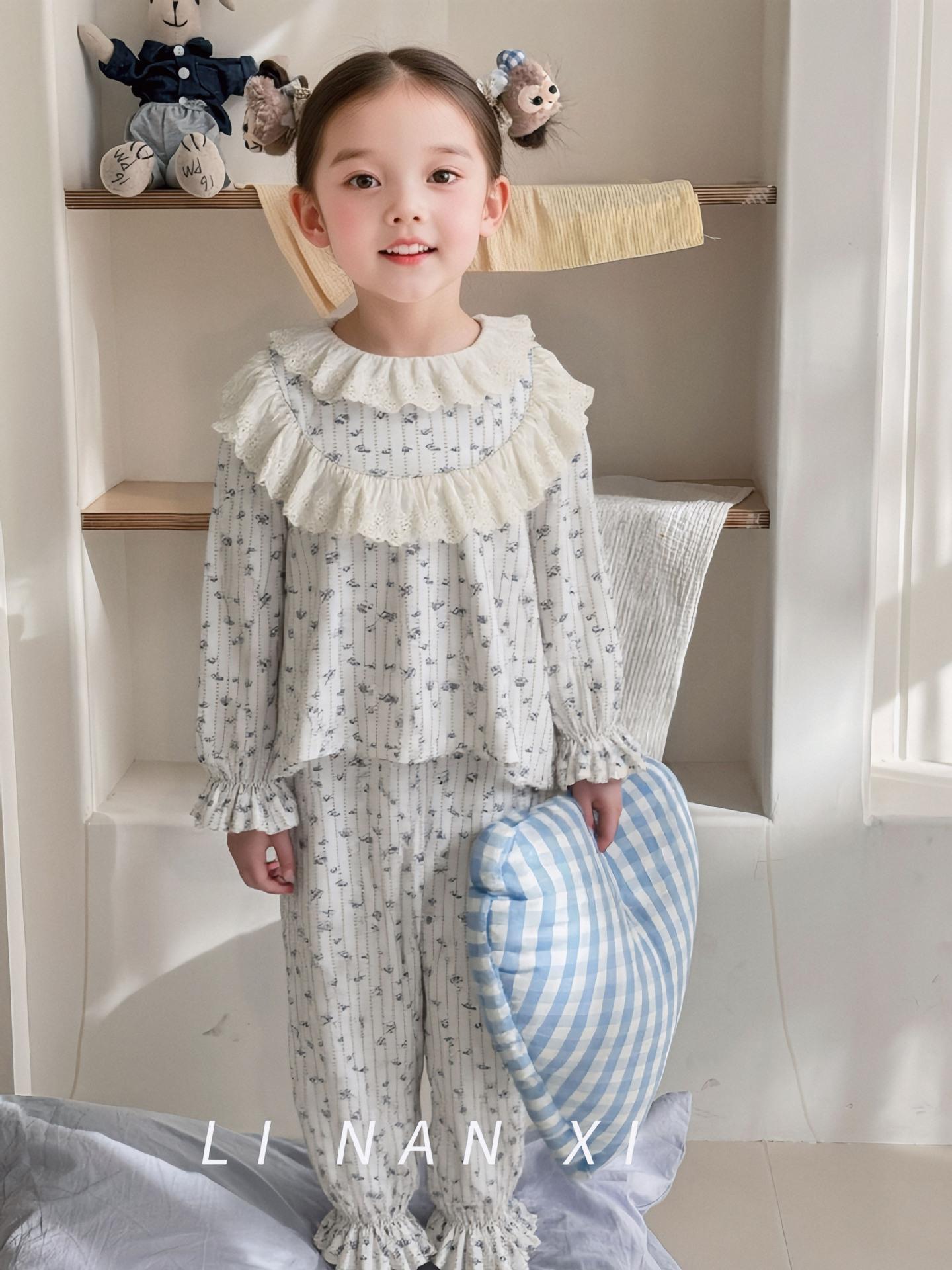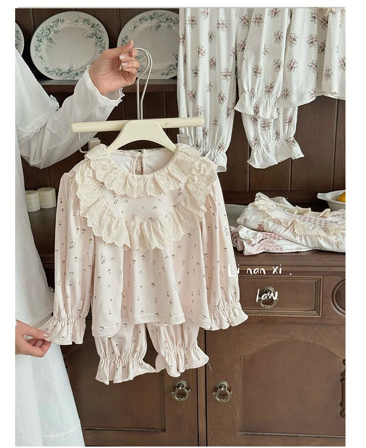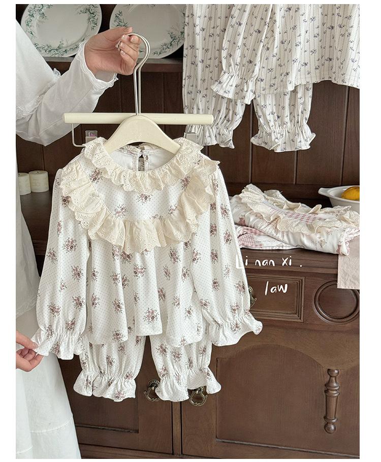 88076 Conjunto de Pijama de Otoño para Niñas 2025 Nuevo Conjunto de Ropa de Otoño para Bebé Niña Cómodo Pijama para Niños Pequeños y Medianos Ropa para el Hogar