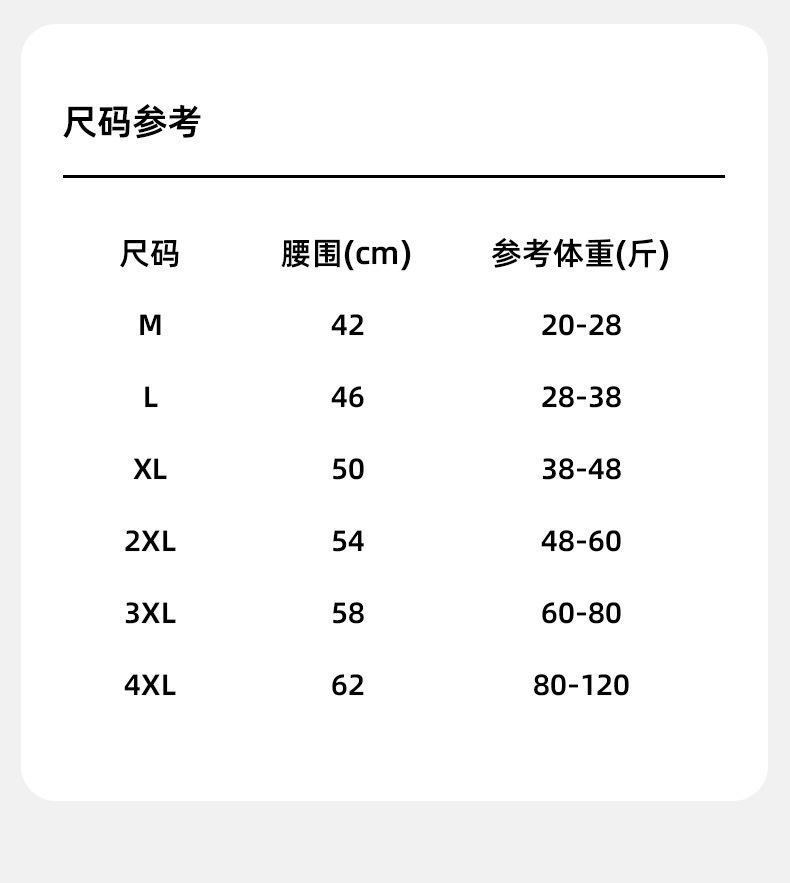M size weight 20-28 jin, L size weight 28-38 jin, Size XL Weight 38-48 jin, Size 2XL Weight 48-60 jin, Size 3X...