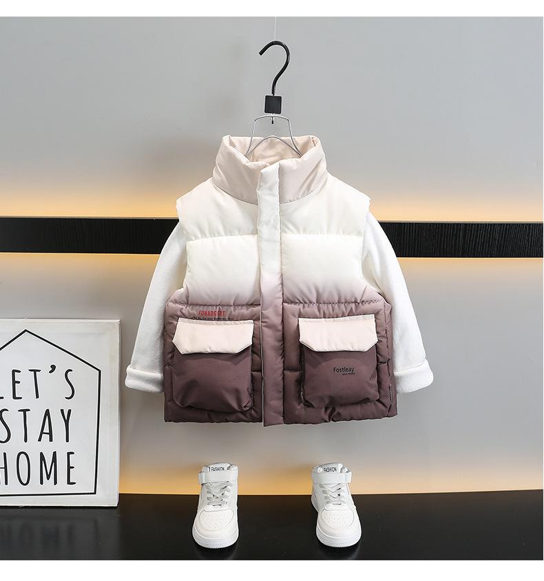 Chaleco para Niño Otoño Invierno 2025 Nueva Tendencia Marca Chaleco de Polar para Niños Ropa Exterior Moda Bebé Chaqueta sin Mangas Acolchada de Algodón Engrosada