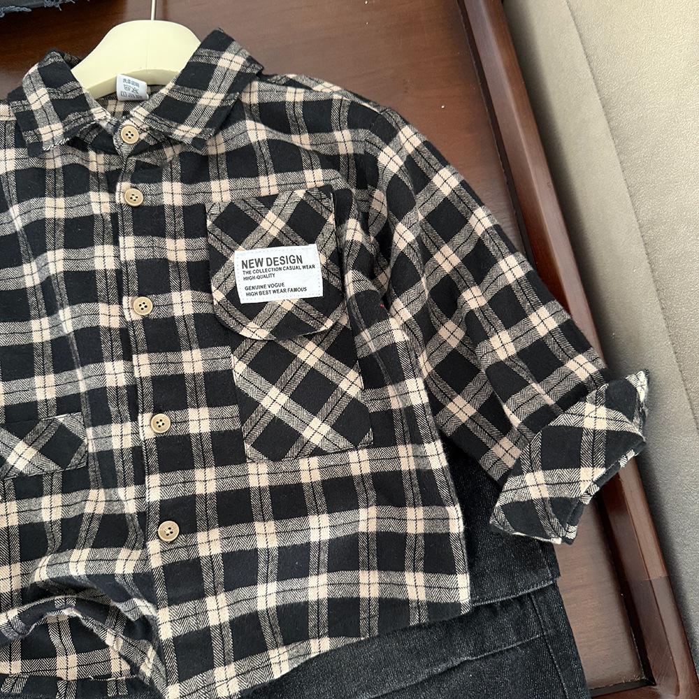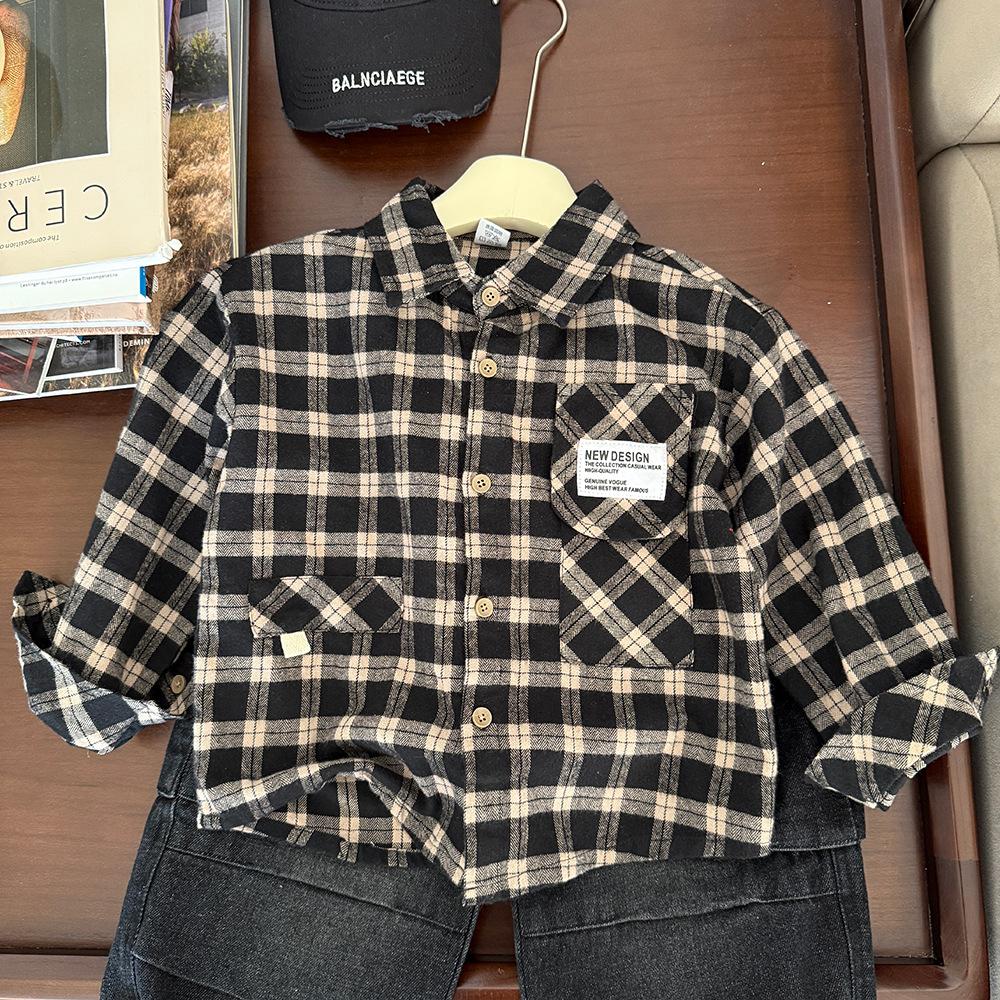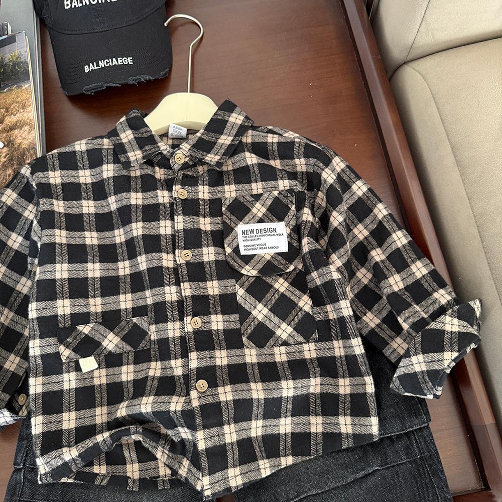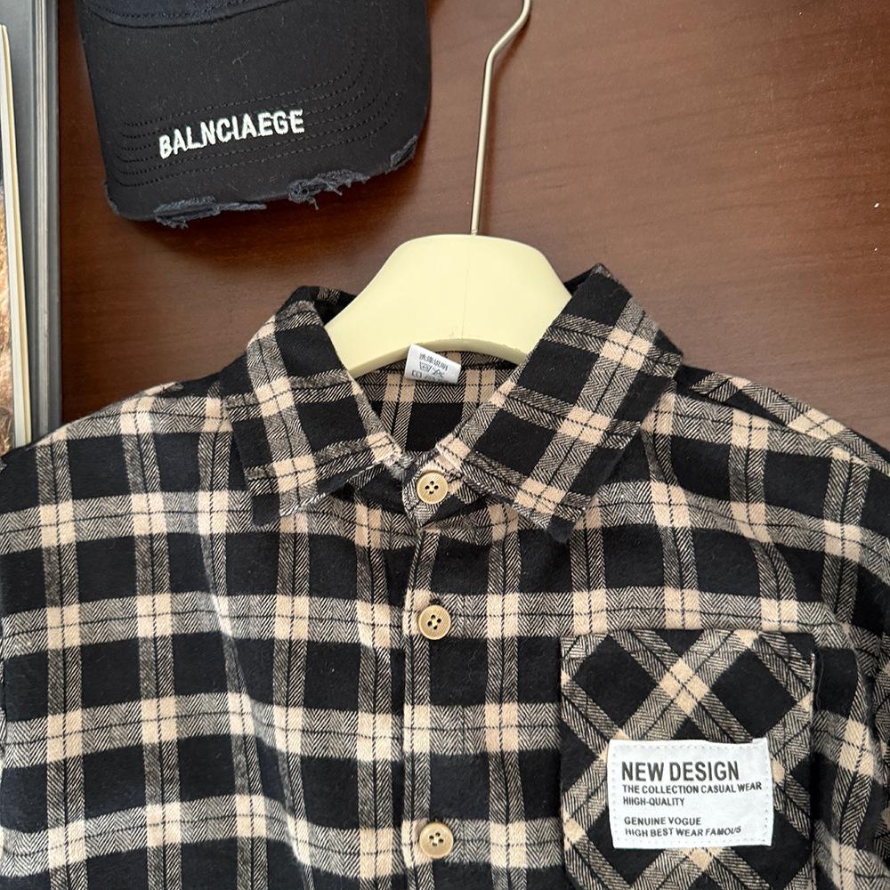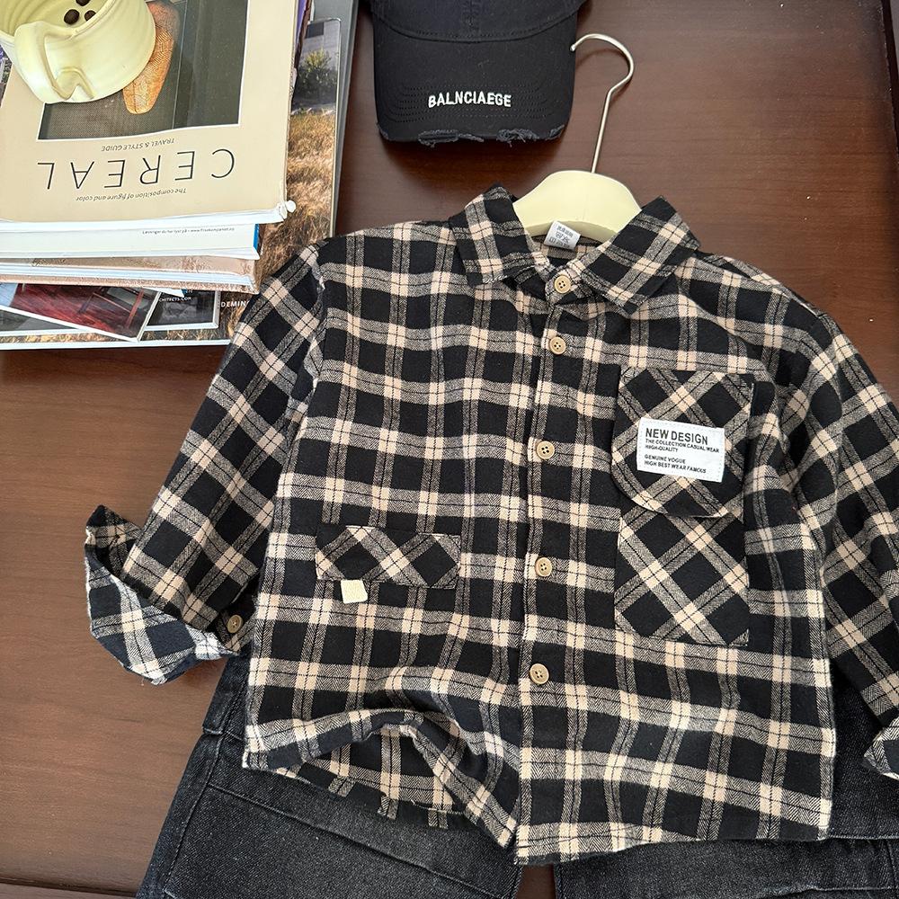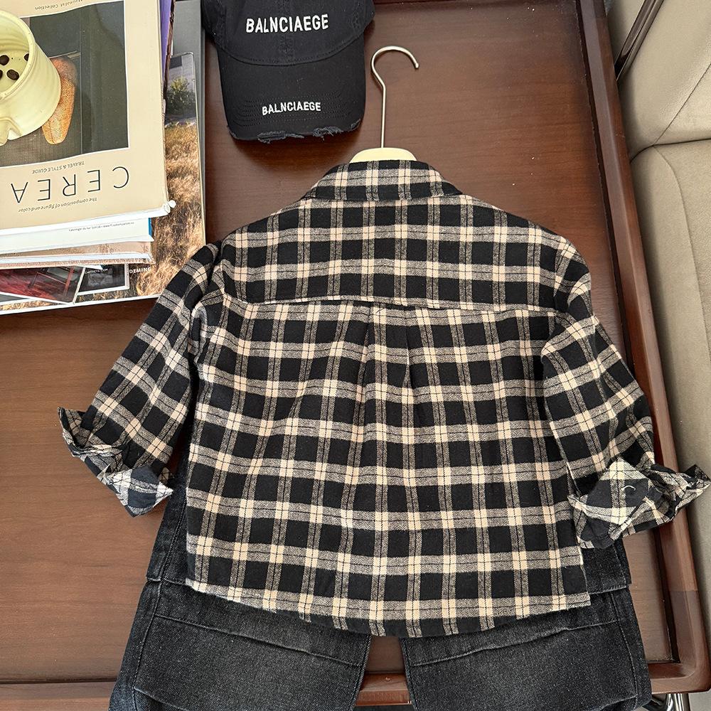Ropa para Niños Camisa de Cuadros Primavera 2025 Nuevo Etiquetado para Niños Top Moderno Combinable Moda para Niñas Camisa Holgada