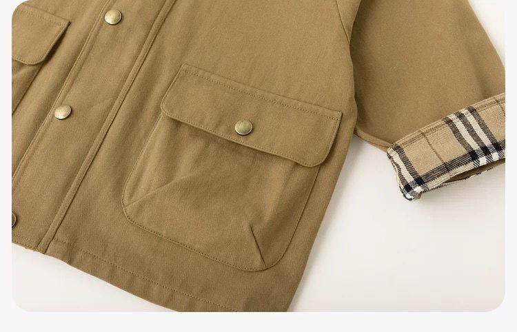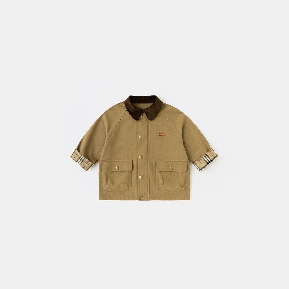 Abrigo Cortavientos de Primavera y Otoño para Niños y Niñas, Moda para Bebés, Marca de Tendencia Individual Infantil, Estilo Coreano, Solapa, Cuadros, Dibujos Animados, Abrigo