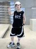 Traje de Chaleco para Niño Verano Delgado 2025 Nuevo Moderno Ropa de Verano para Niños Niño Letra Sin Mangas Shorts Conjunto de Dos Piezas
