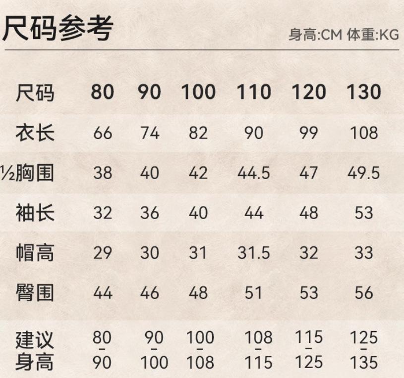 80cm, 90cm, 100cm, 110cm, 120cm, 130cm