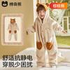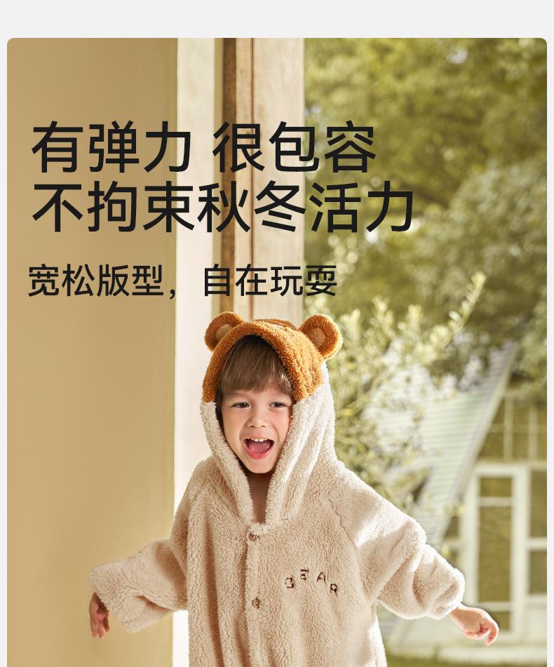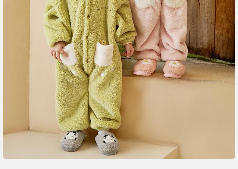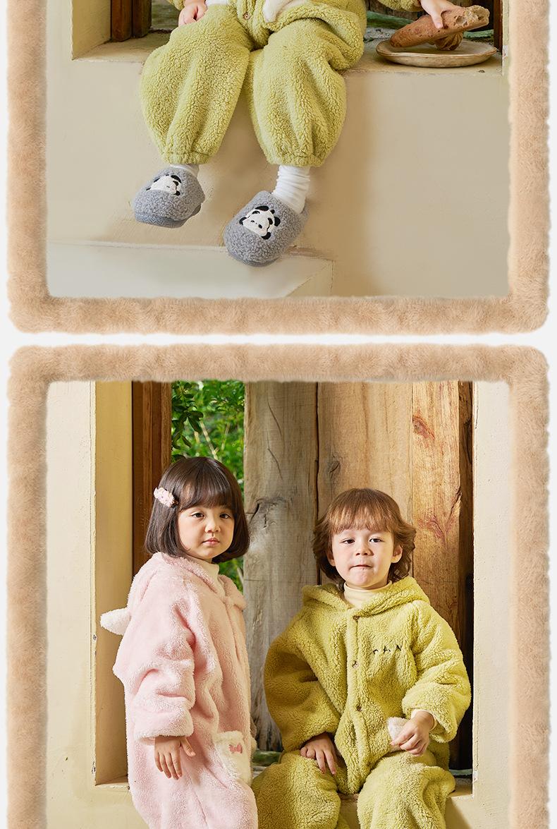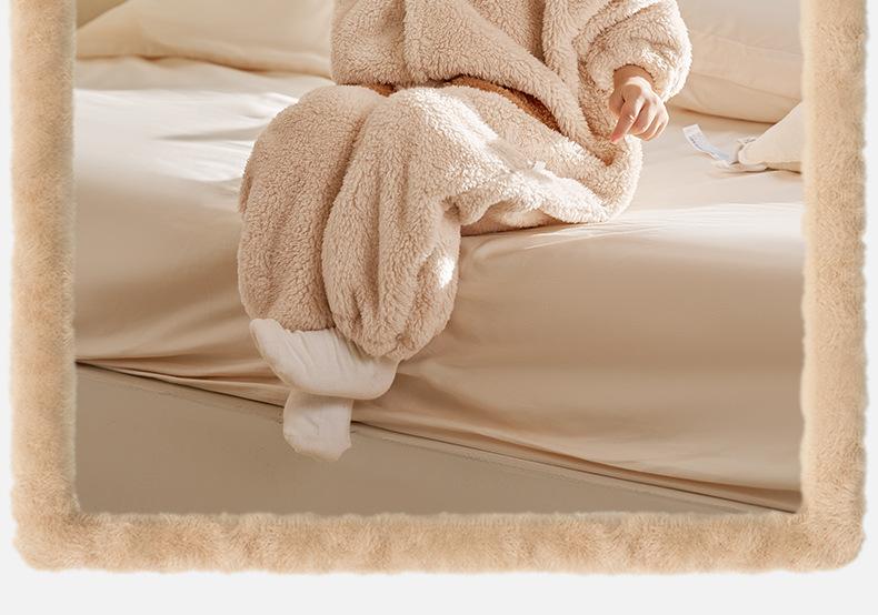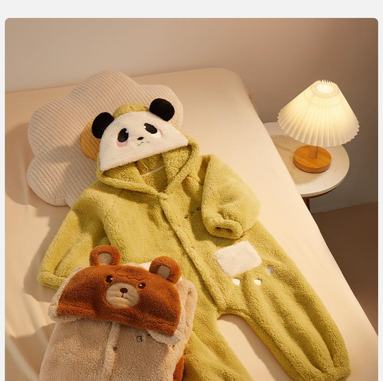 Pijamas para niños Primavera y Otoño Niños y Niñas Cálido Franela Ropa de Abrigo Ropa de Casa Conjunto Bebé Mameluco Antibacteriano con Forro Polar
