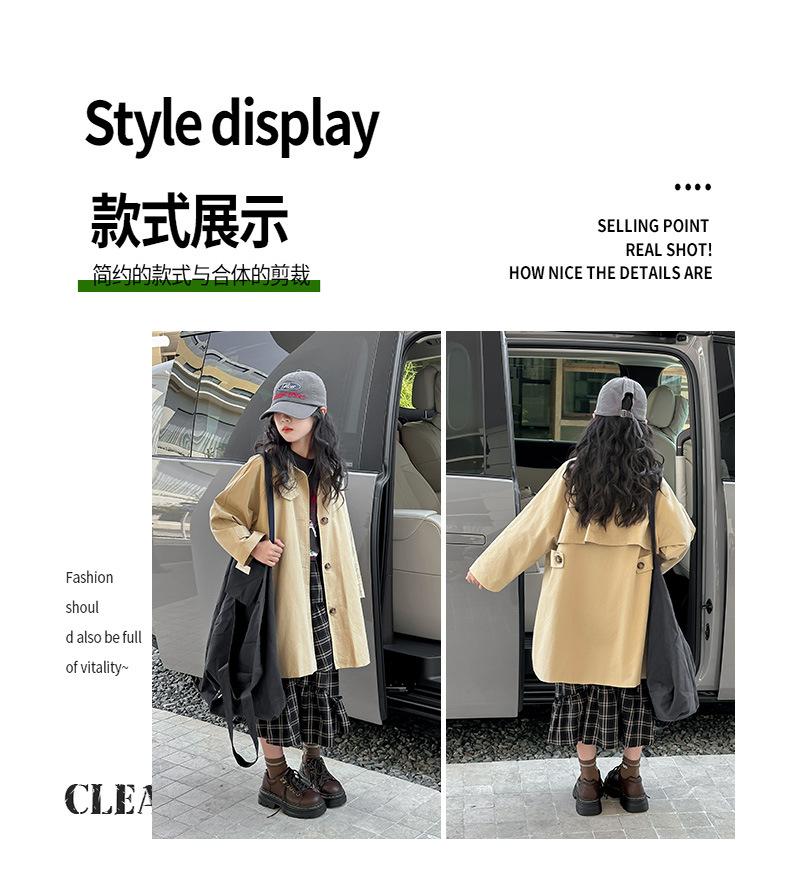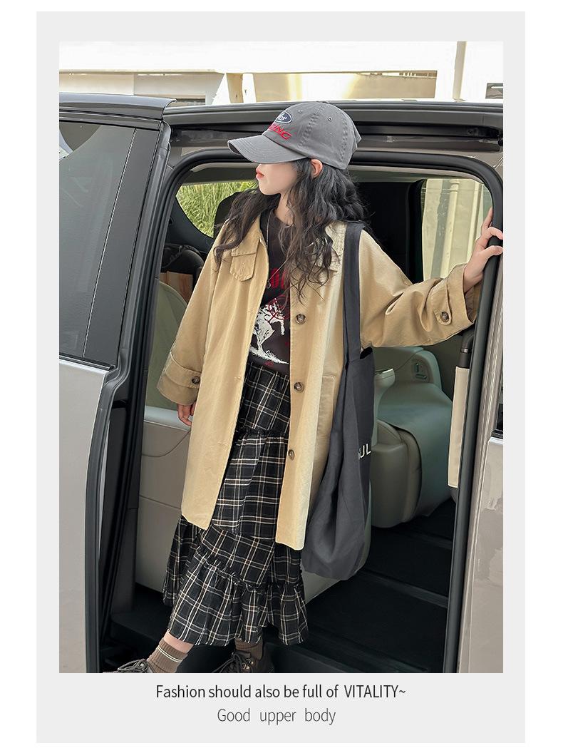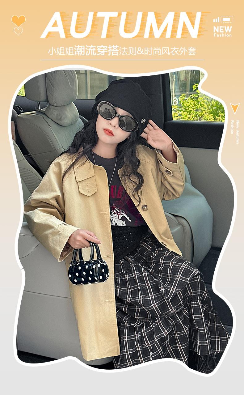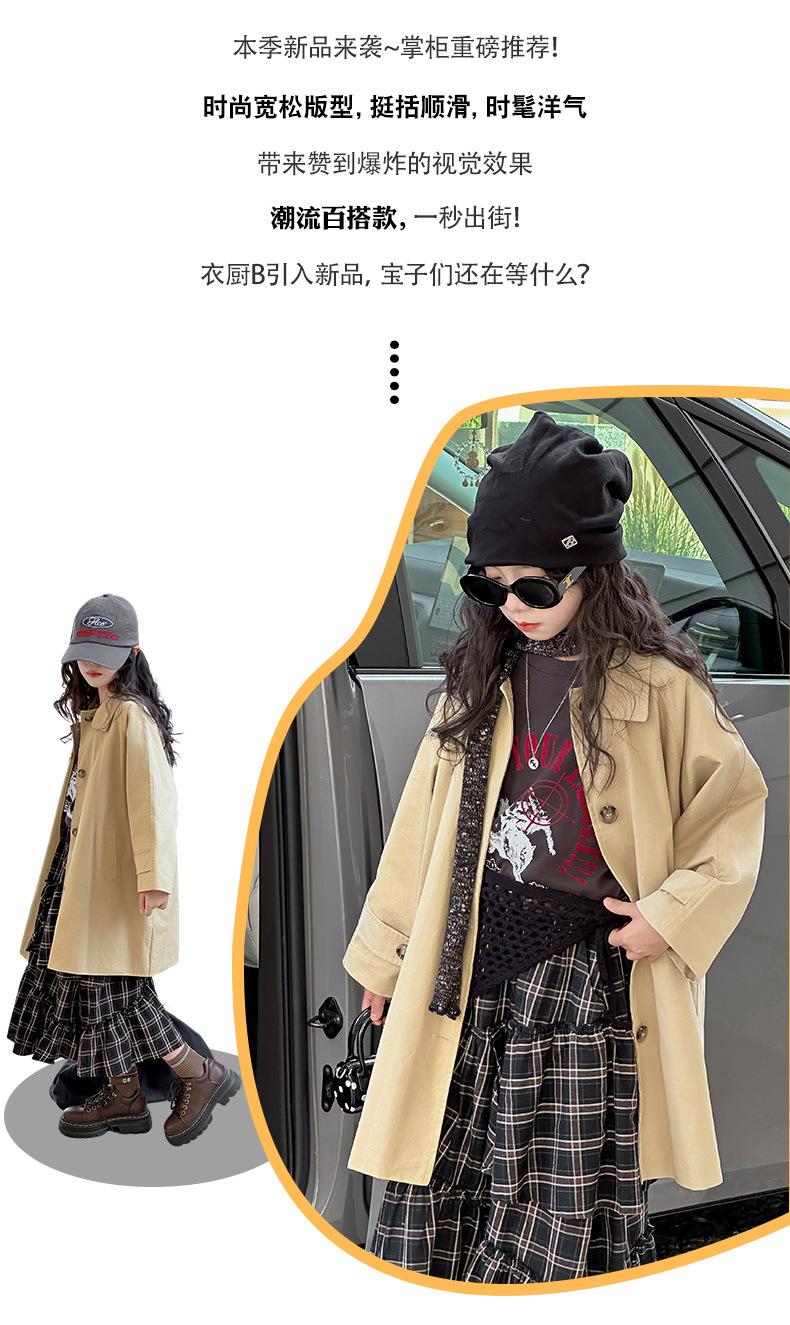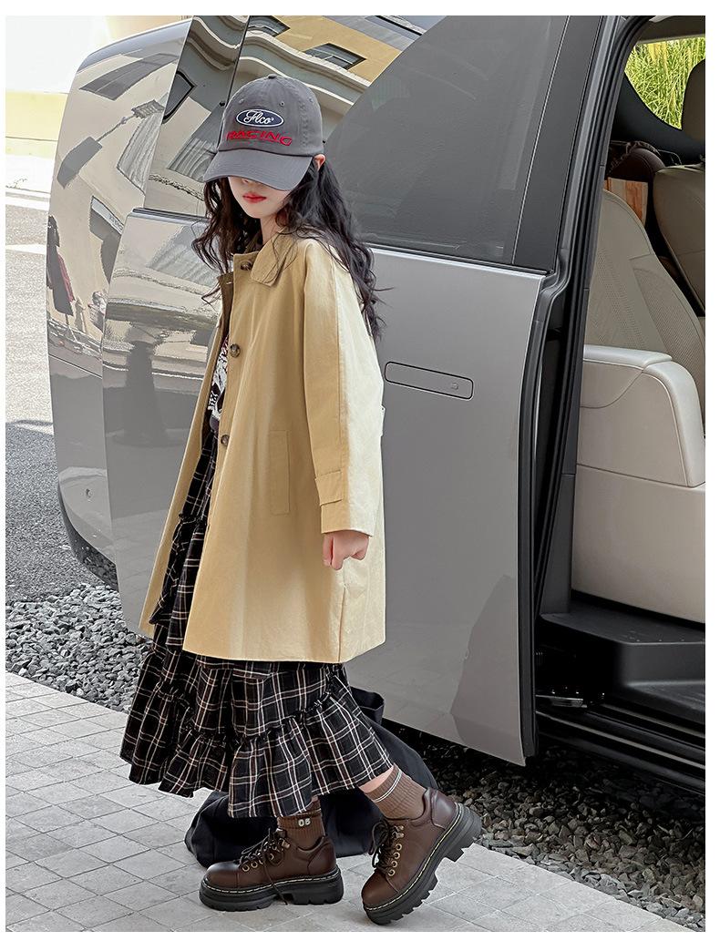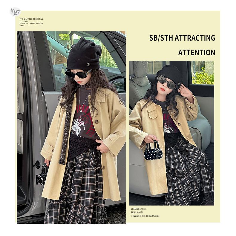Abrigo Trench para Niñas 2025 Otoño Nuevo Estilo Niños Medianos y Grandes Estilo Coreano Chaqueta Mediana Ropa de Otoño Top de Manga Larga