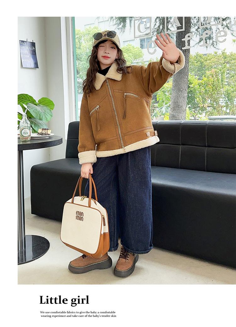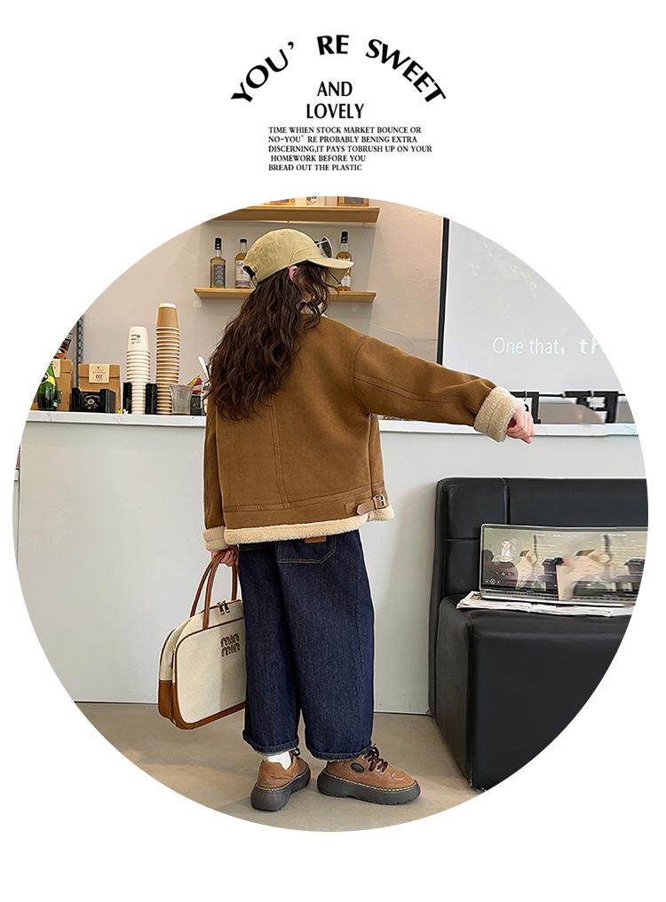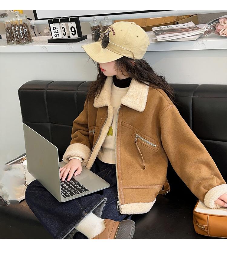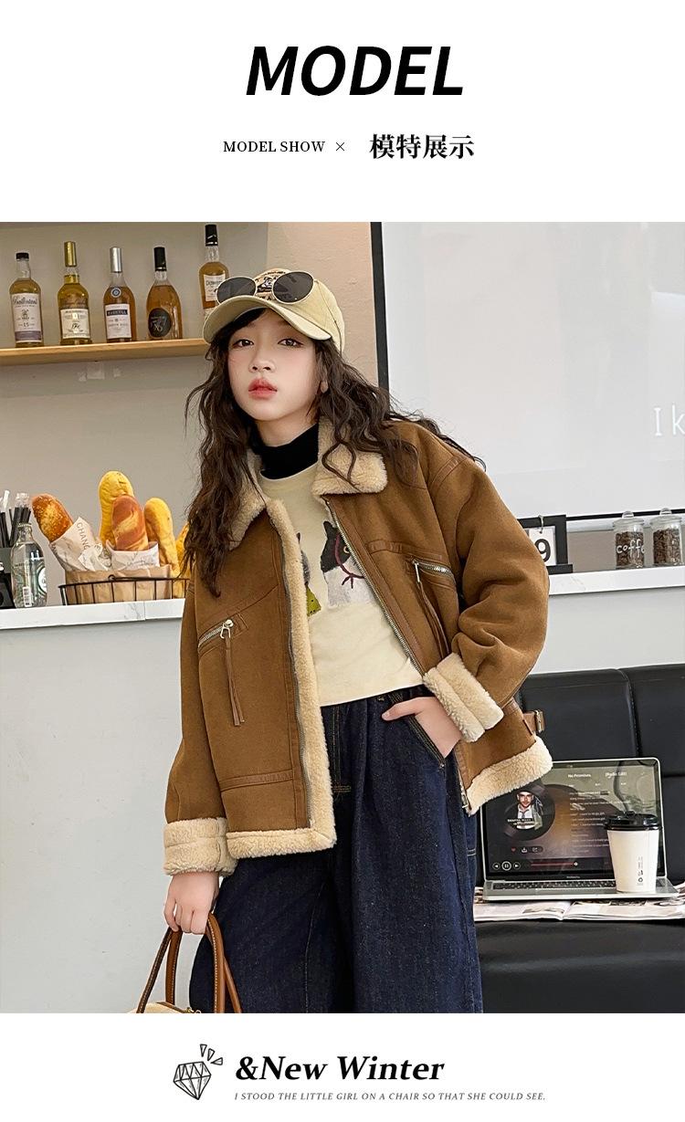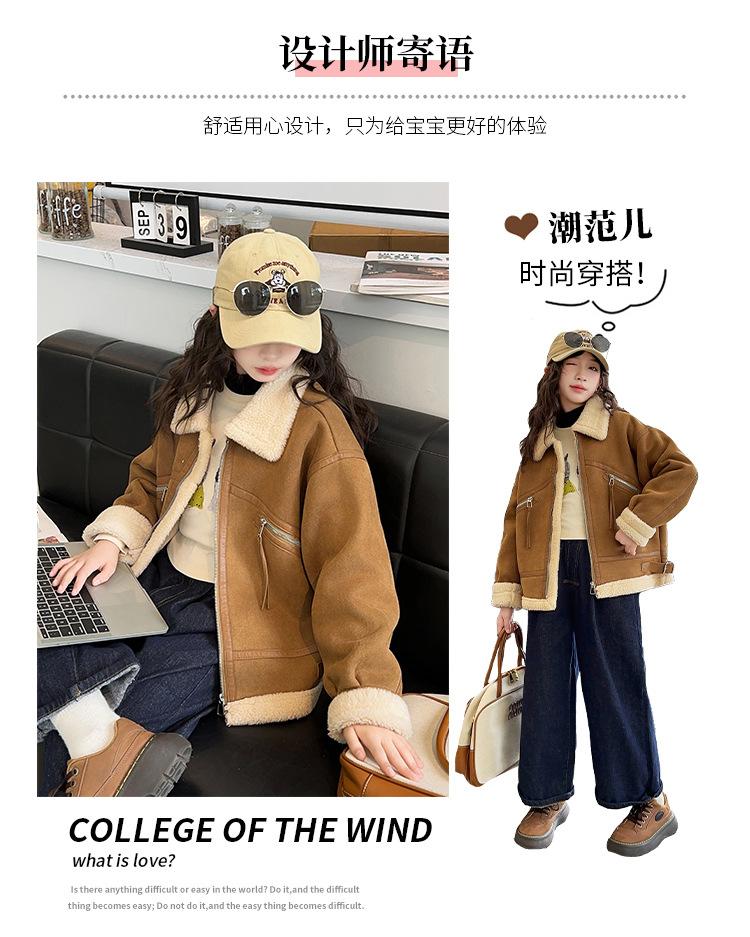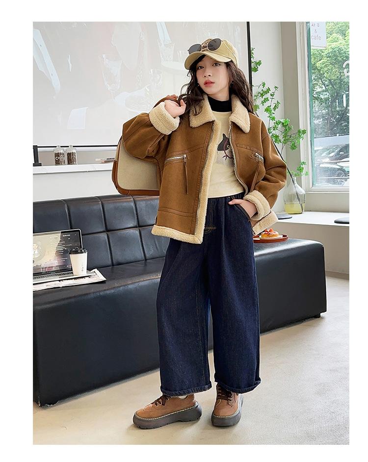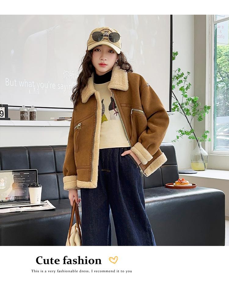 Abrigo para Niñas con Forro de Piel Estilo Otoño e Invierno 2025 Nueva Moda Infantil para Niña Top Grueso con Forro Polar de Invierno