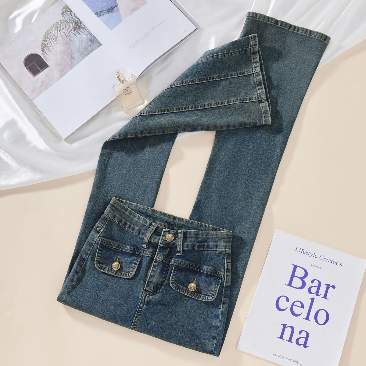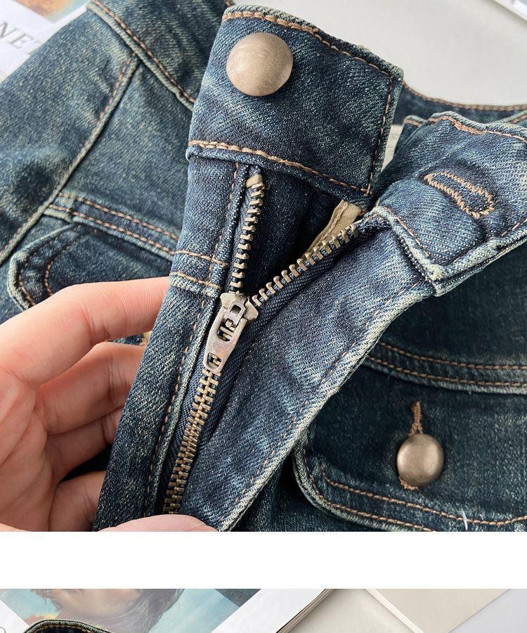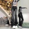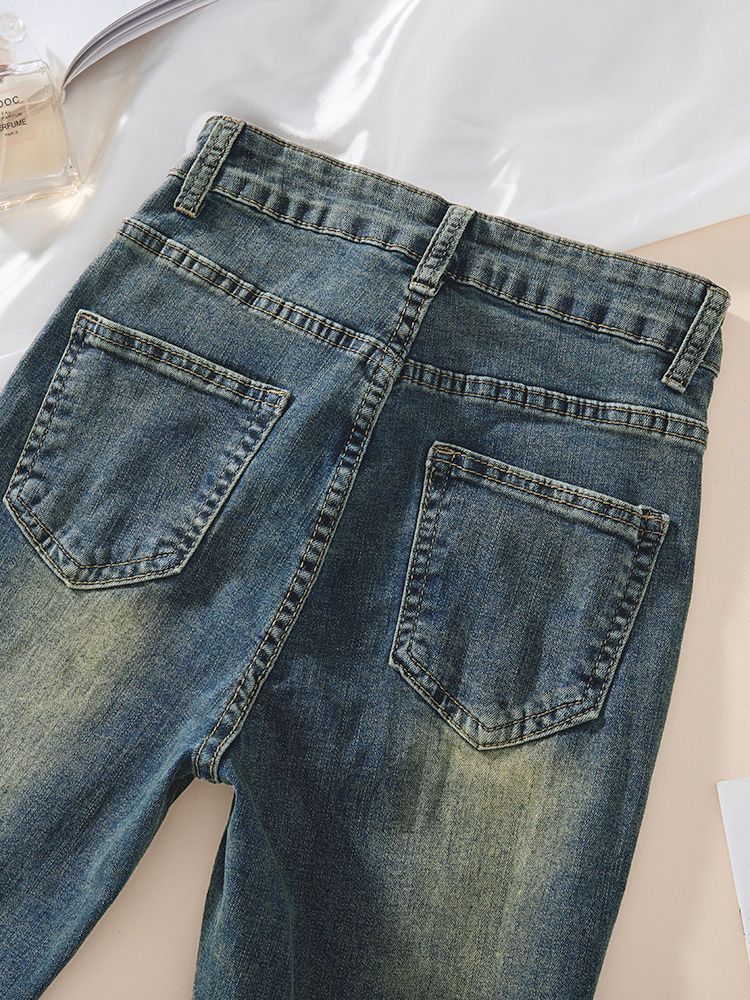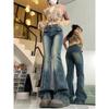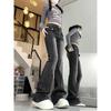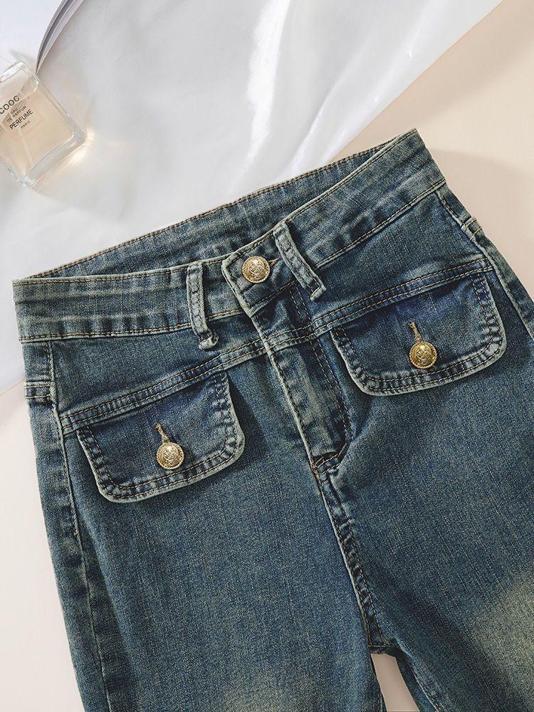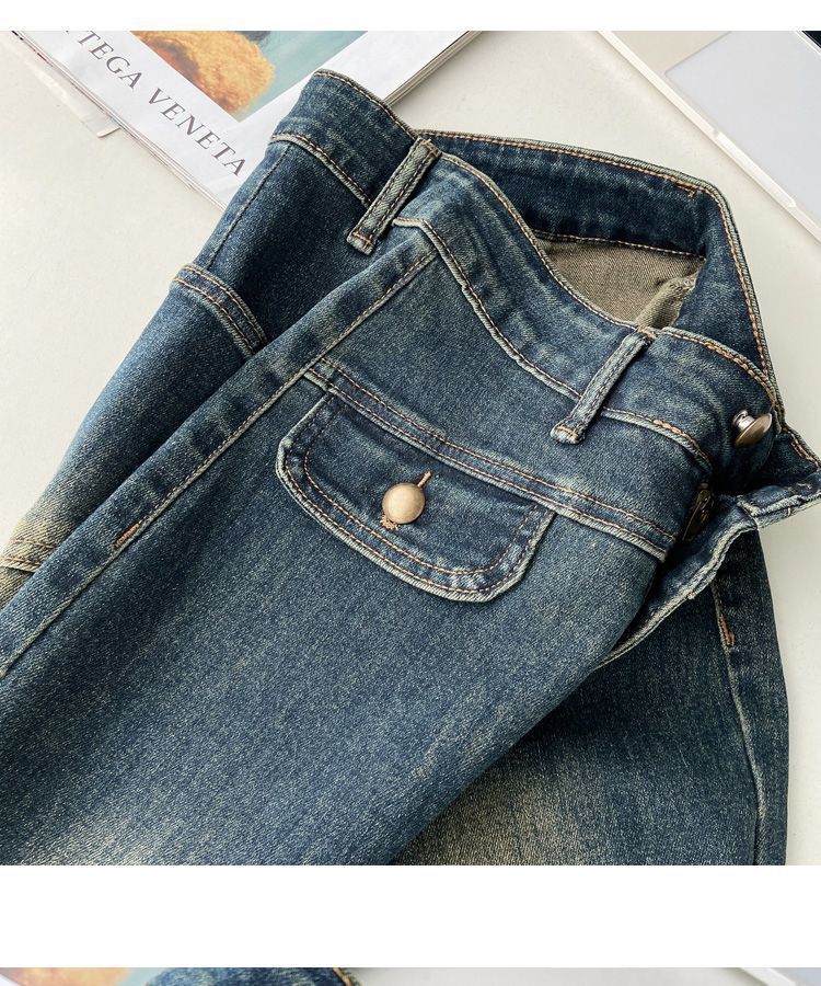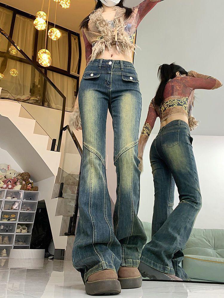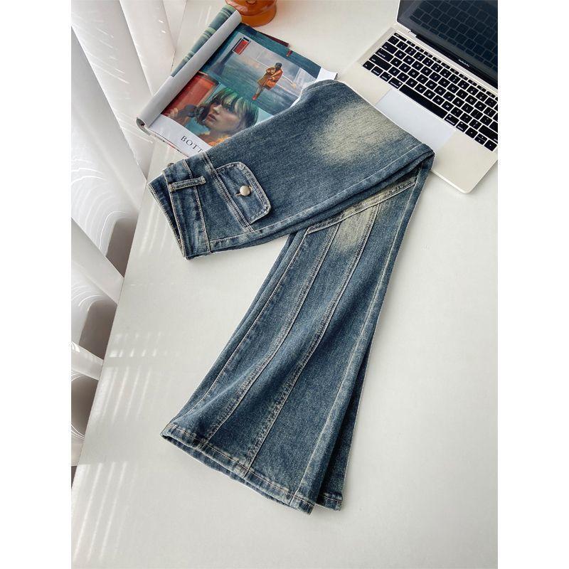 Pantalones Acampanados de Mezclilla de Cintura Alta Retro Azul Estilo Americano para Mujer Primavera y Otoño Nuevo Elástico Ajustado Adelgazantes Pantalones Largos