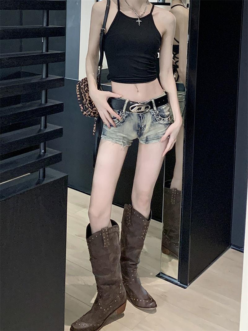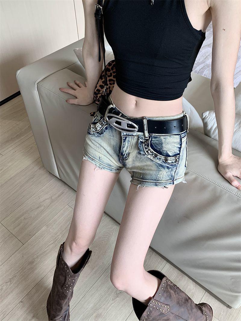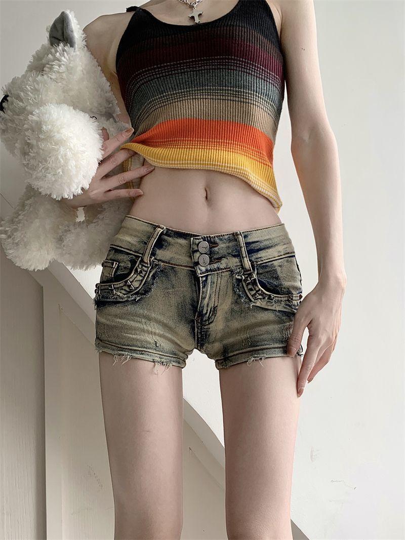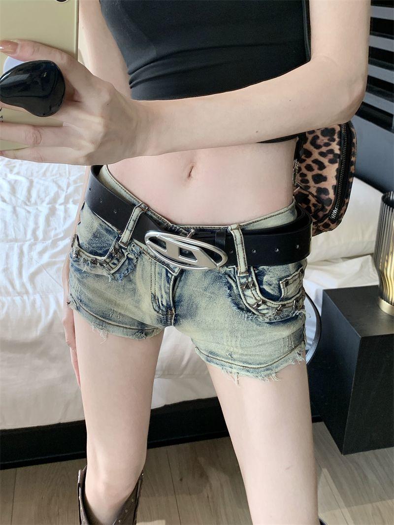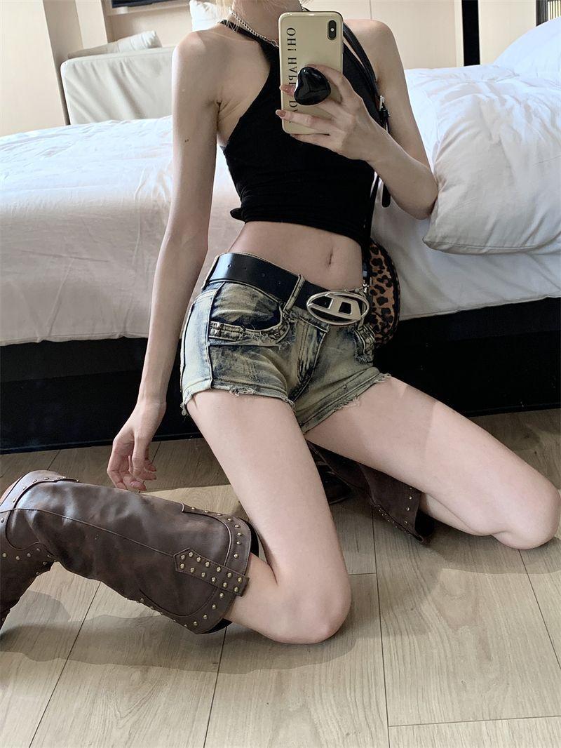Shorts de Mezclilla Retro Americanos de Calle Principal Desgastados para Mujer 2024 Nuevos Cintura Alta Slim Sexy Adelgazantes Hot Pants