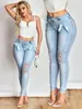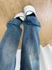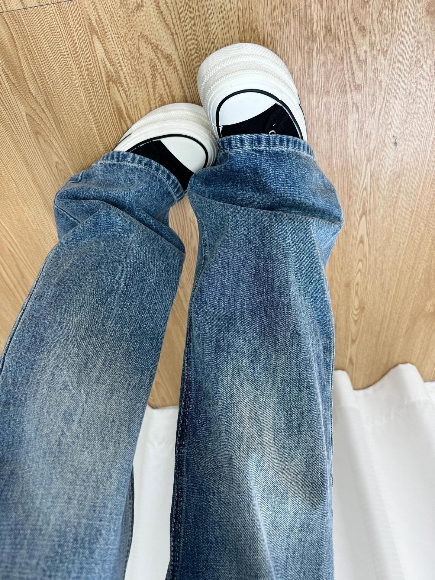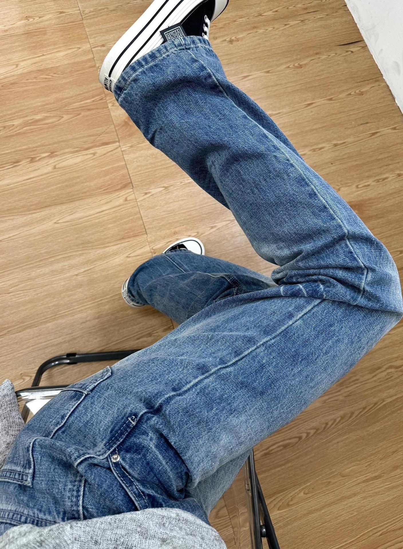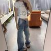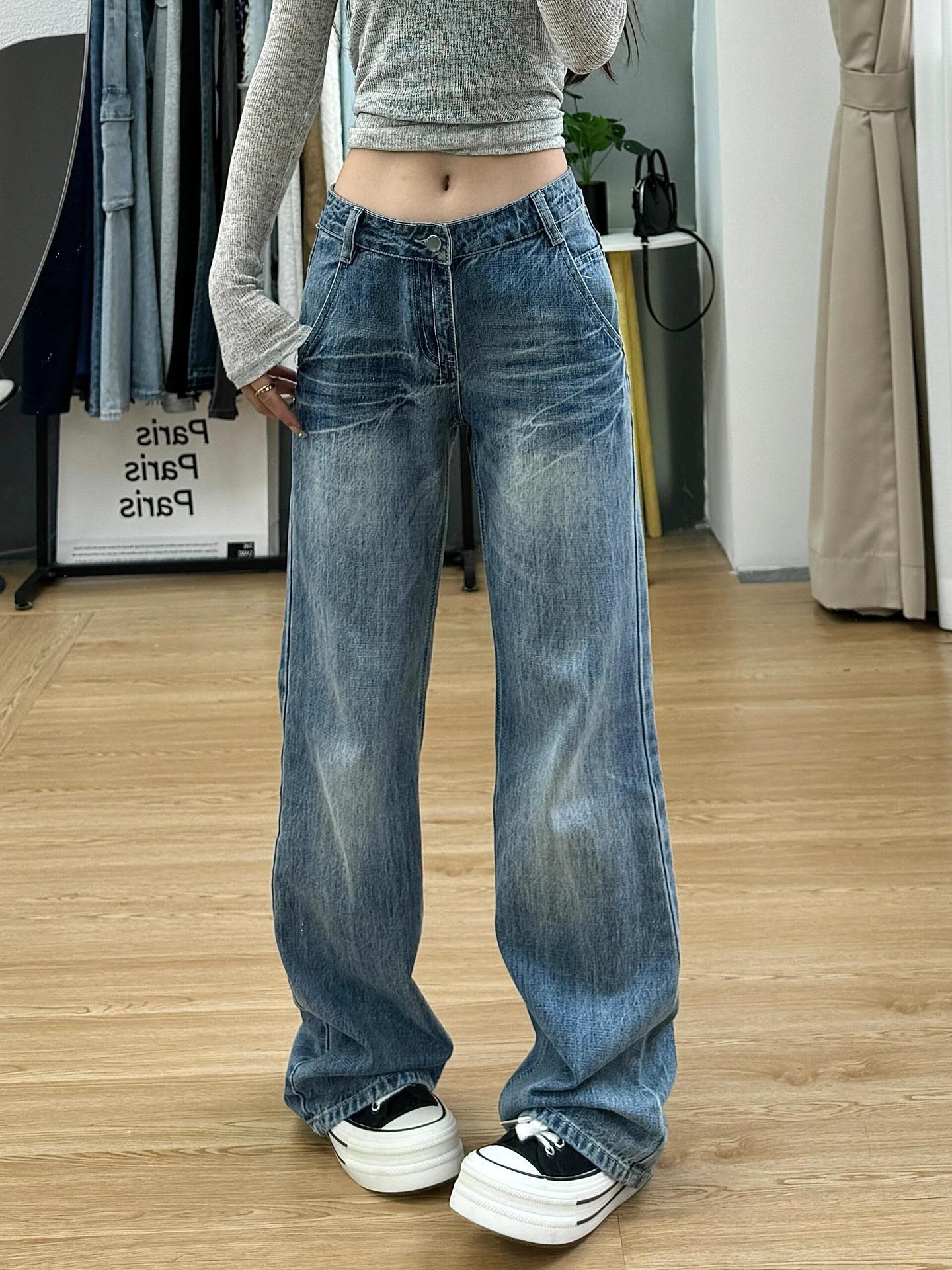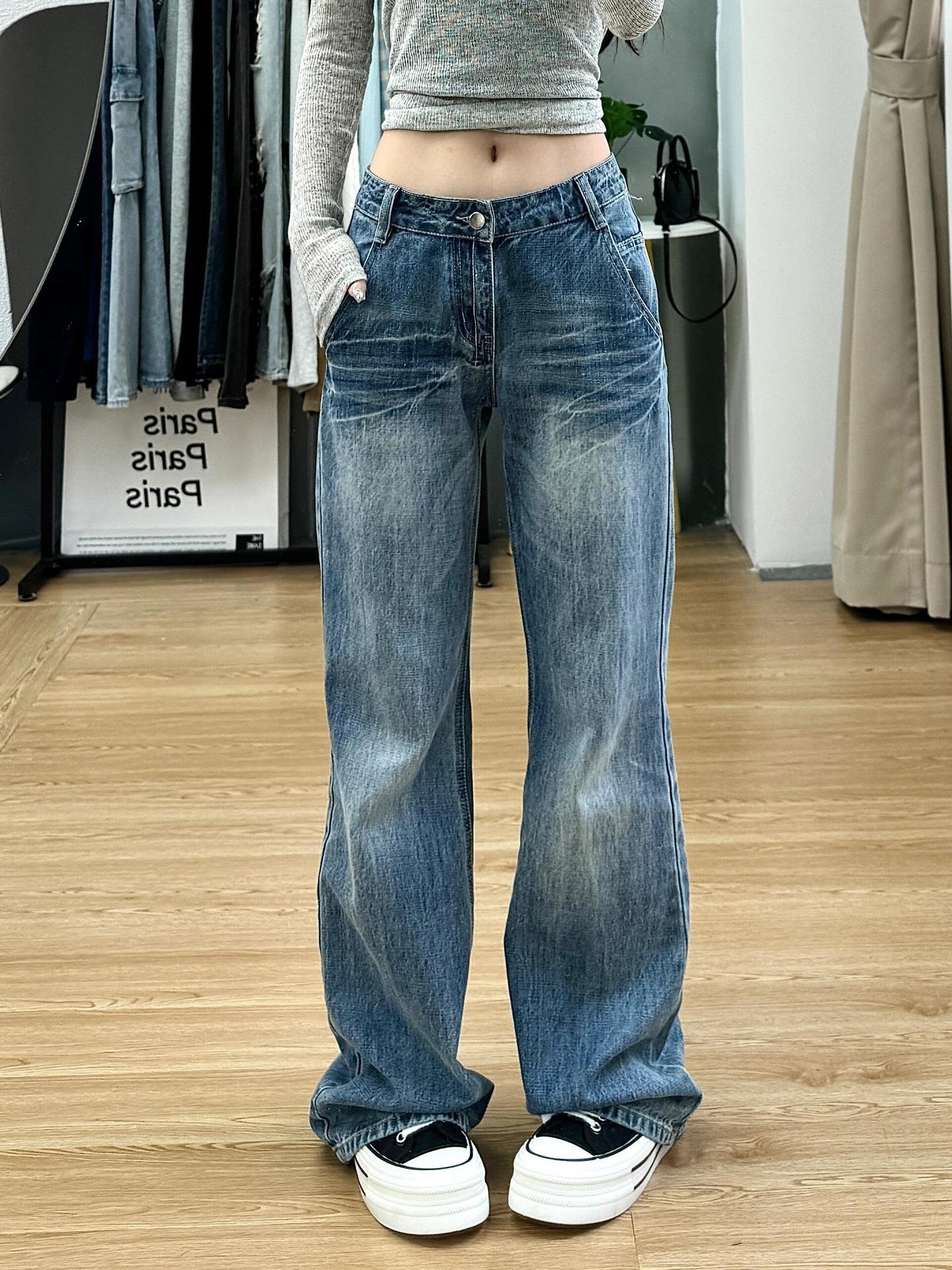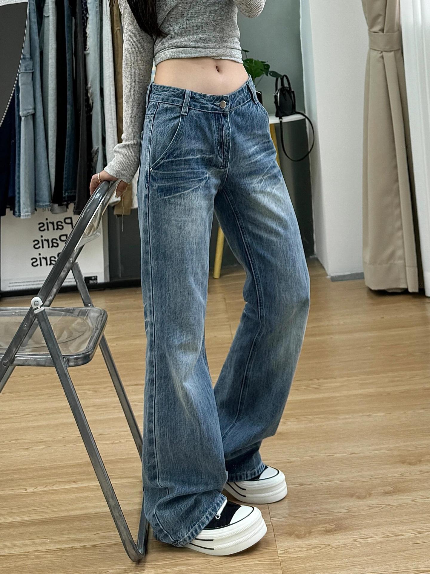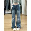Jeans acampanados de tiro bajo estilo americano retro para mujer 2024 Nuevo Verano Diseño agrietado Sentido Sueltos Micro-pantalones hundidos