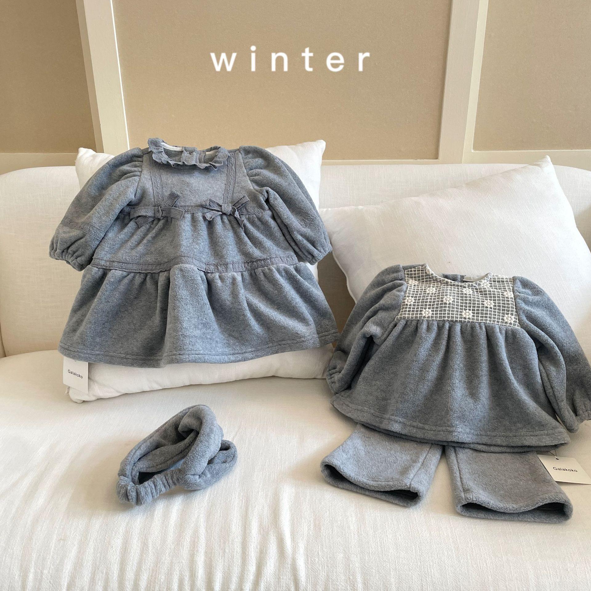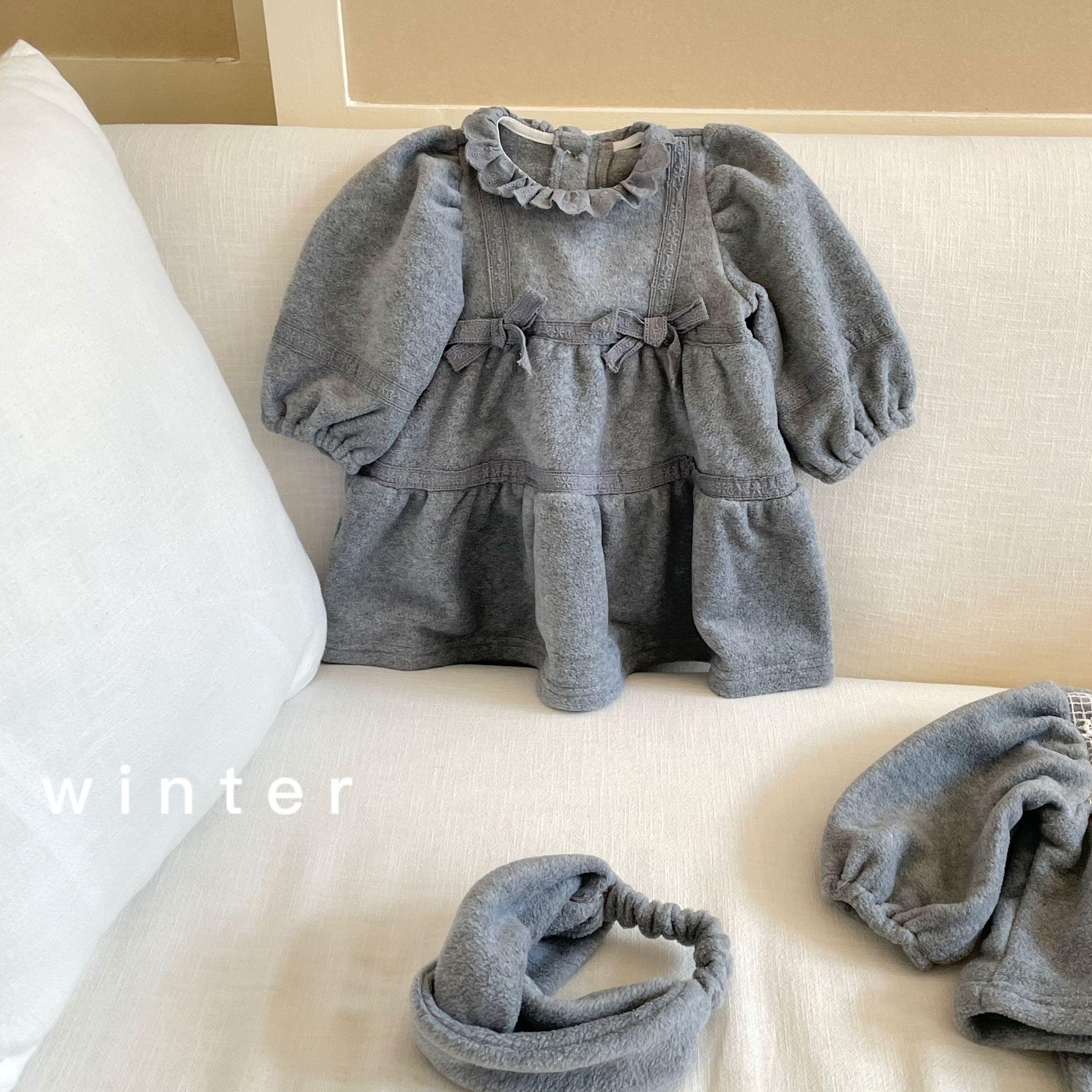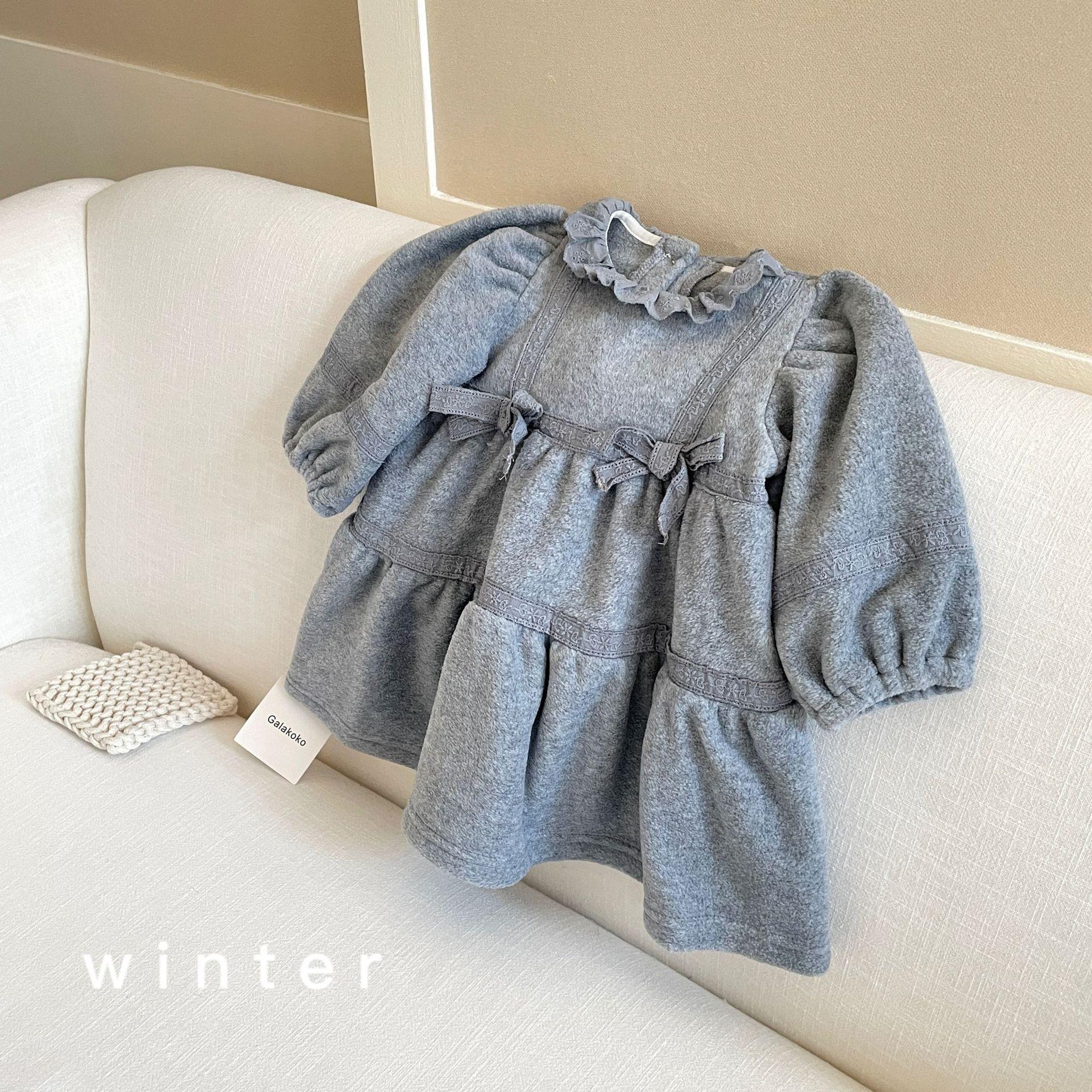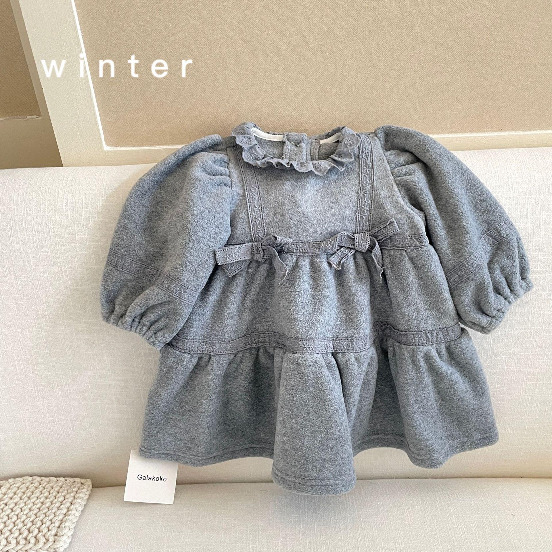 Vestido de Otoño e Invierno para Niñas 25 Nuevo Vestido de Princesa Infantil a la Moda Conjunto de Encaje de Terciopelo Vestido de Noche para Bebé de un Año