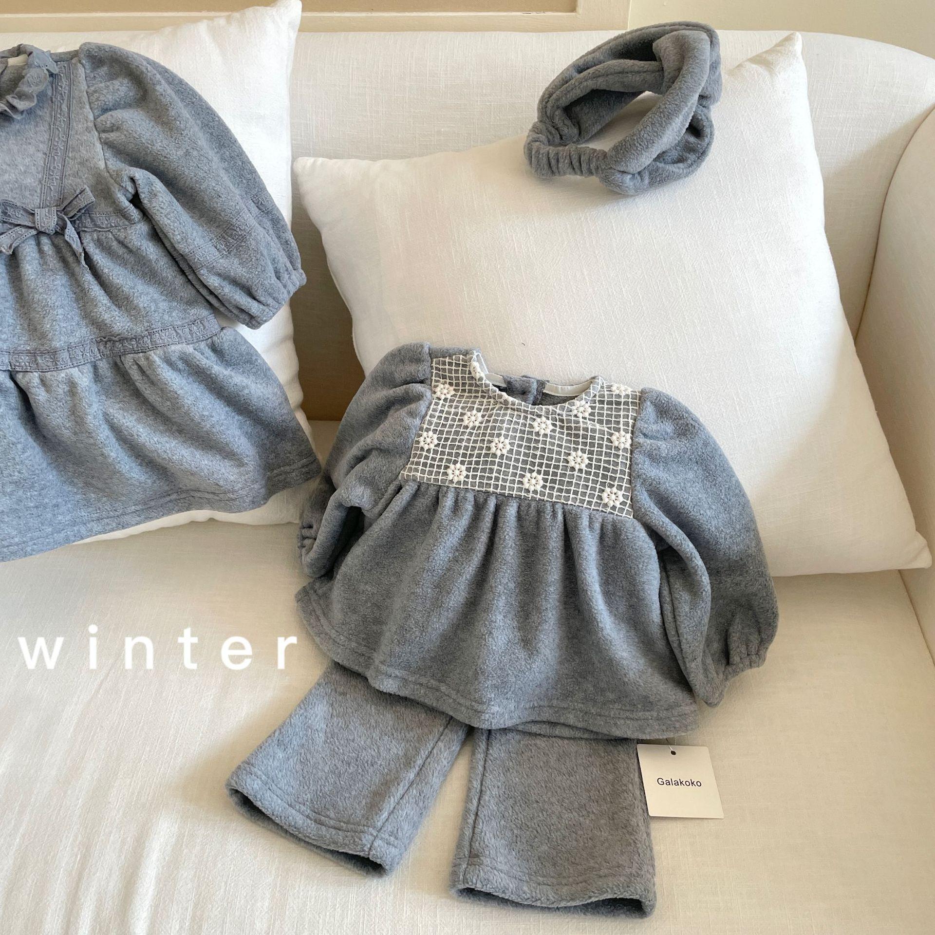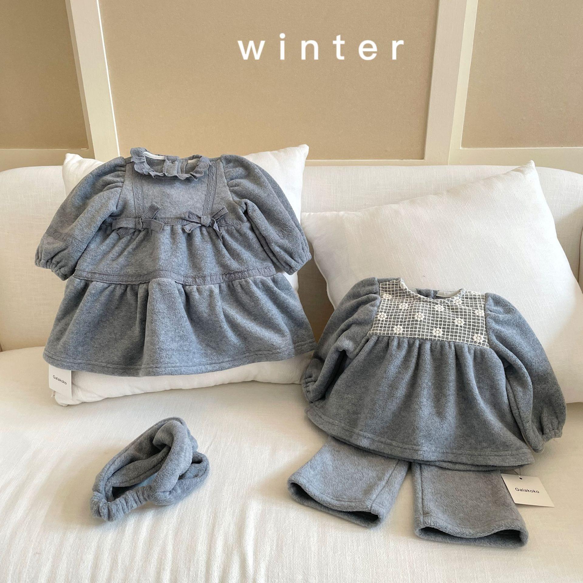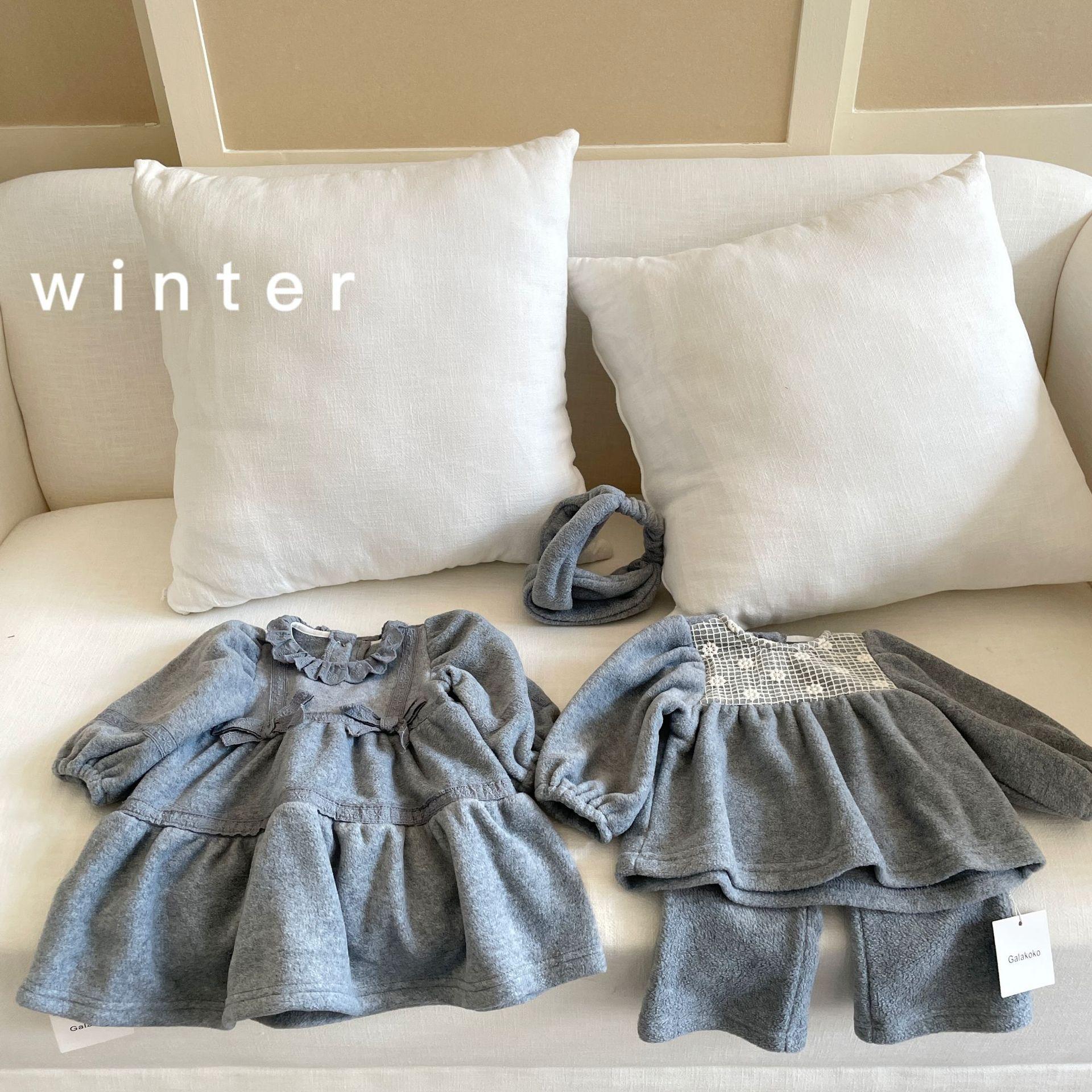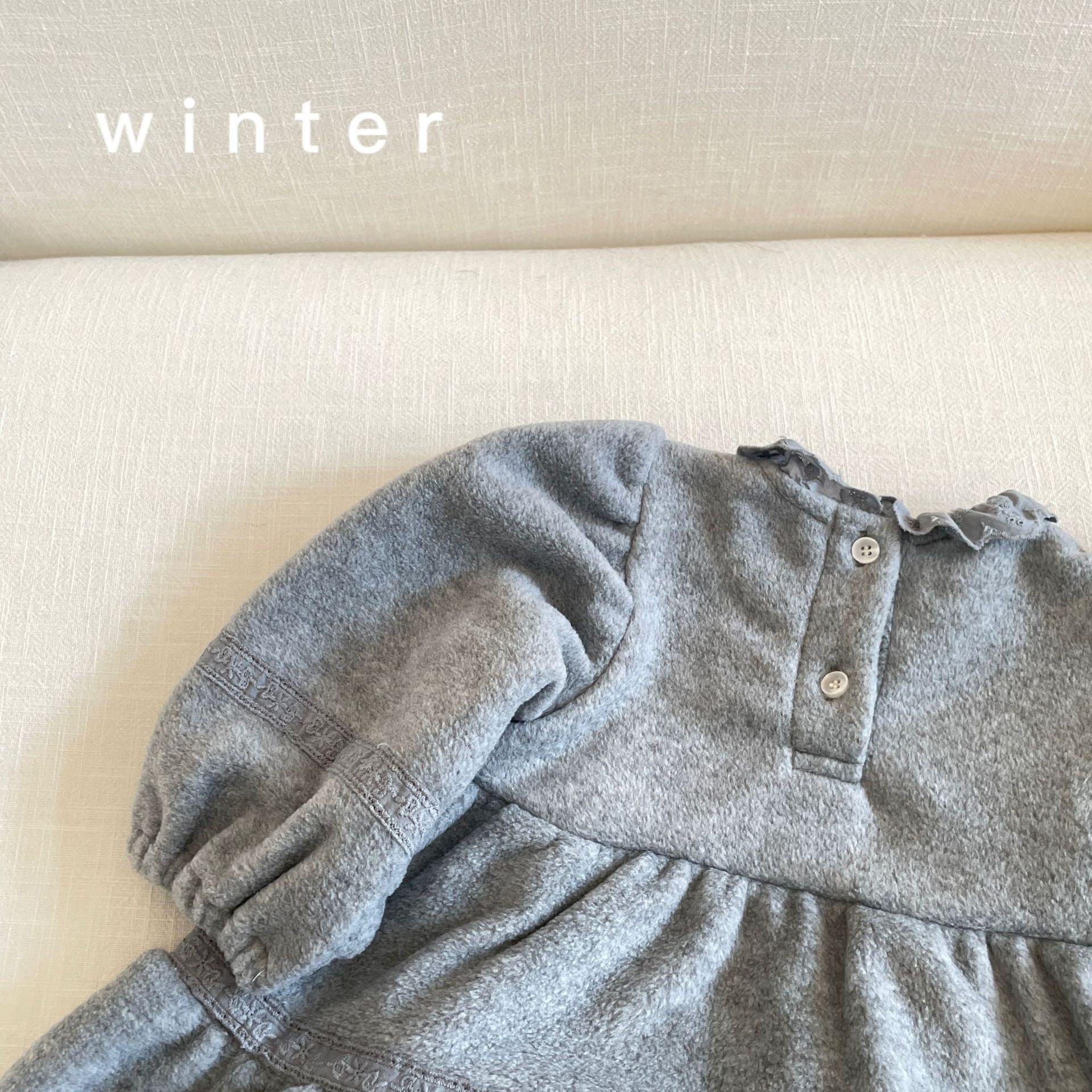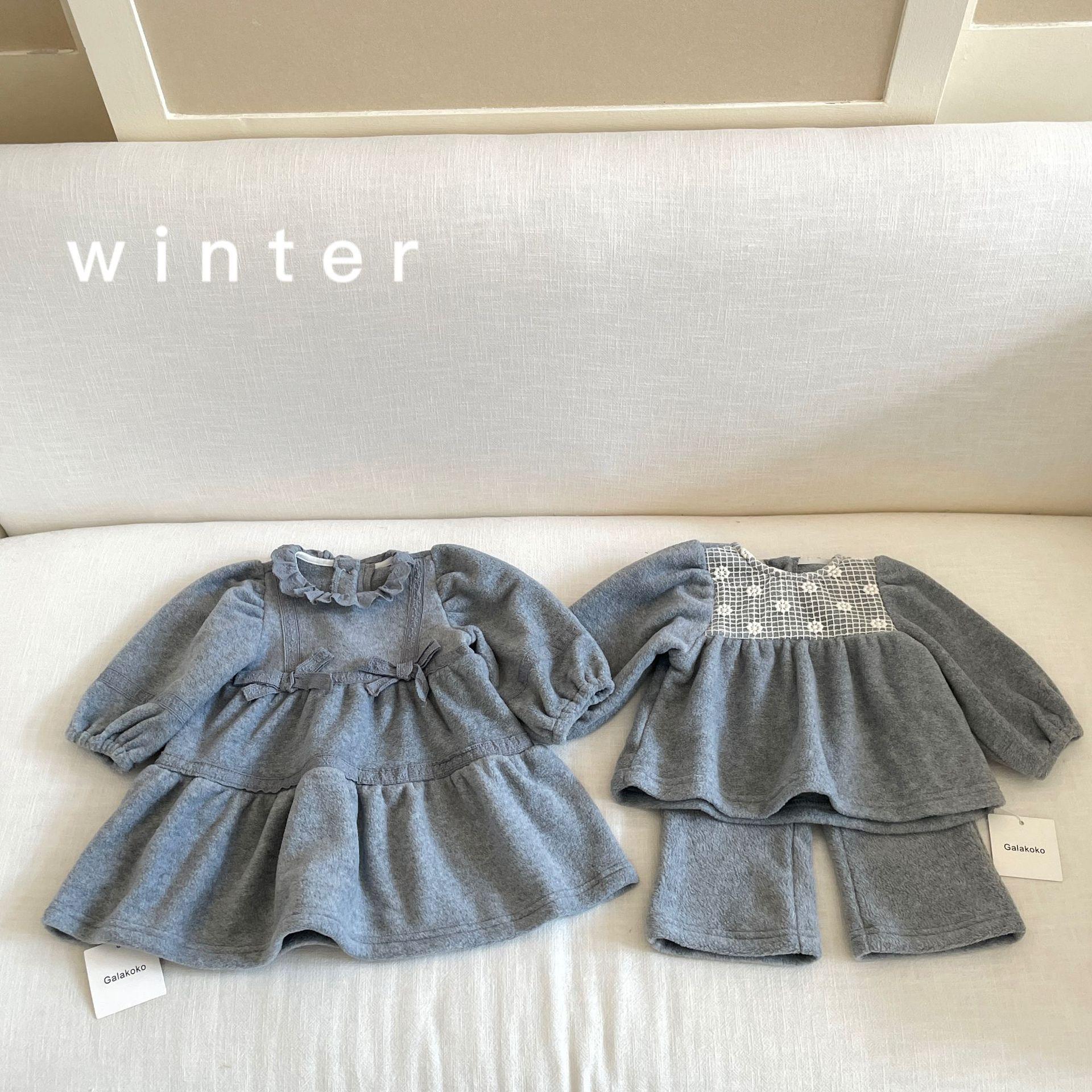 Vestido de Otoño e Invierno para Niñas 25 Nuevo Vestido de Princesa Infantil a la Moda Conjunto de Encaje de Terciopelo Vestido de Noche para Bebé de un Año