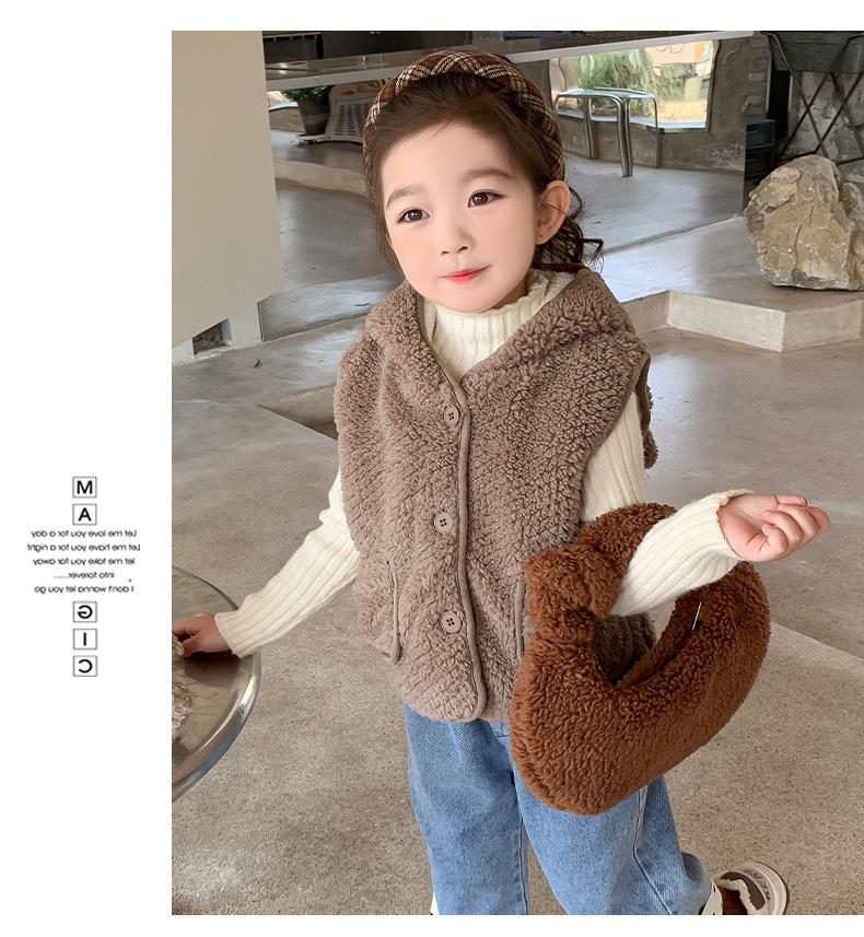 Chaleco Chaleco de Niña Otoño Invierno 2025 Nuevo Ropa de Invierno para Niños Abrigo Exterior sin Mangas de Invierno para Bebé Niña Suéter Grueso Peludito