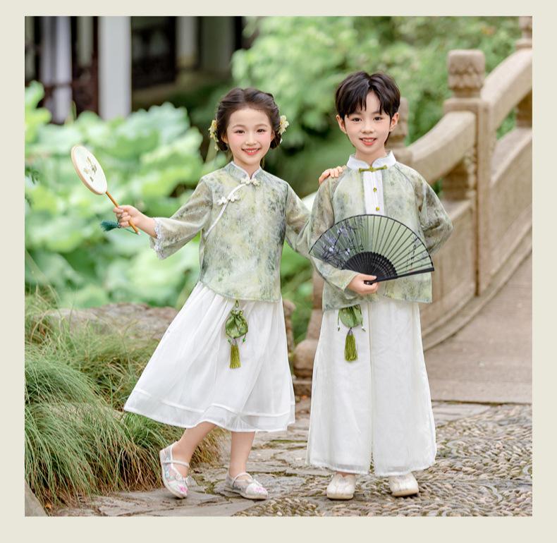 Traje Tang de Estilo Chino Antiguo de Estilo Nacional para Niños y Niñas, Traje Guoxue, Jardín de Infancia, Recitación de Poesía para el Día Nacional y el Festival del Medio Otoño