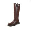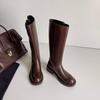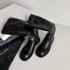 Botas de cuero para mujer de otoño e invierno, cuero genuino, talla grande, botas de tacón medio sin cordones de piel de vaca versátiles de caña alta, nuevas botas Martin para mujer