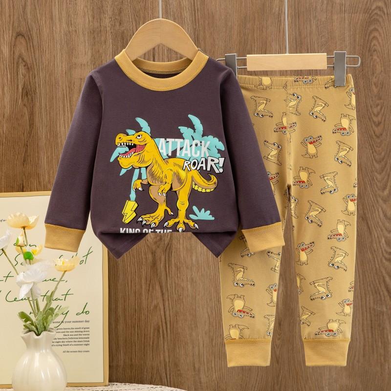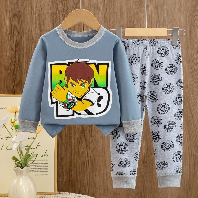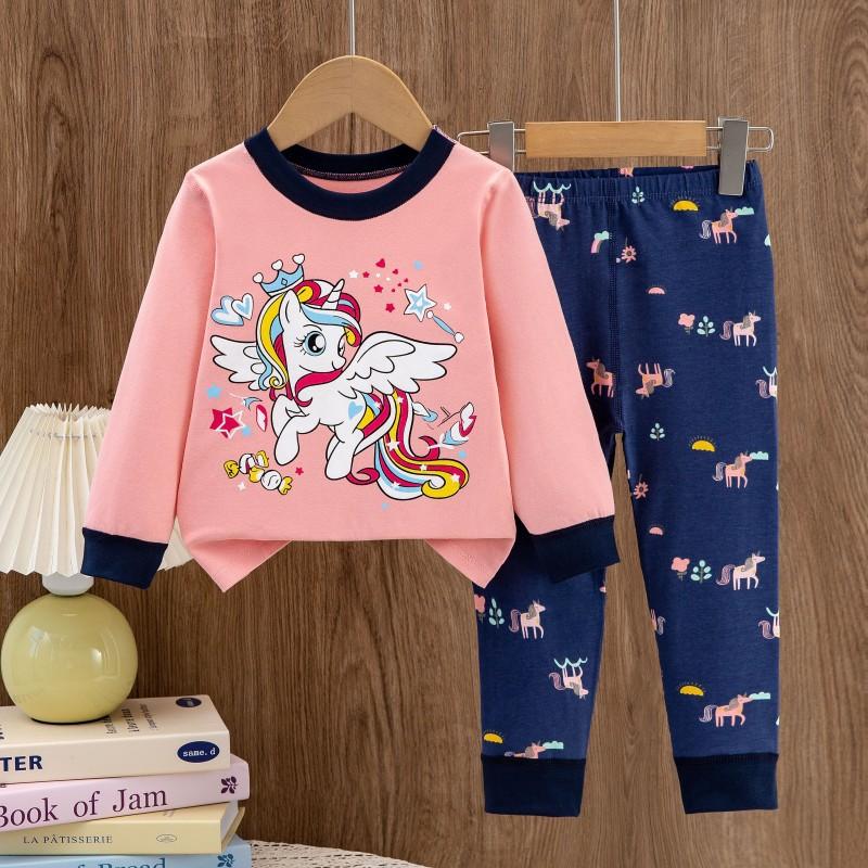 Pijamas Nuevos 2025 para Niños y Niñas Primavera y Otoño Manga Larga Algodón Puro Conjunto Ropa de Casa Estampada para Niños Pantalones Largos de Dibujos Animados
