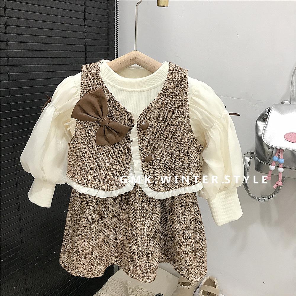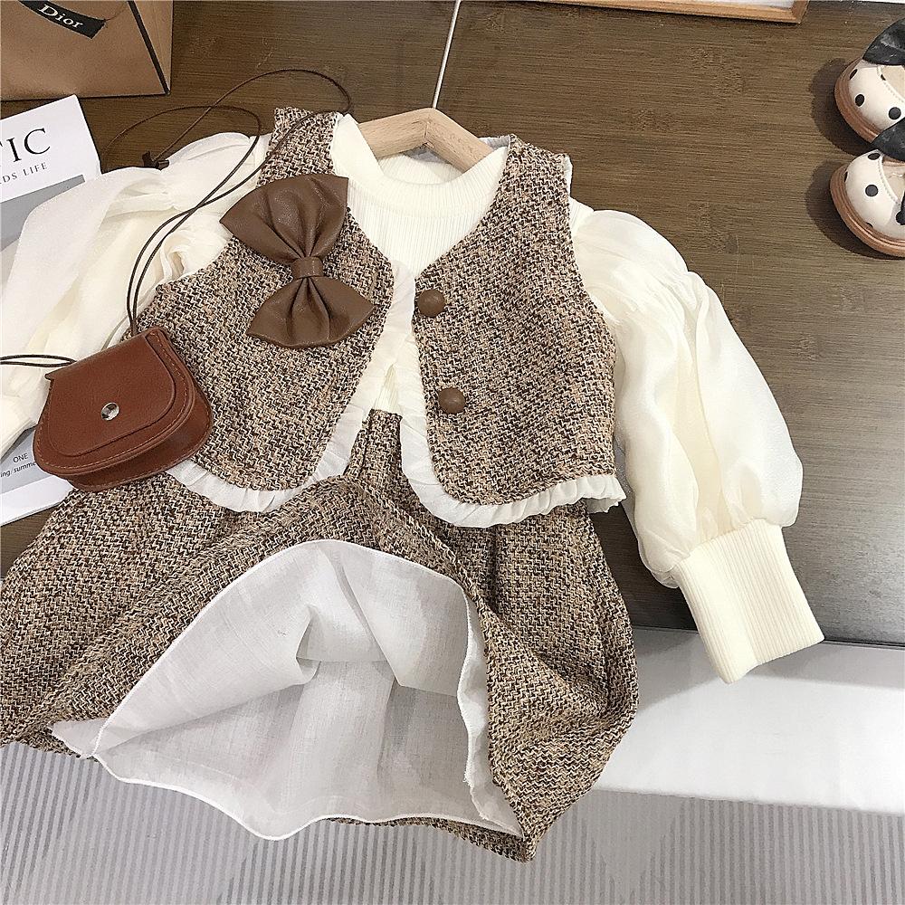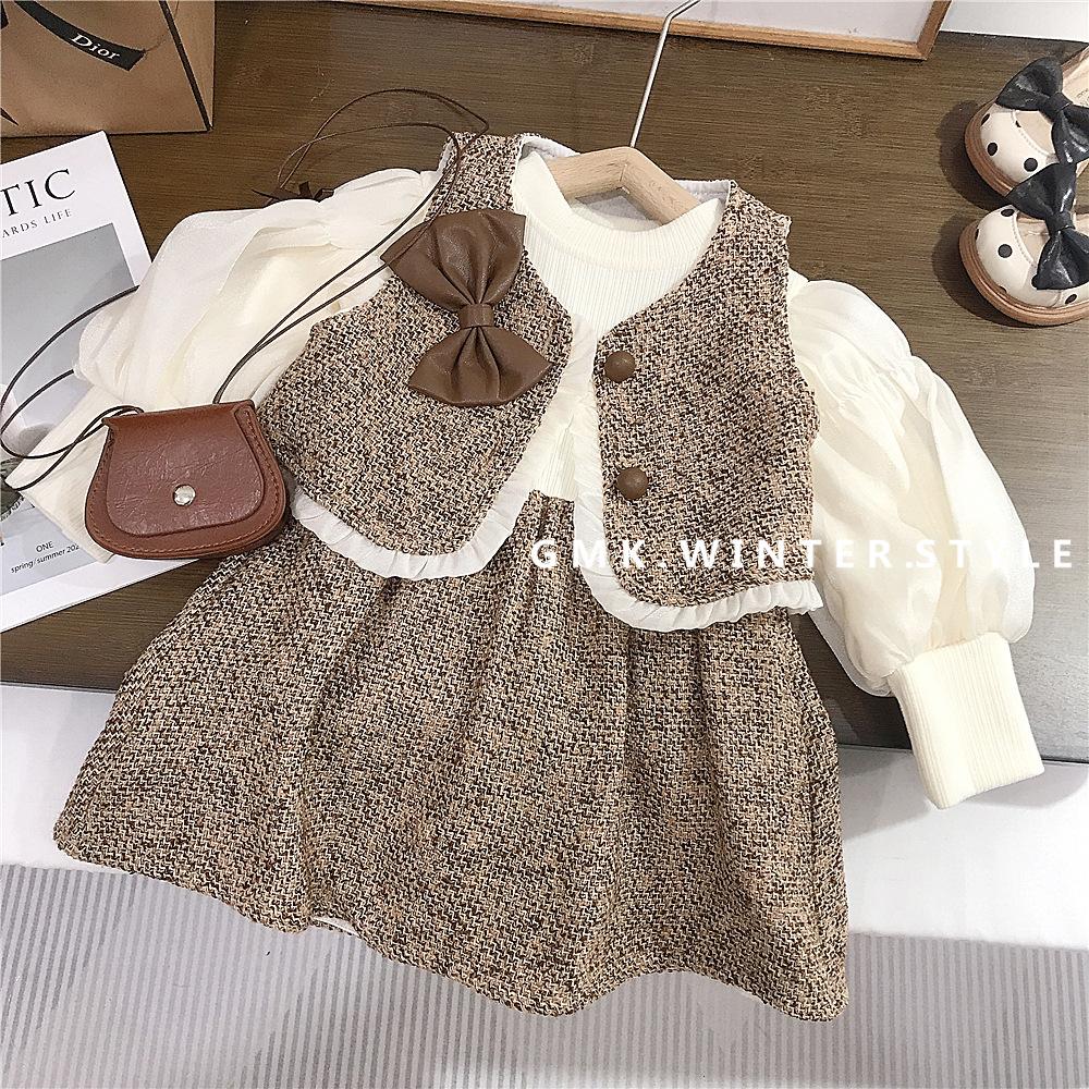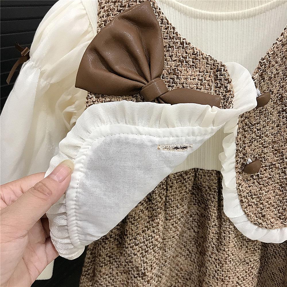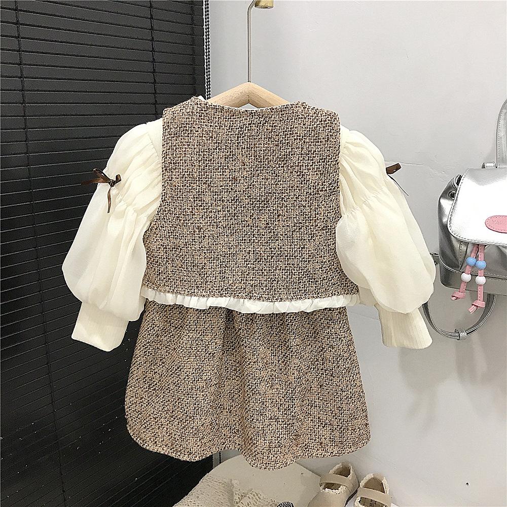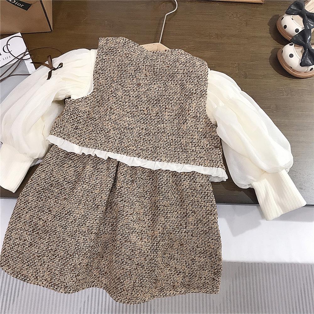Vestido de Niña Primavera y Otoño Nuevo Ropa de Otoño para Niños Conjunto Estilo Pequeño Fragante Vestido de Princesa Comercio Exterior