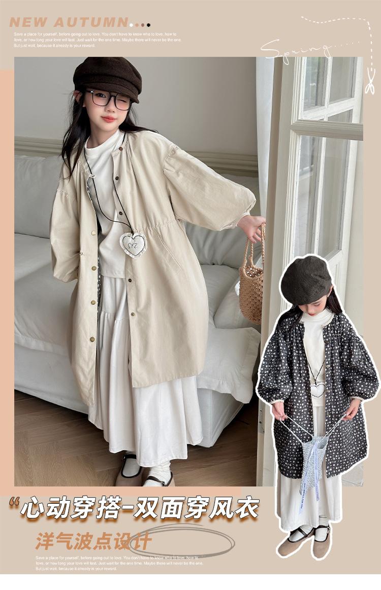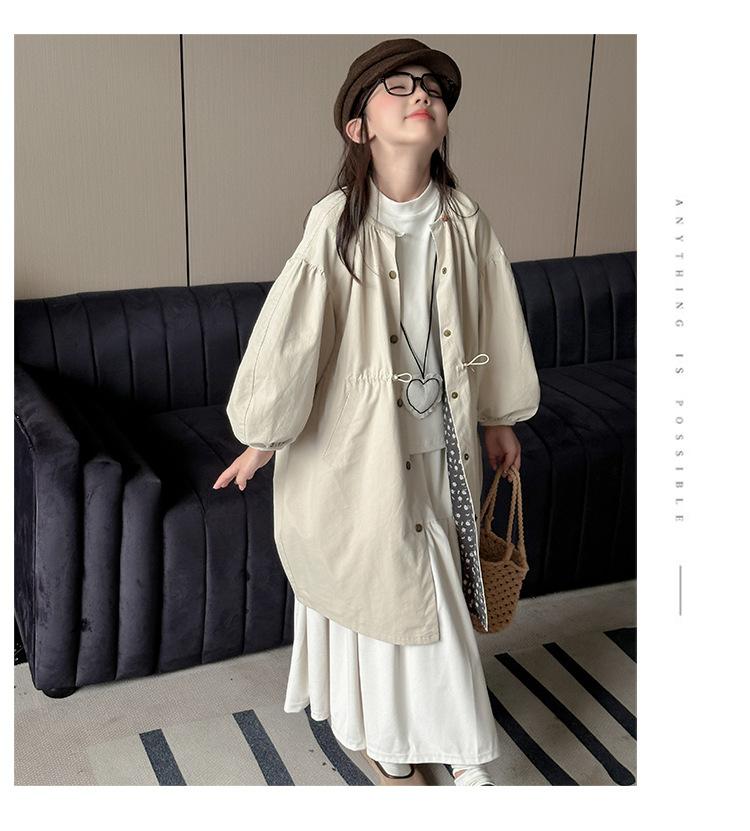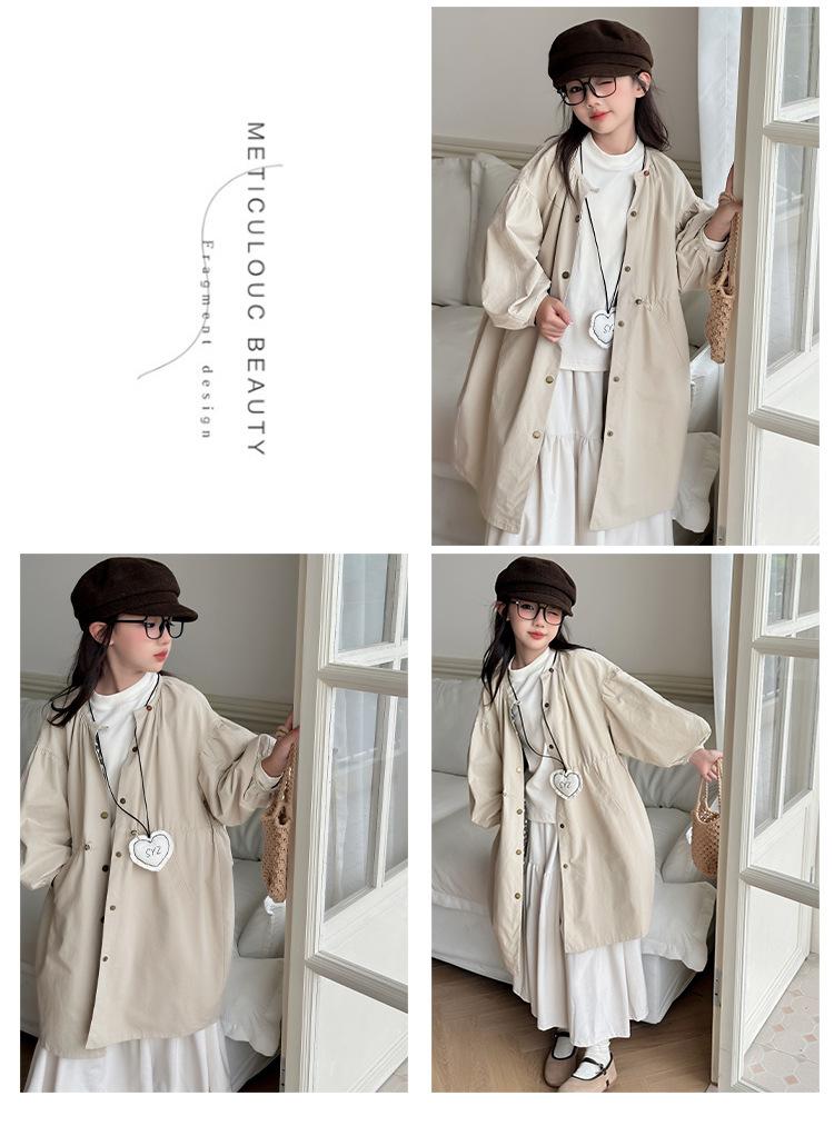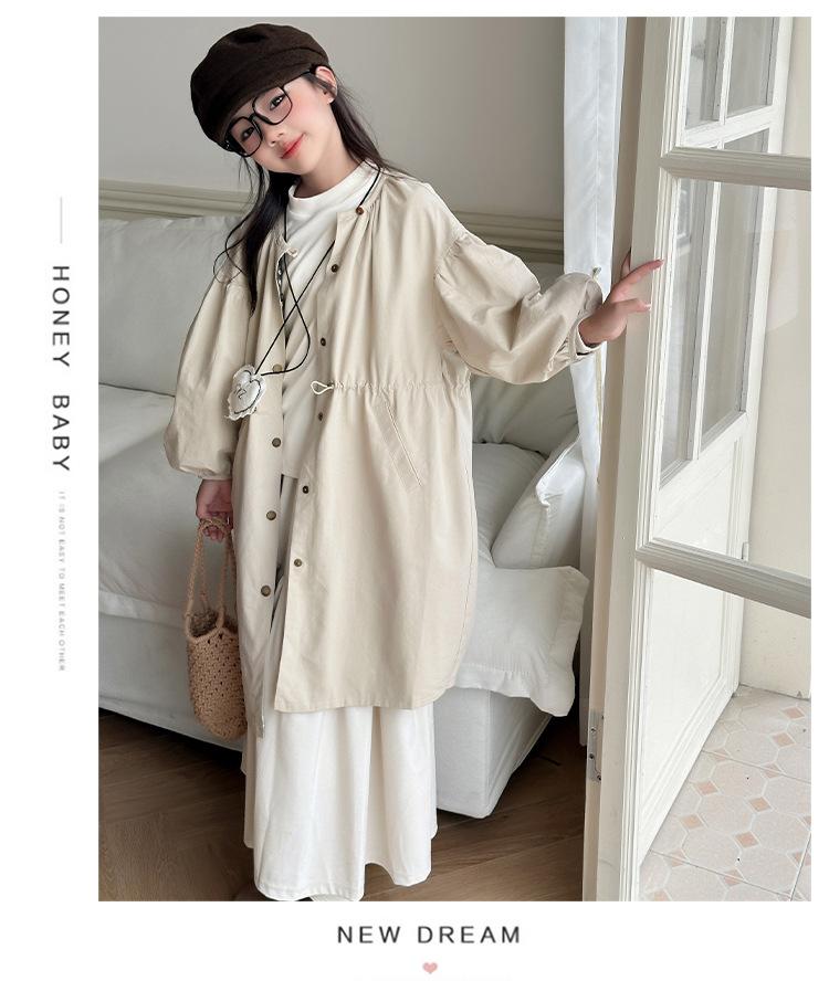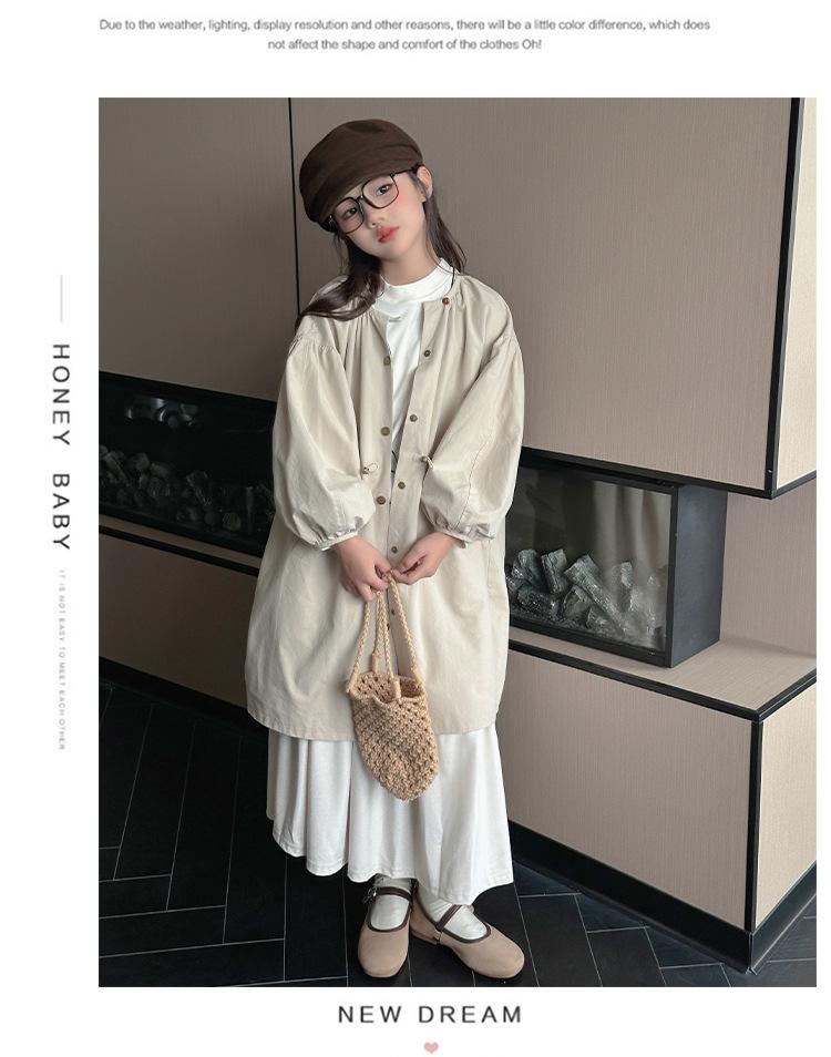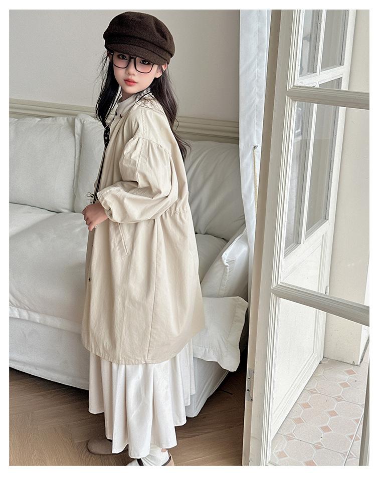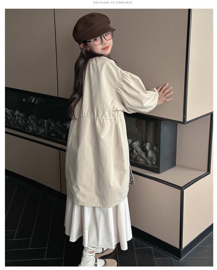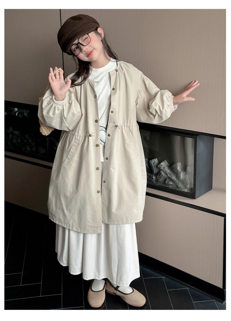 Abrigo trench para niñas estilo primavera y otoño 2025 nuevo otoño para niños de longitud media doble vista estilo coreano ropa exterior de otoño para niñas grandes