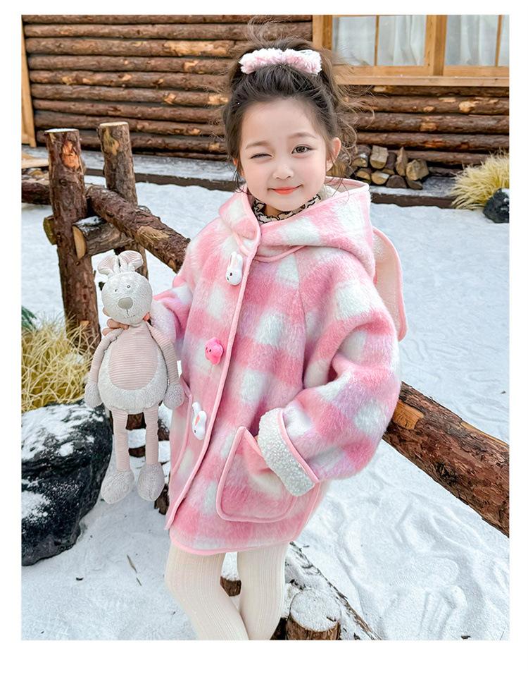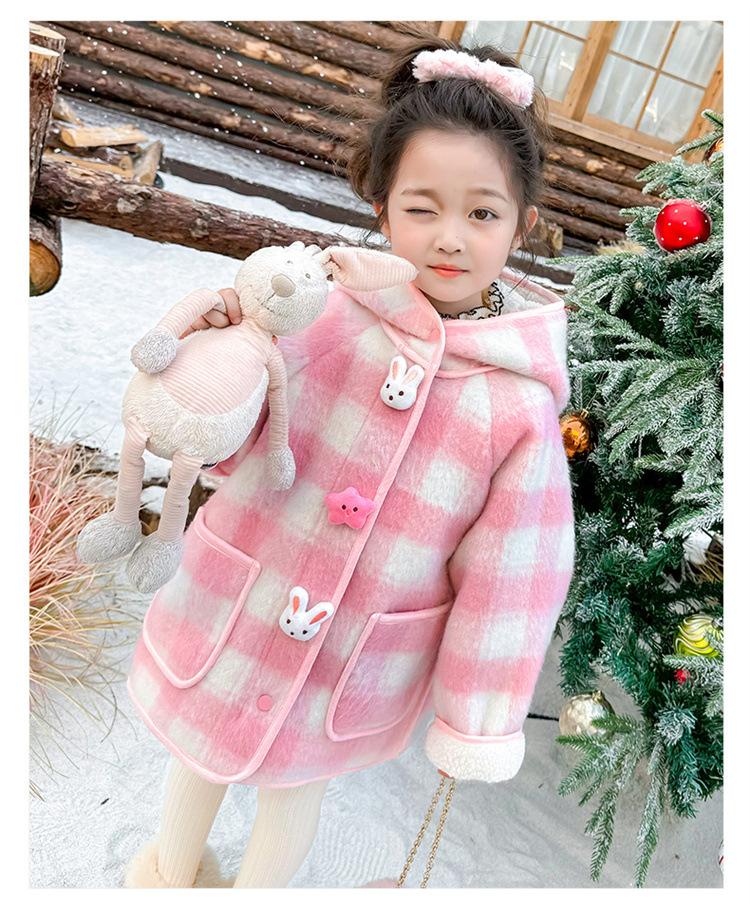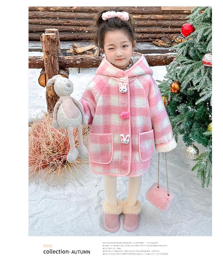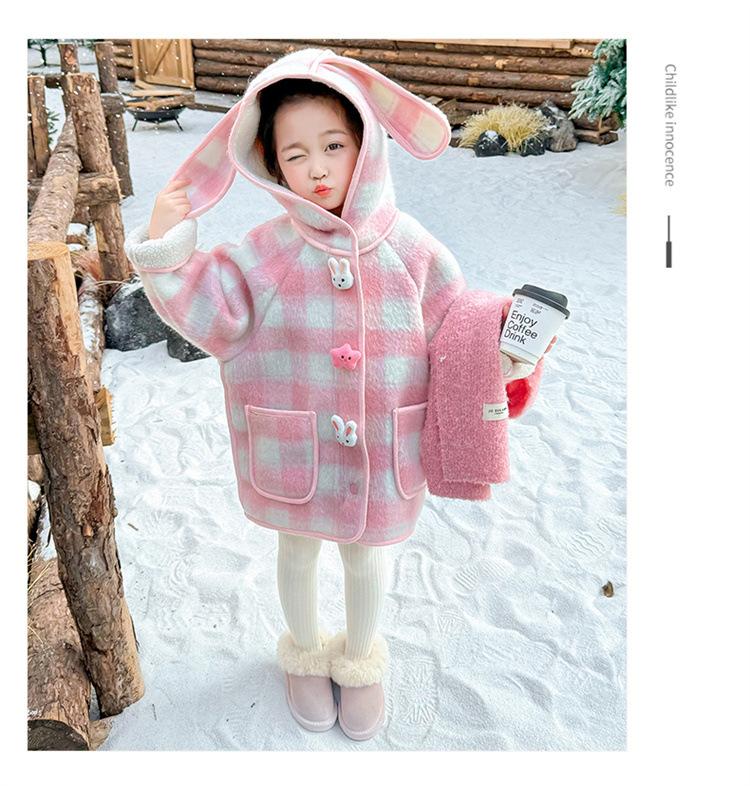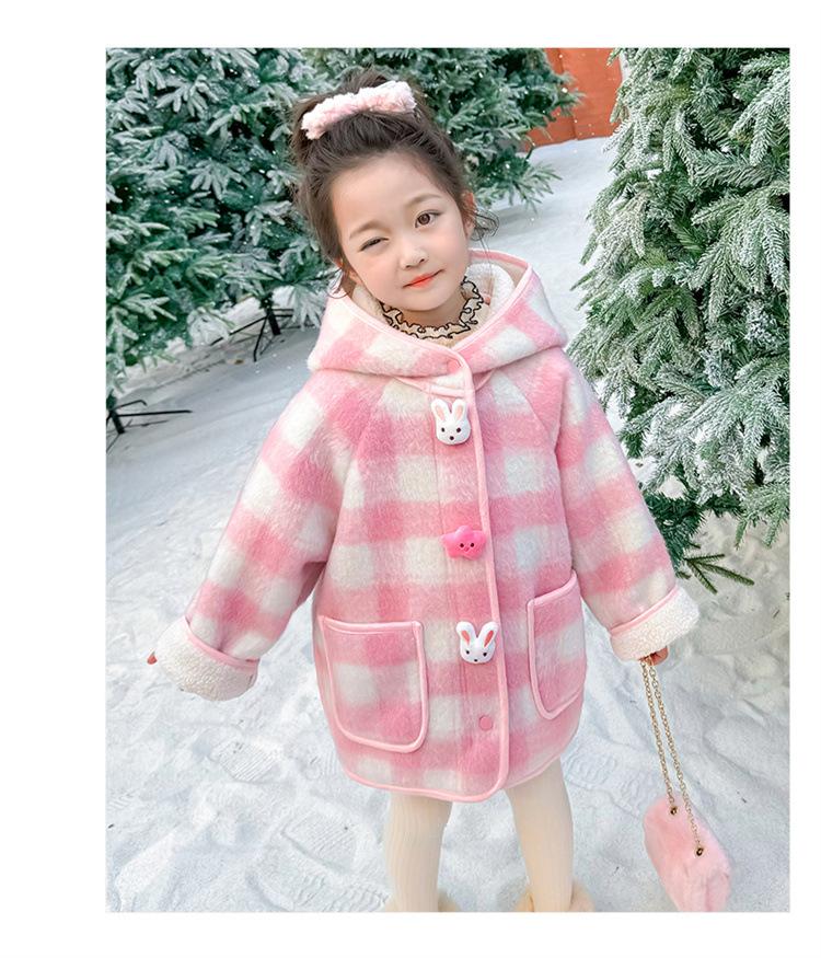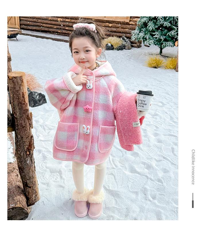 Abrigo de Lana para Niñas Otoño e Invierno 2025 Nuevo Abrigo Infantil Grueso a Cuadros Ropa Exterior de Moda para Bebé Ropa Exterior para Niña