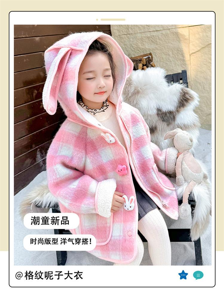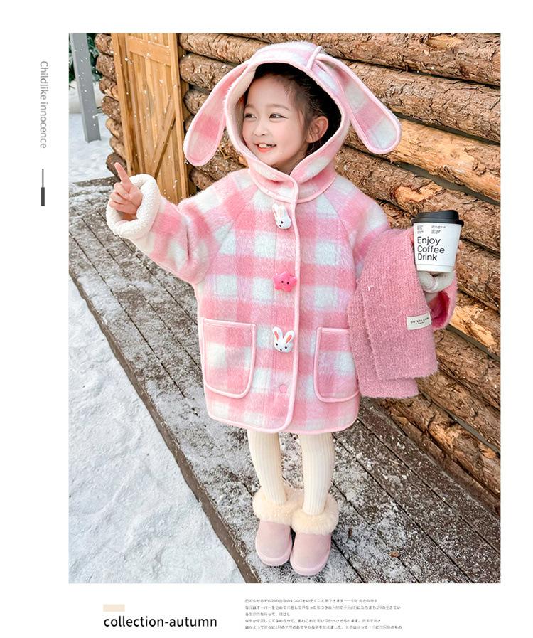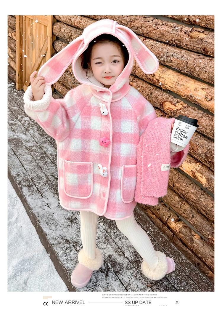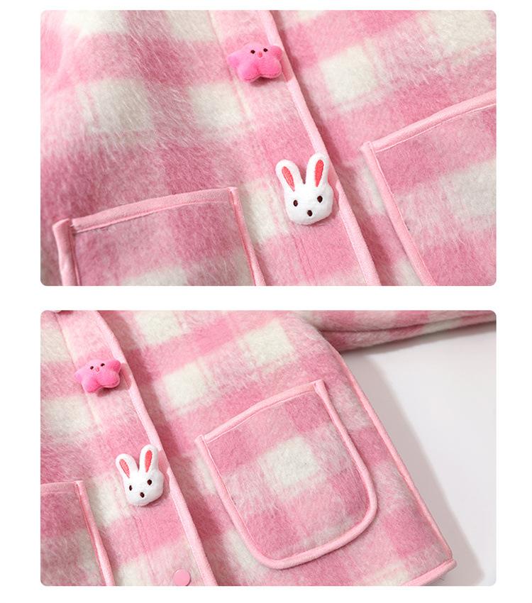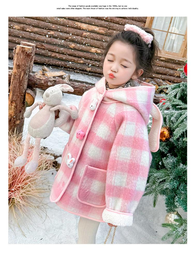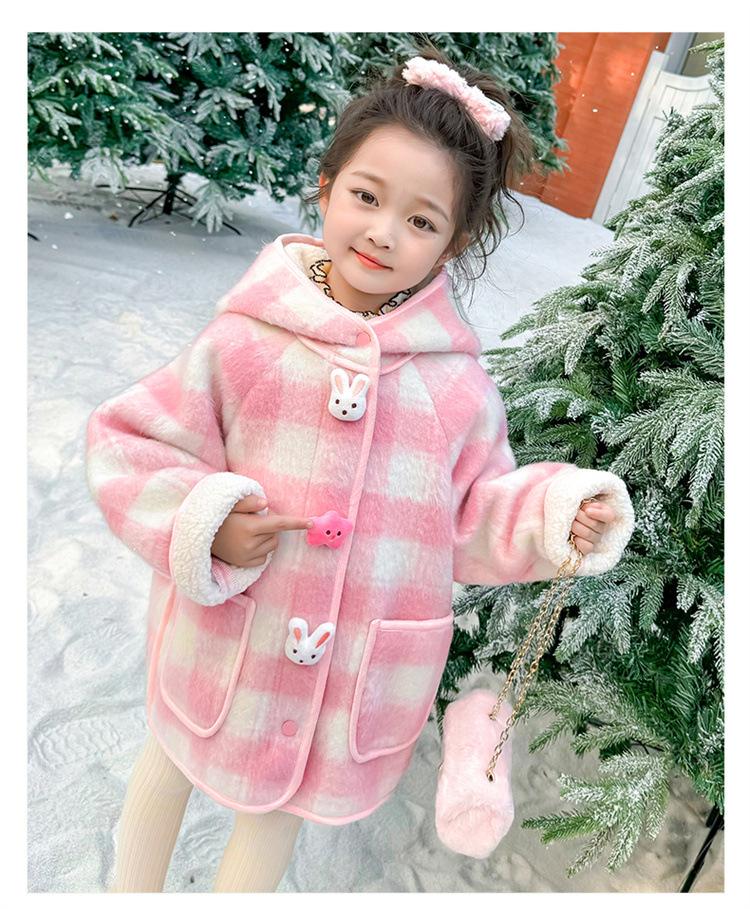 Abrigo de Lana para Niñas Otoño e Invierno 2025 Nuevo Abrigo Infantil Grueso a Cuadros Ropa Exterior de Moda para Bebé Ropa Exterior para Niña