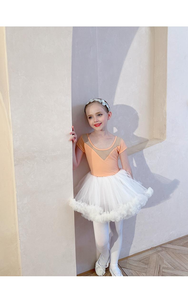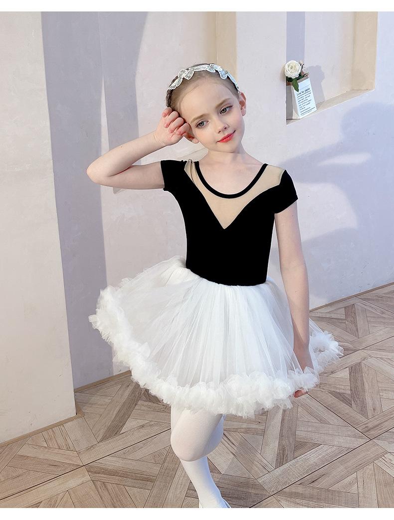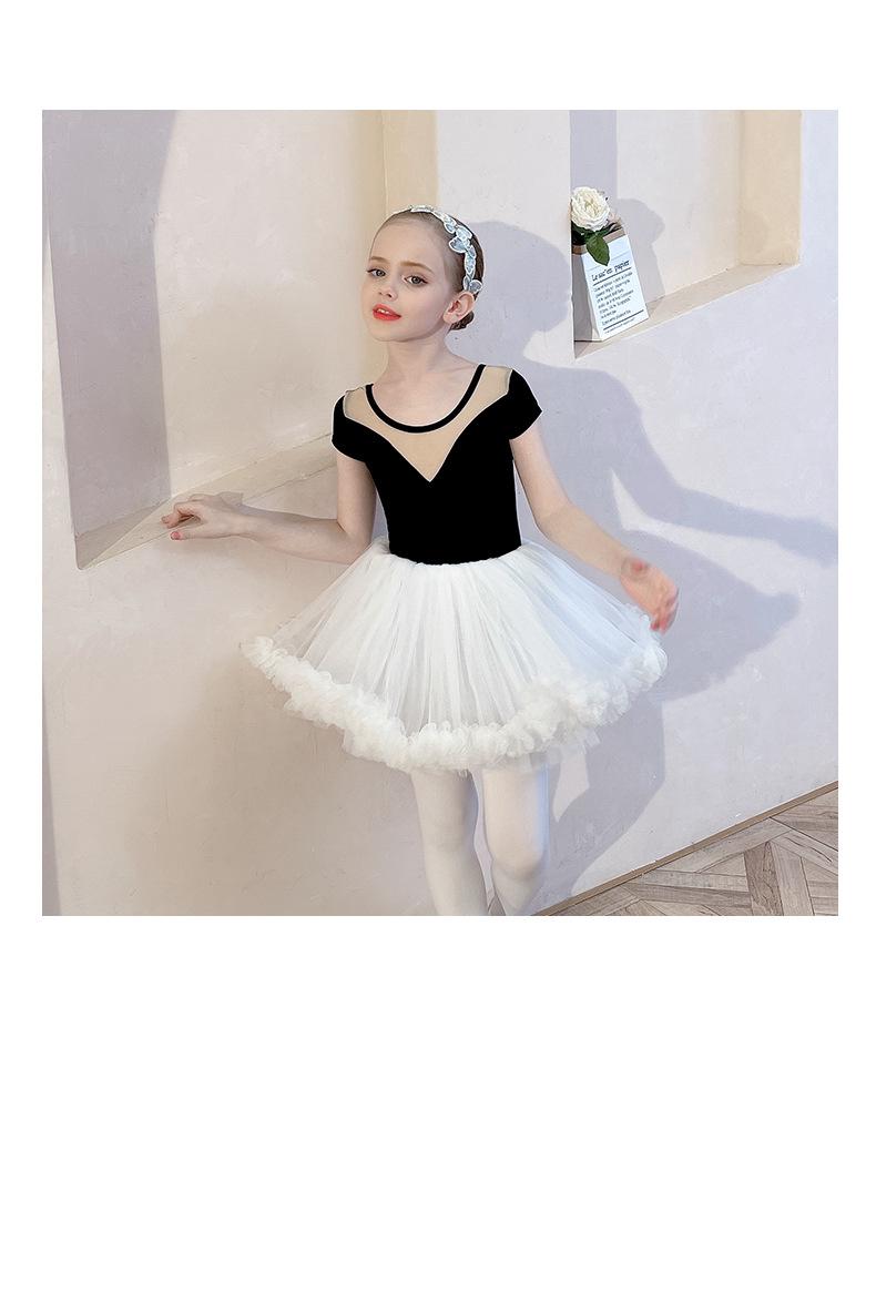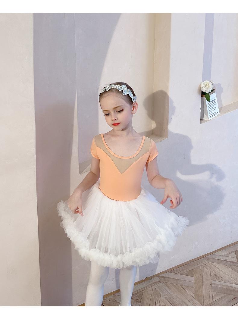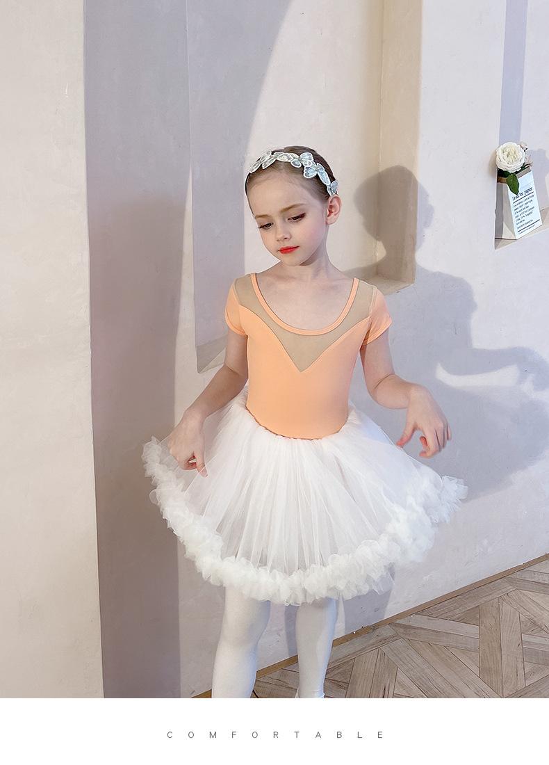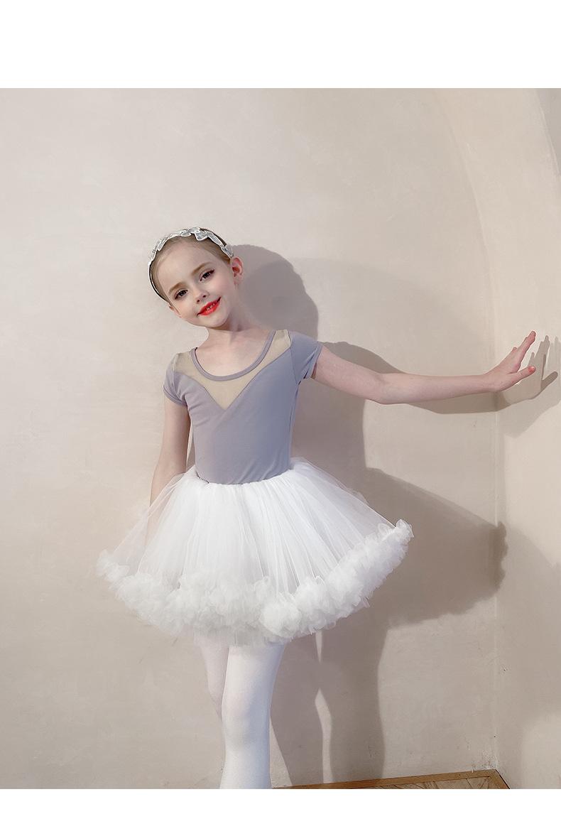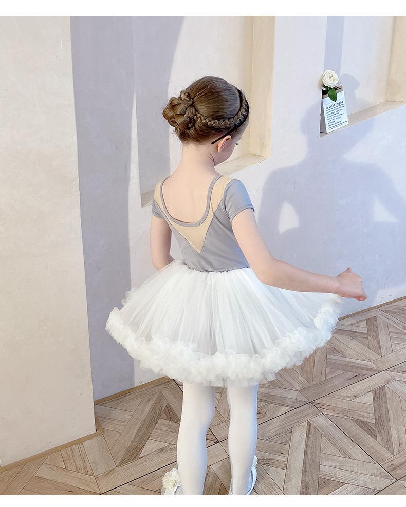 Ropa de Danza Infantil Verano Manga Corta Ropa de Práctica para Niñas Conjunto de Danza China Falda de Ballet Falda Blanca Media Falda Falda de Tul