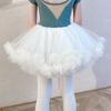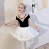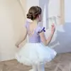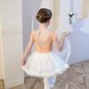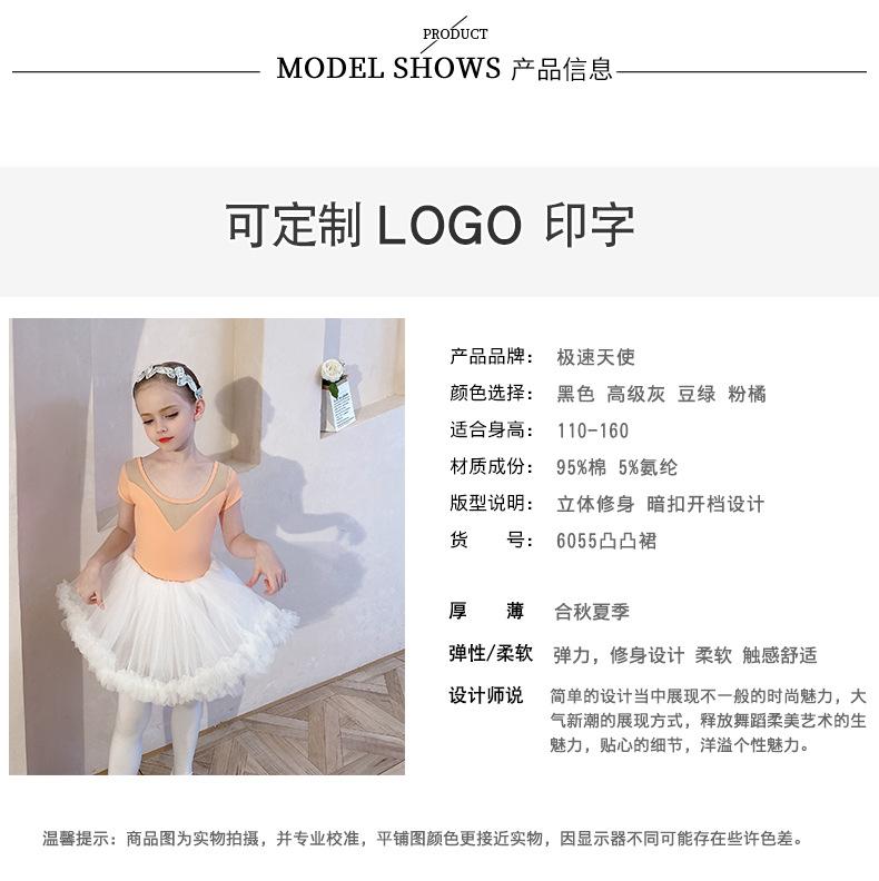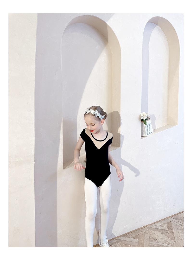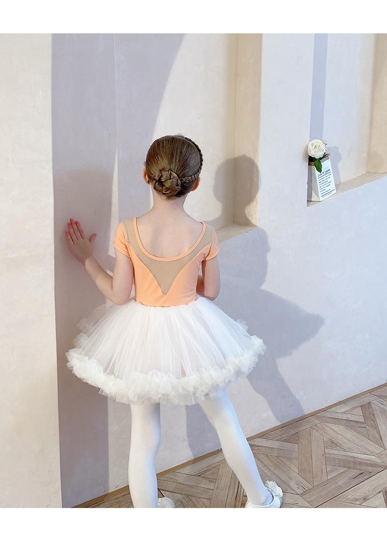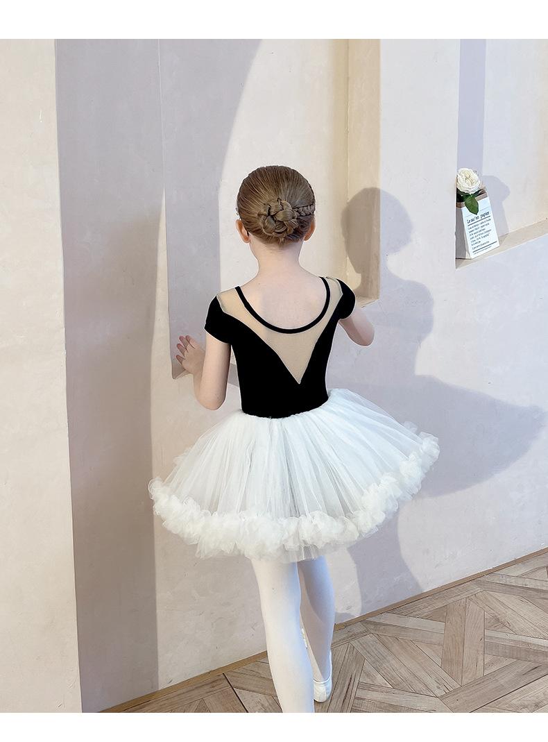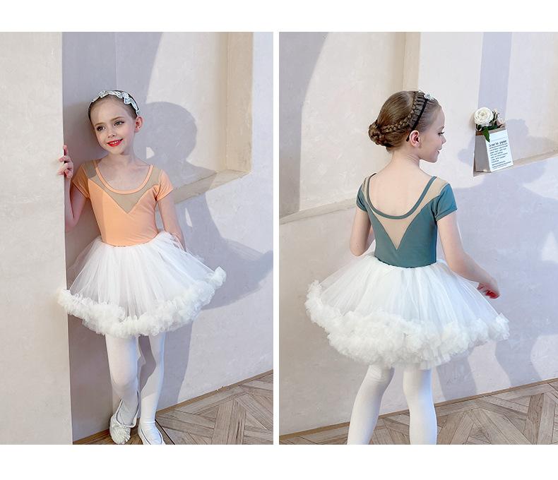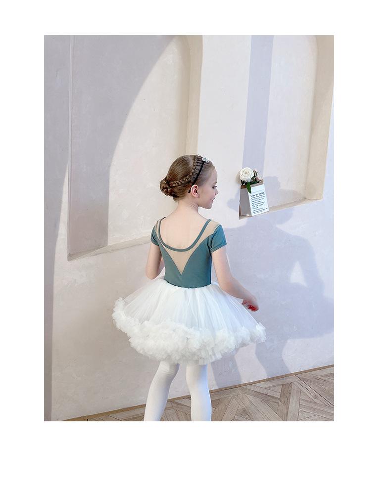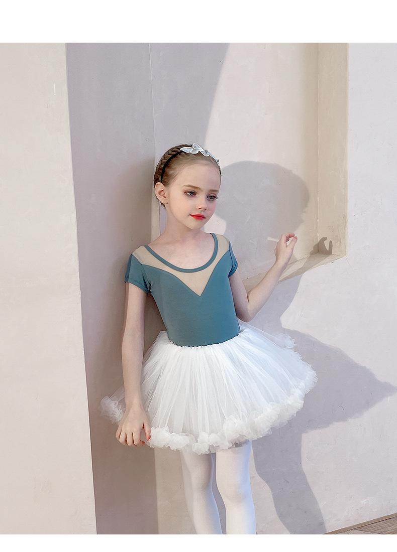 Ropa de Danza Infantil Verano Manga Corta Ropa de Práctica para Niñas Conjunto de Danza China Falda de Ballet Falda Blanca Media Falda Falda de Tul