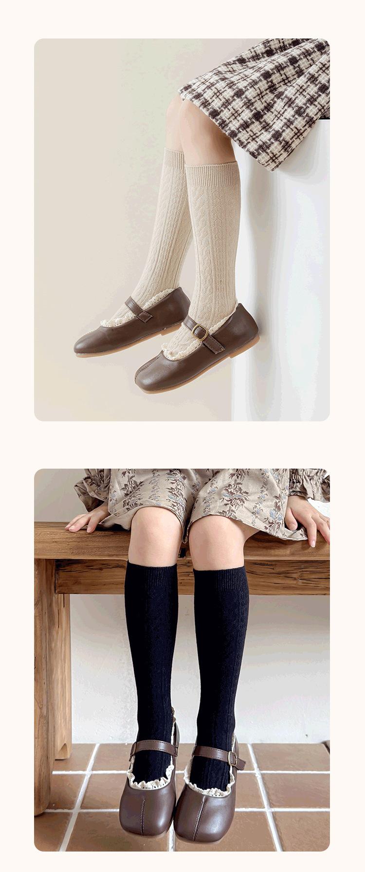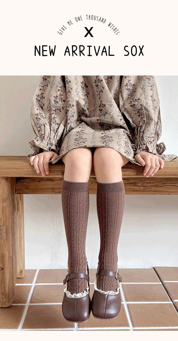 Calcetines para niños otoño nuevos calcetines media pantorrilla versión coreana color sólido punto de cable calcetines altos hasta la rodilla de rizo para niñas calcetines de algodón para pantorrilla al por mayor