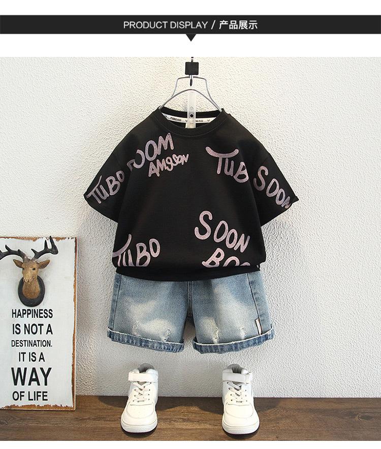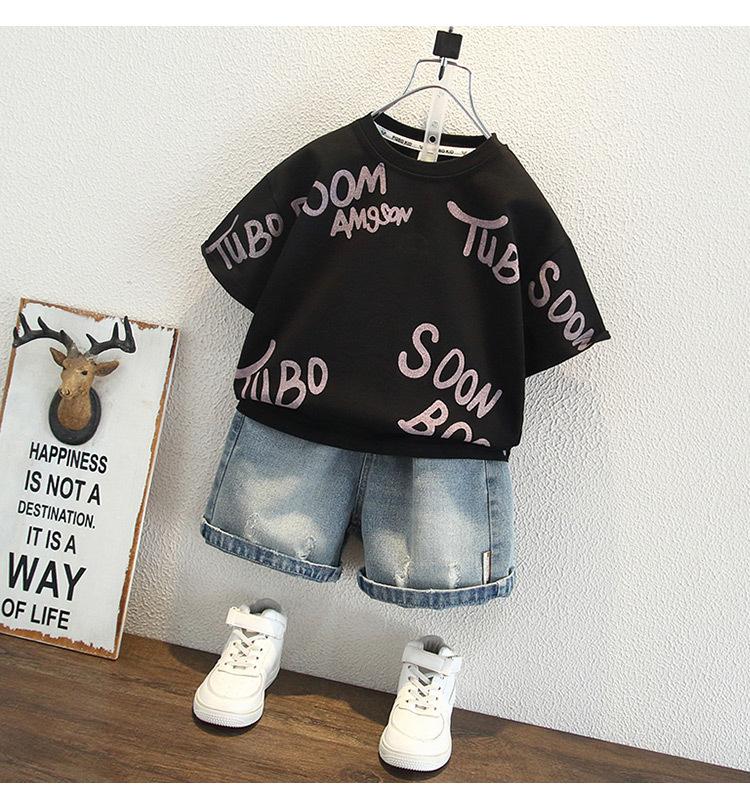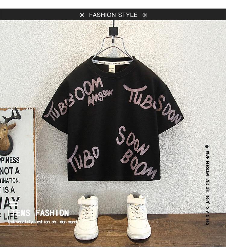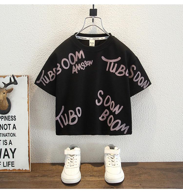 8108 Camiseta de Verano de Manga Corta para Niños 2025 Nueva Camiseta Coreana para Niños Guapos Camiseta de Moda de Verano para Niños T