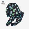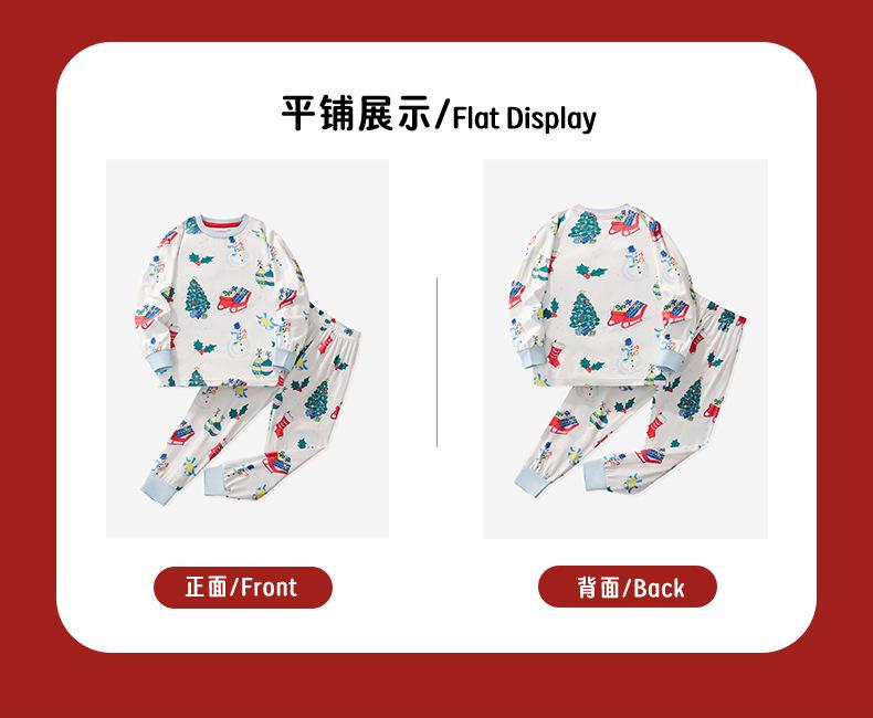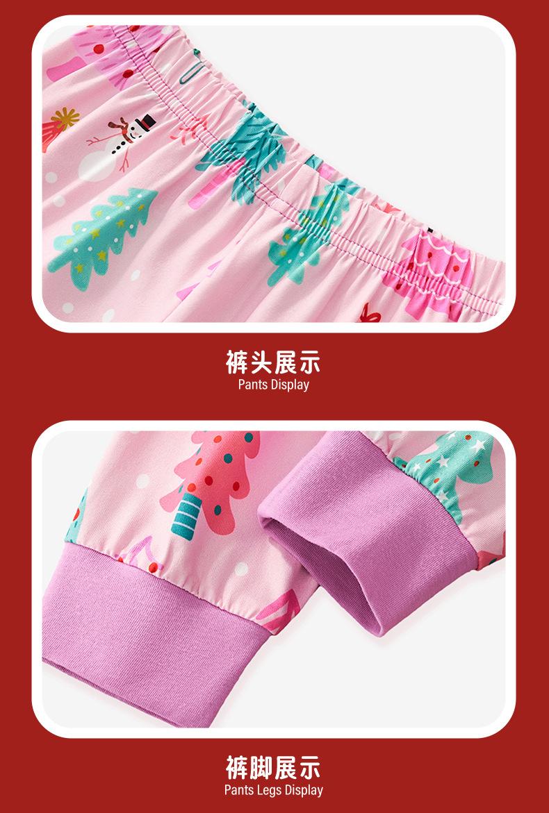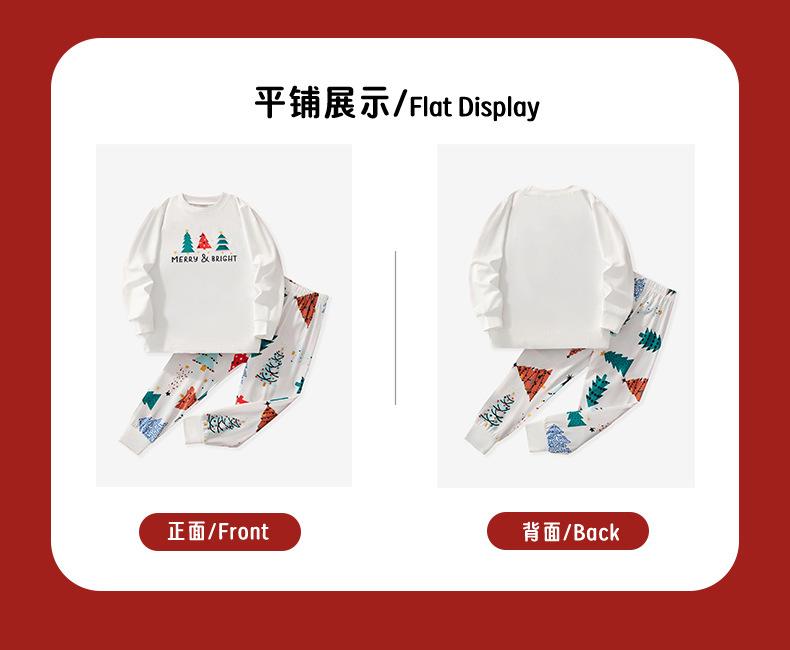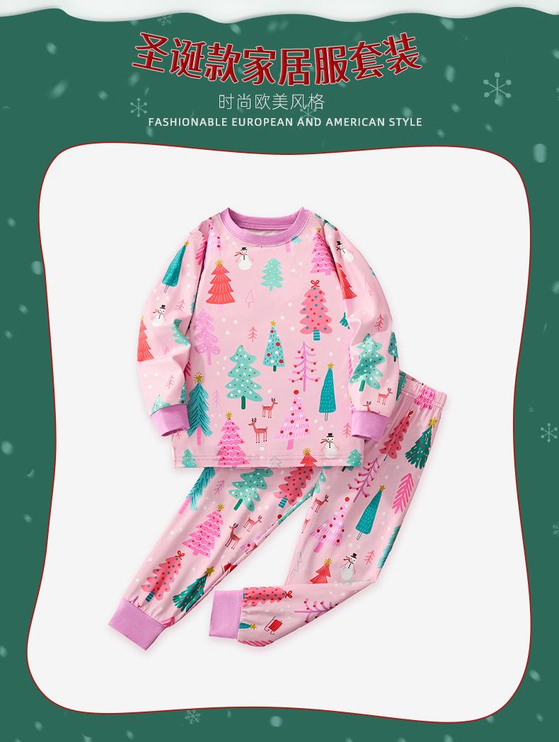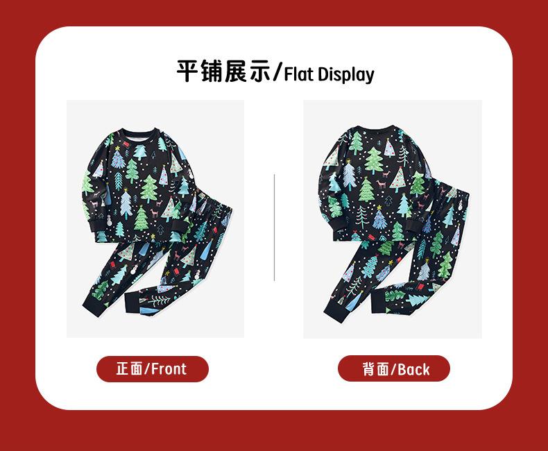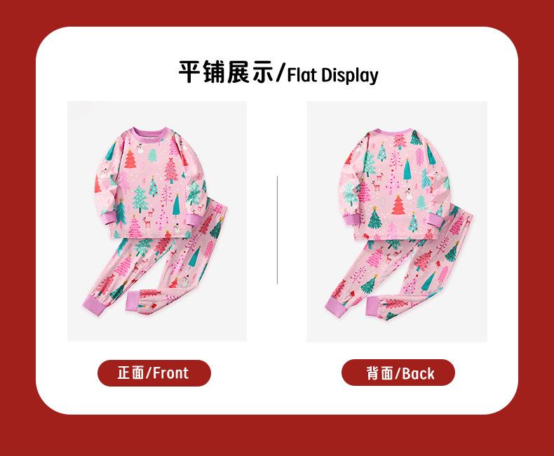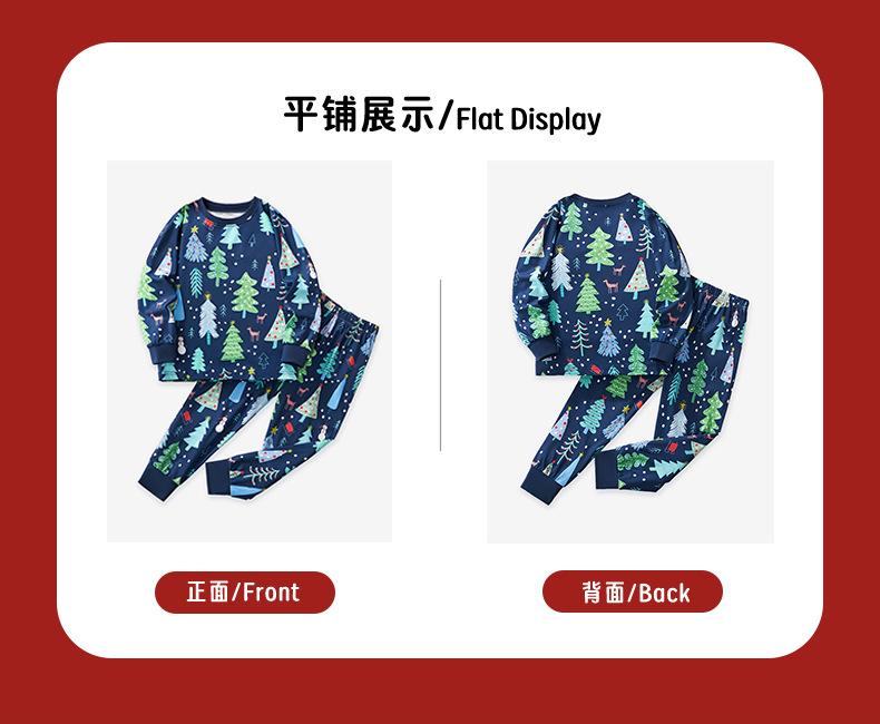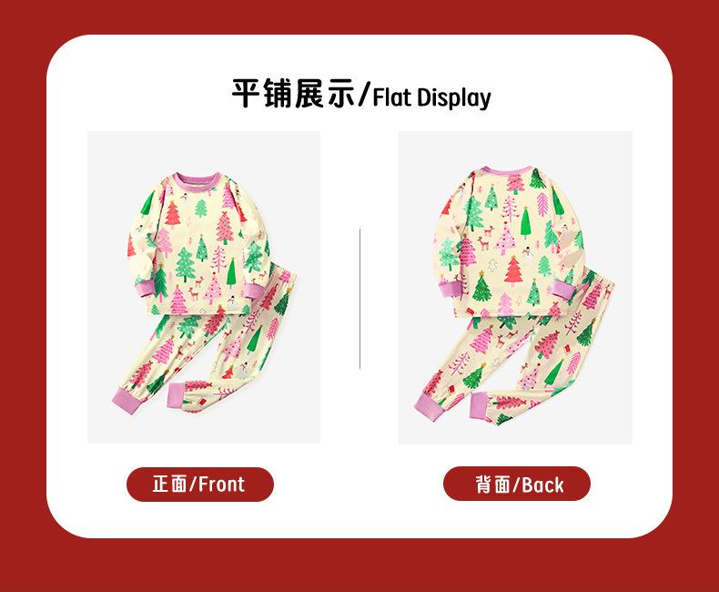 Ropa Infantil Transfronteriza de Otoño e Invierno Conjunto de Manga Larga y Pantalón Largo de Navidad con Estampado de Árbol de Navidad de Dibujos Animados Pijama para el Hogar de Seda de Leche