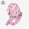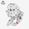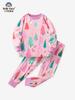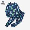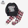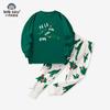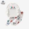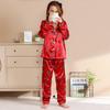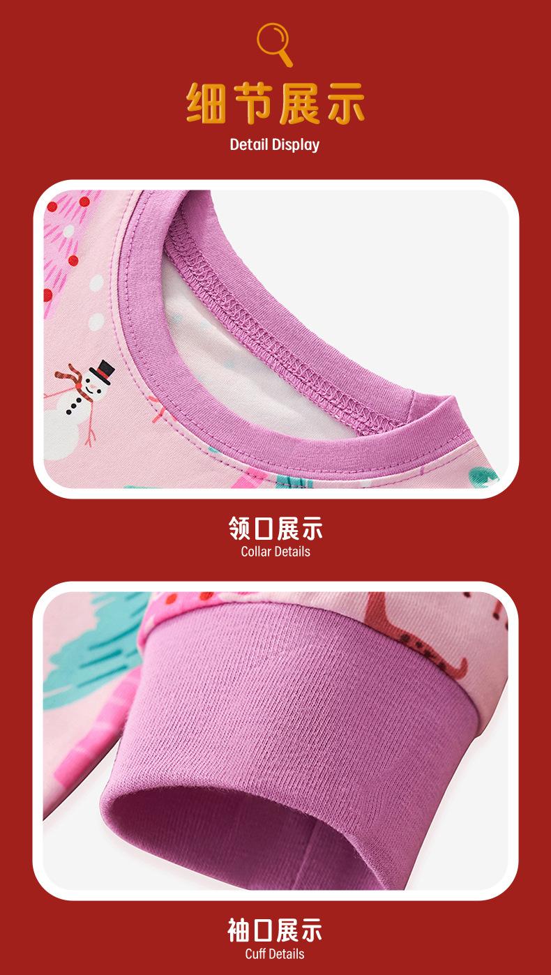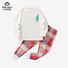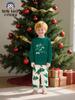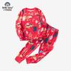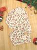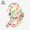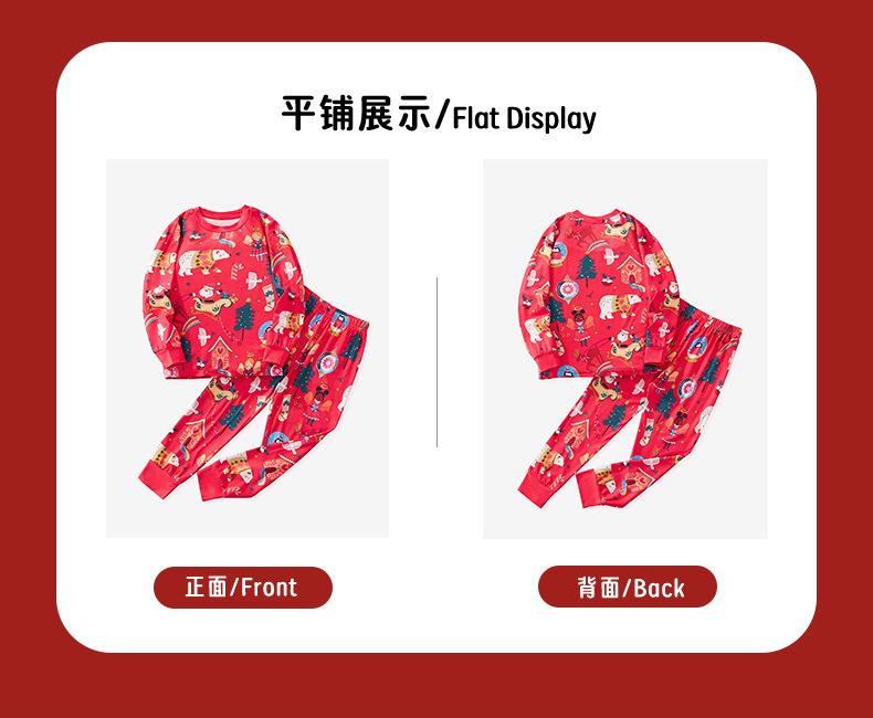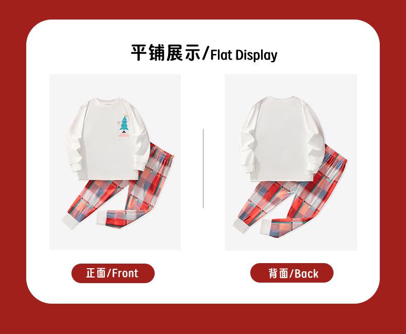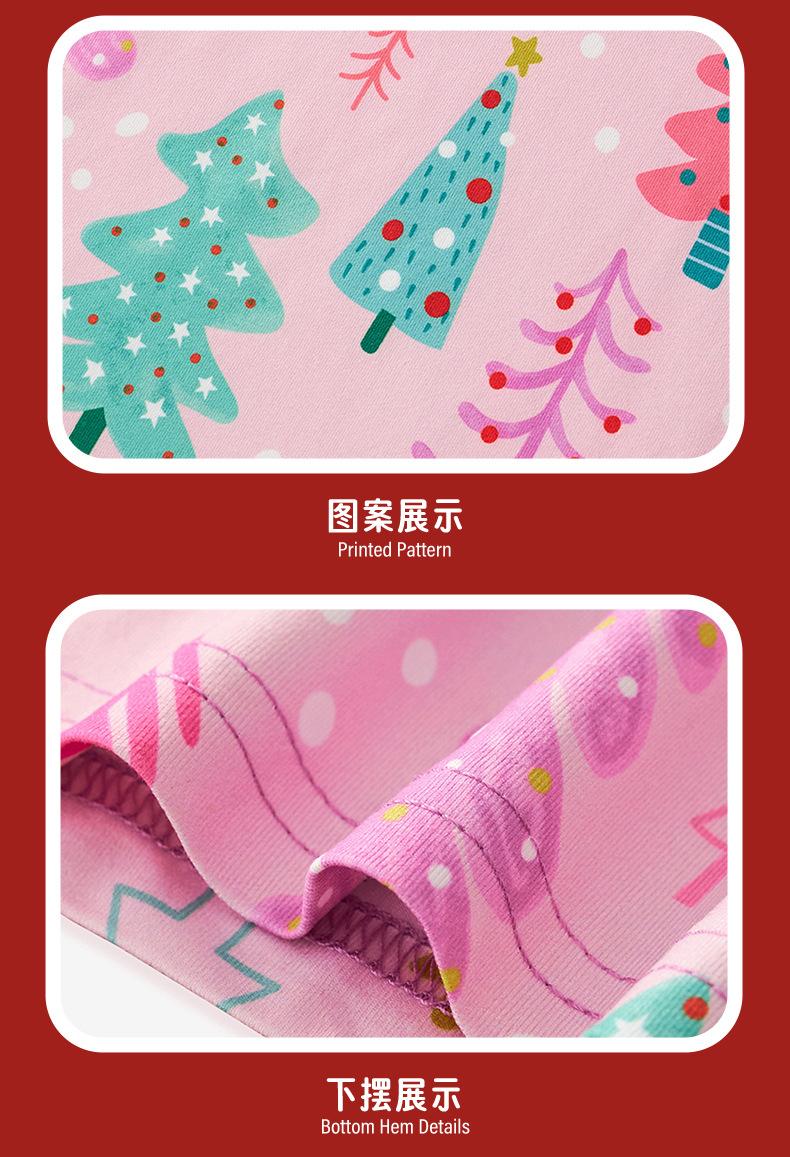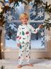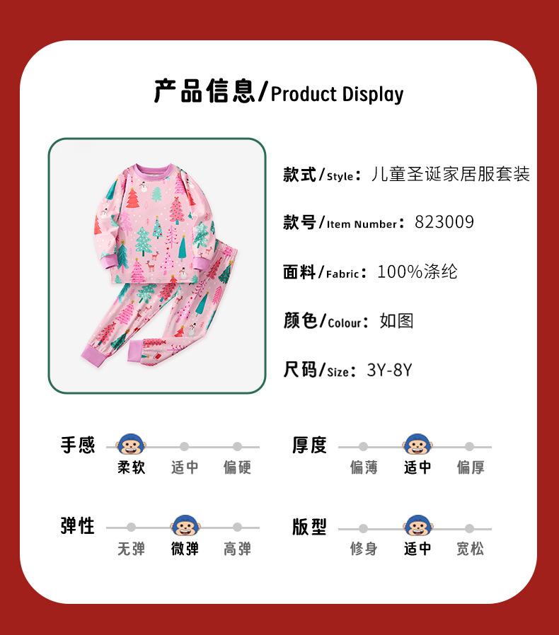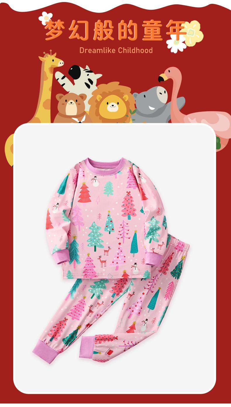 Ropa Infantil Transfronteriza de Otoño e Invierno Conjunto de Manga Larga y Pantalón Largo de Navidad con Estampado de Árbol de Navidad de Dibujos Animados Pijama para el Hogar de Seda de Leche