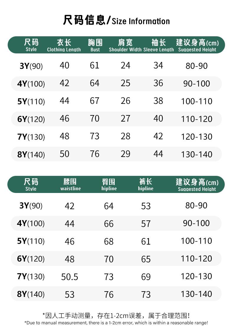 3Y(90cm), 4Y(100cm), 5Y(110cm), 6Y(120cm), 7Y(130cm), 8Y(140cm)