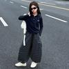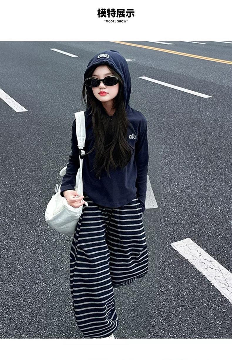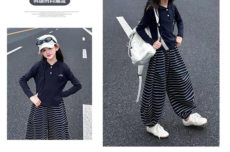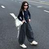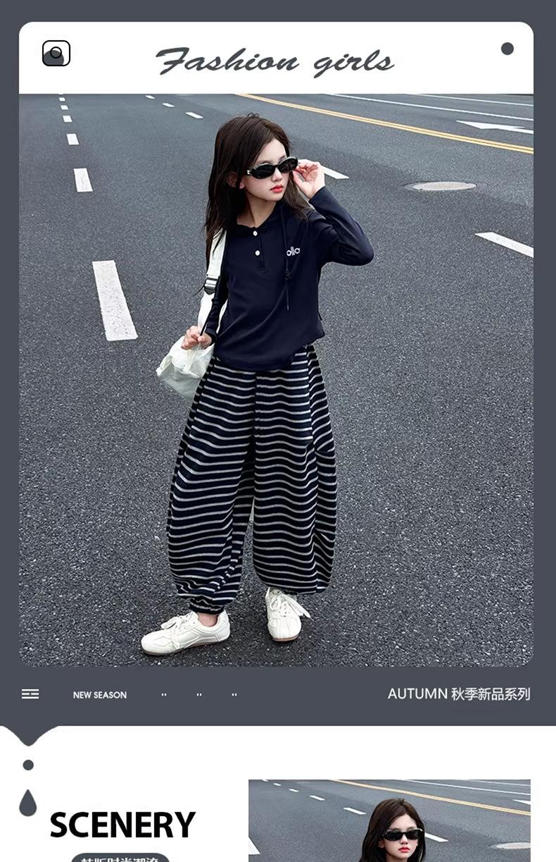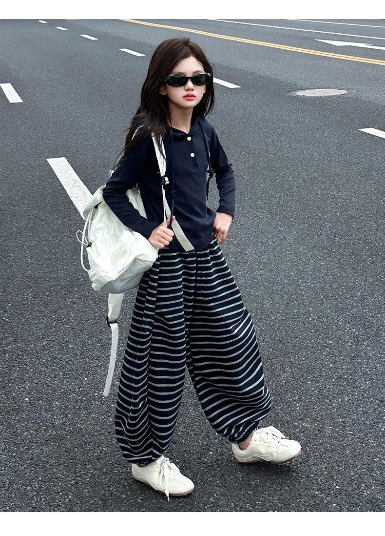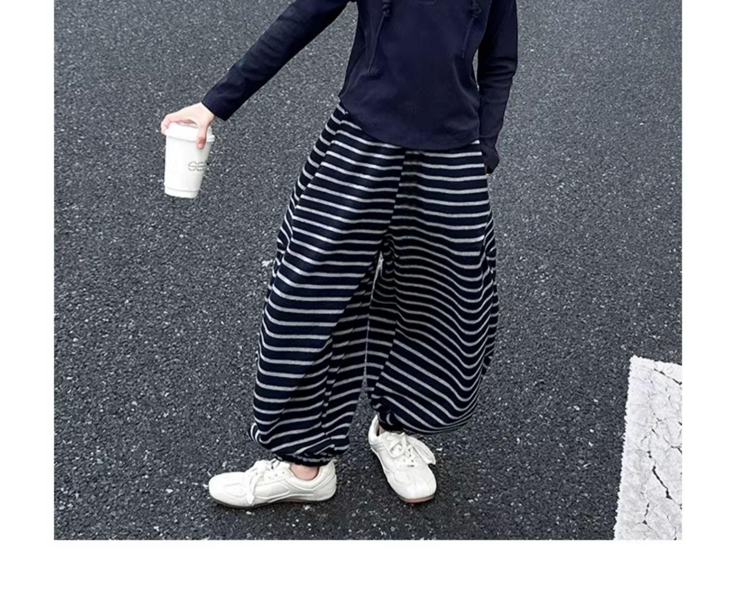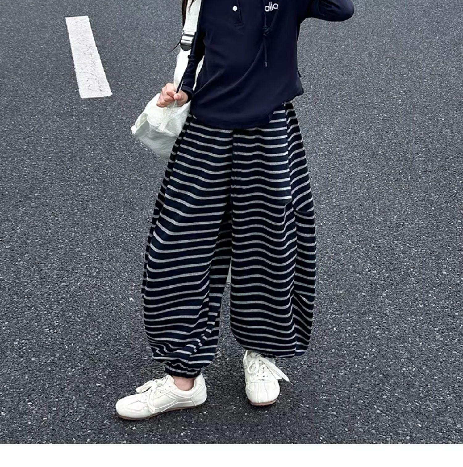 Pantalones de niña Pantalones casuales de estudiante 2025 Nuevo estilo Pantalones bombachos a rayas para niña Moda de otoño Estilo de primavera y otoño Pantalones de pierna ancha