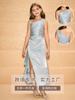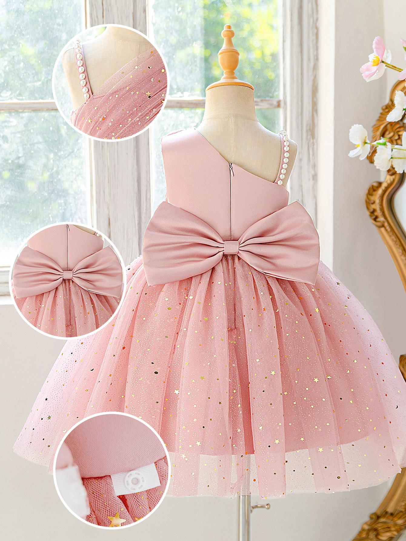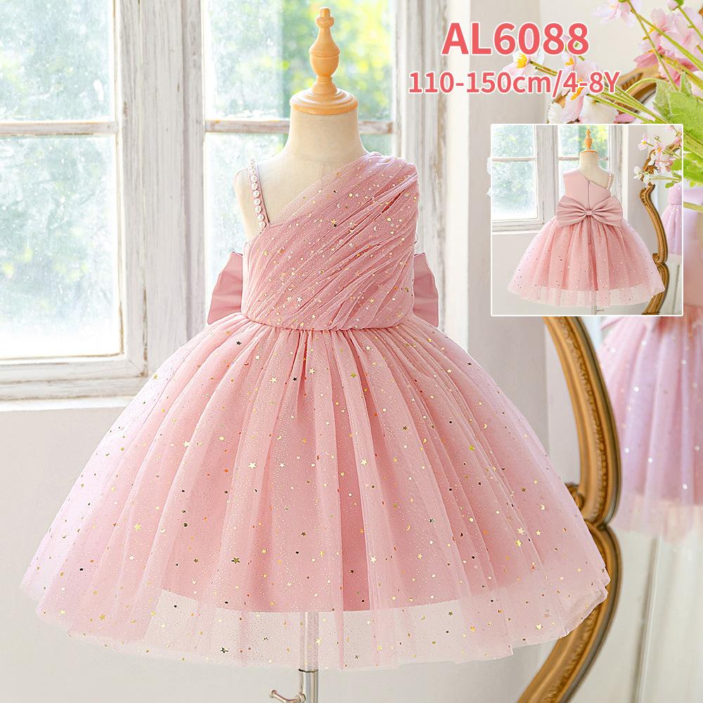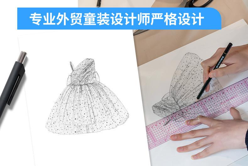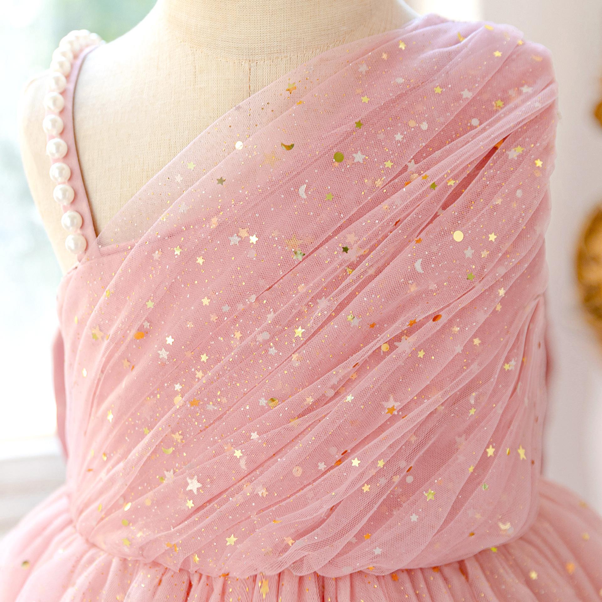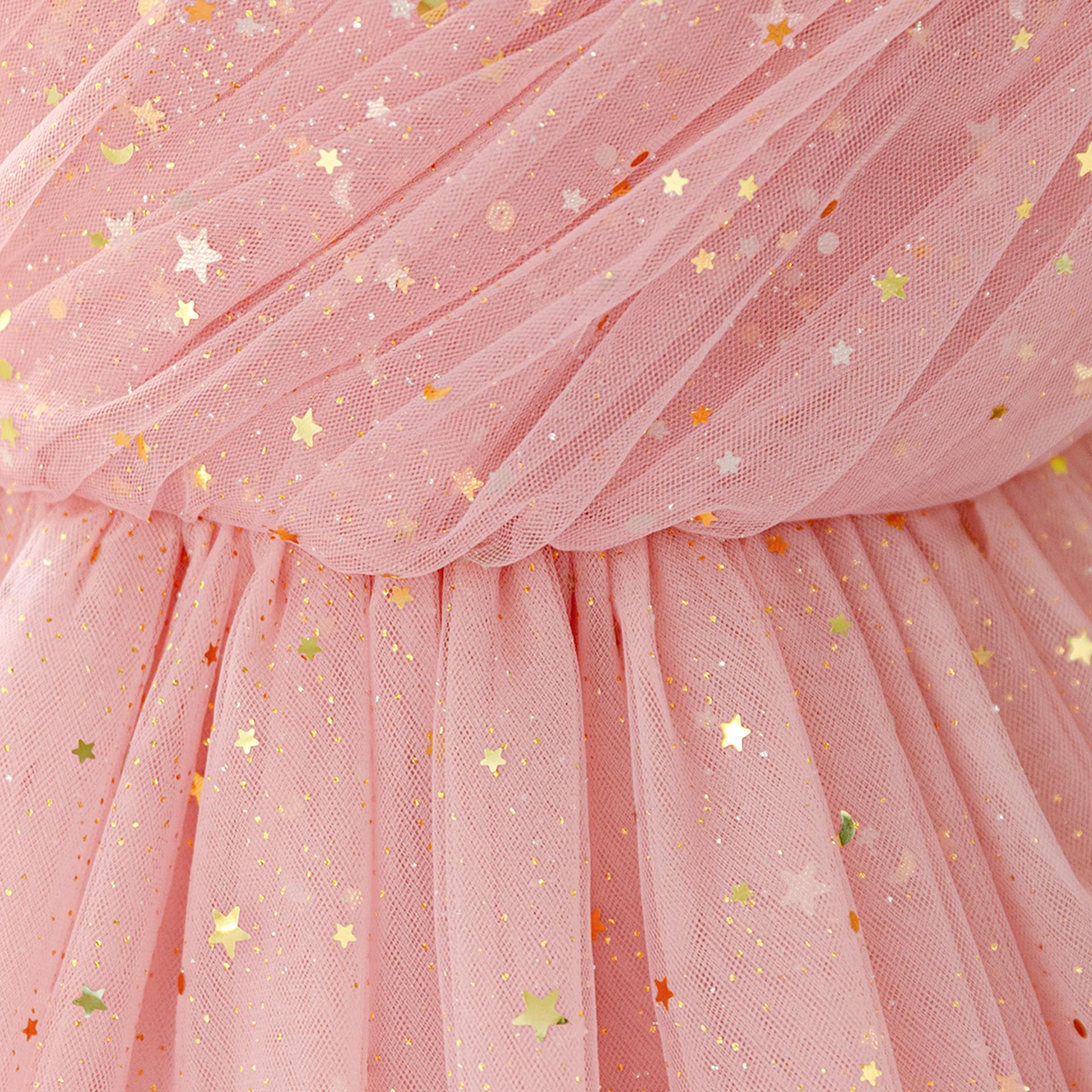 Nuevo Vestido de Noche para Niños Europeo y Americano de un Hombro con Falda Abullonada de Malla Vestido de Princesa con Lentejuelas de Estrella para Niñas Disfraz de Actuación para Vacaciones