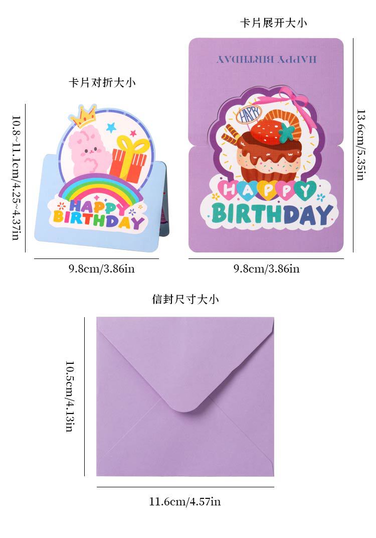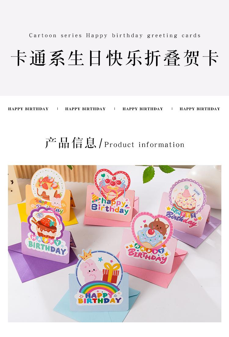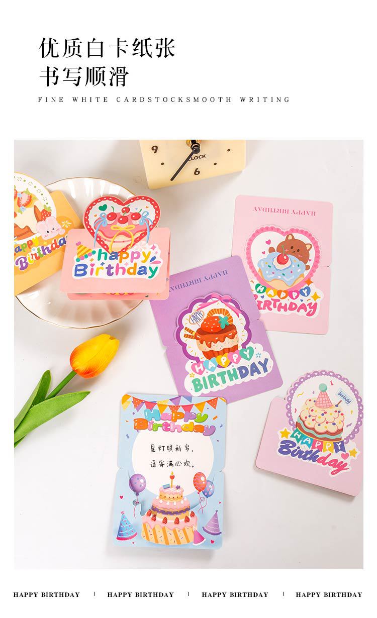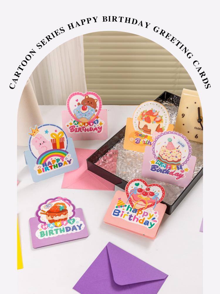 Tarjeta de Felicitación de Cumpleaños de Dibujos Animados Tridimensional Creativa Transfronteriza de Amazon, Tarjeta de Cumpleaños de Bendición para Niños, Juego de Sobres