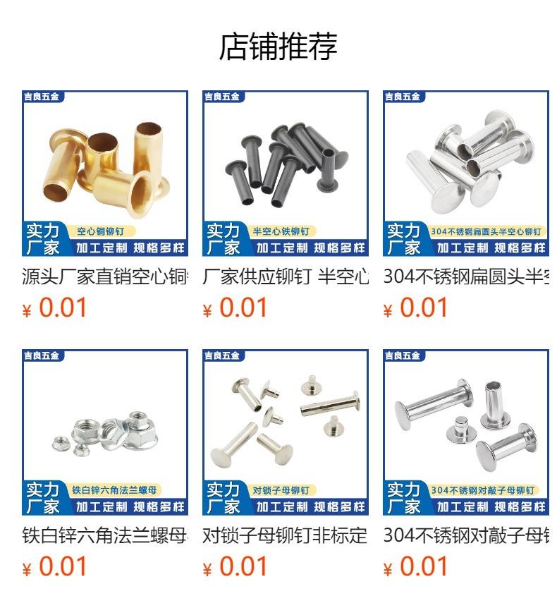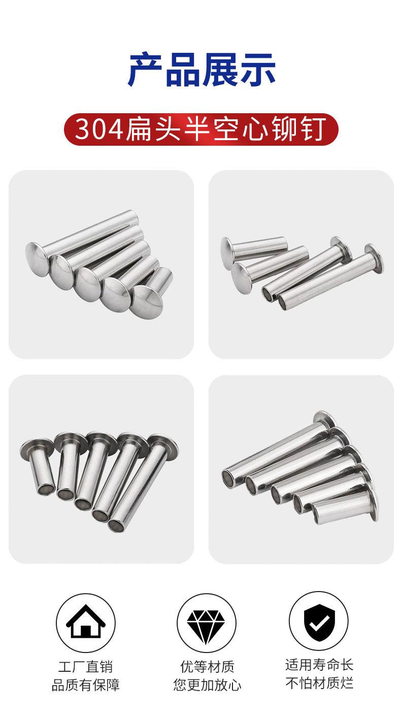 Remache Semihueco de Cabeza Plana de Acero Inoxidable 304 Material General GB Accesorios de Remachado de Clavo Hueco Fabricante Especial
