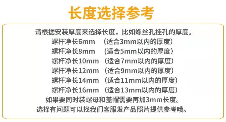 Net exposed length of screw rod 6mm, The net length of screw exposed is 8mm, Net exposed length of screw rod 1...