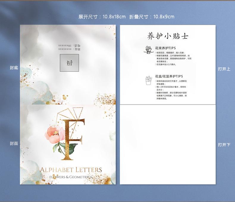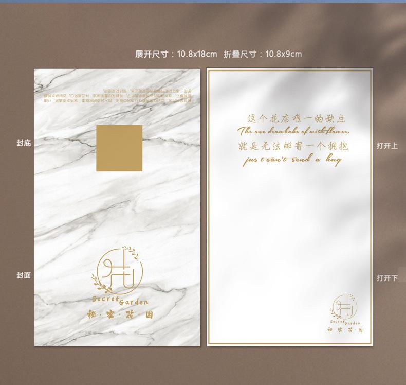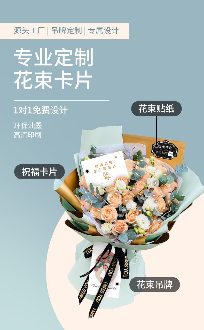 Tarjeta de florería simple día nacional creativo etiqueta para ramo tarjeta de agradecimiento personalizada alta gama dorado tarjeta de mensaje de cumpleaños